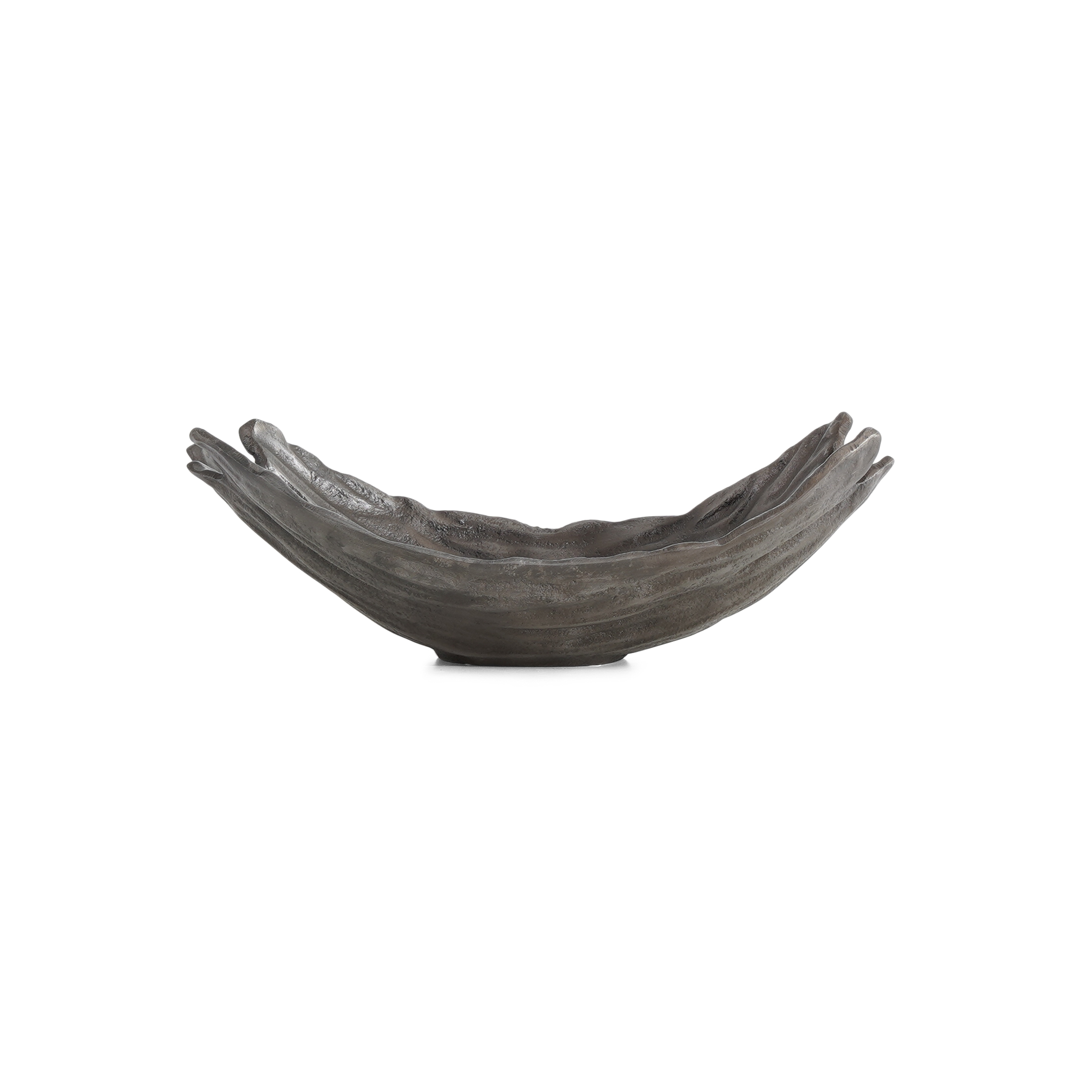 Curved embossed shape plate in dark silver finish