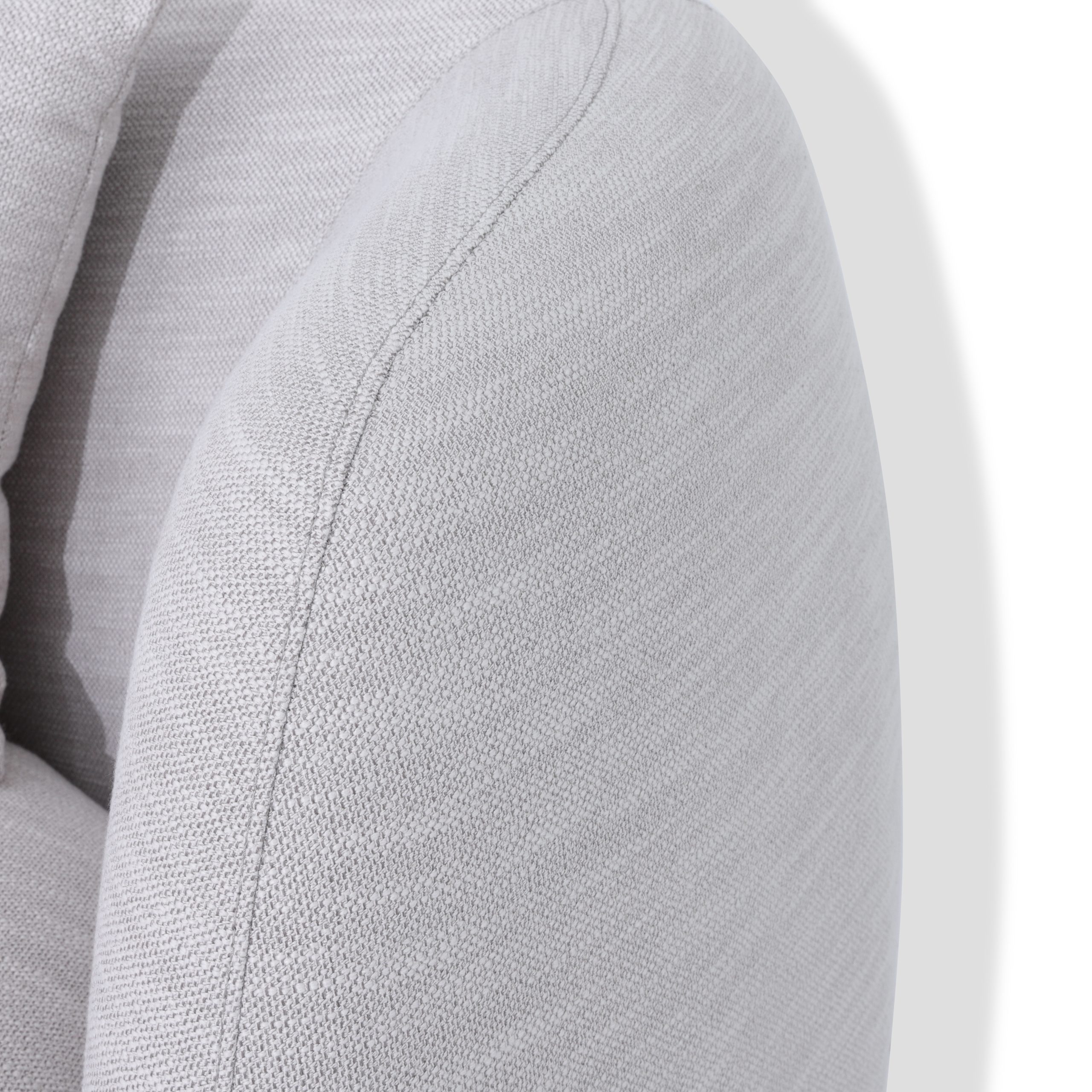 هذه القطعة، المُغطاة بكتان رمادي فاتح وقاعدة مُنجّدة بالكامل، تُجسّد أناقةً رقيقةً وتصميمًا متماسكًا. ناعمة، هادئة، وأنيقة بكل بساطة.