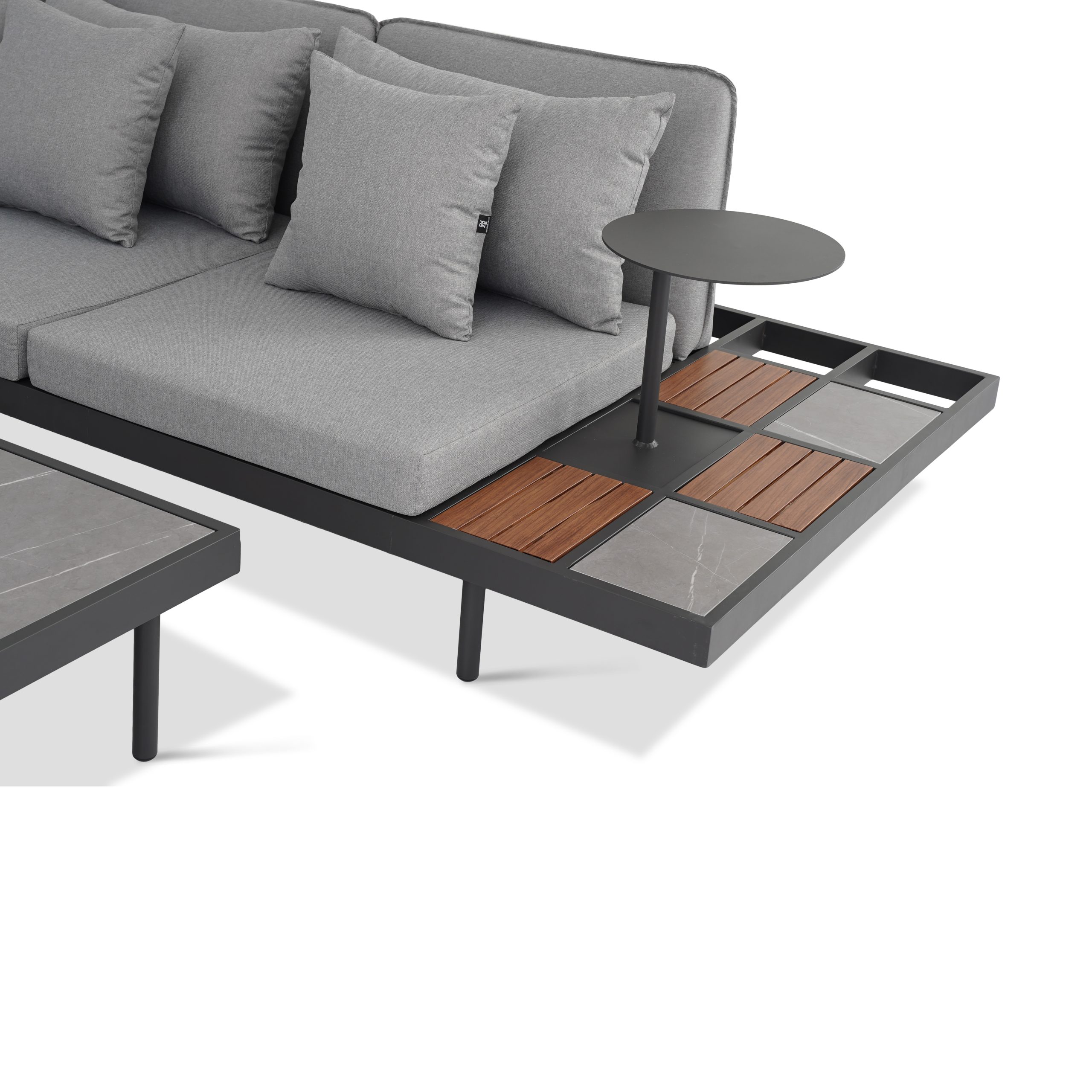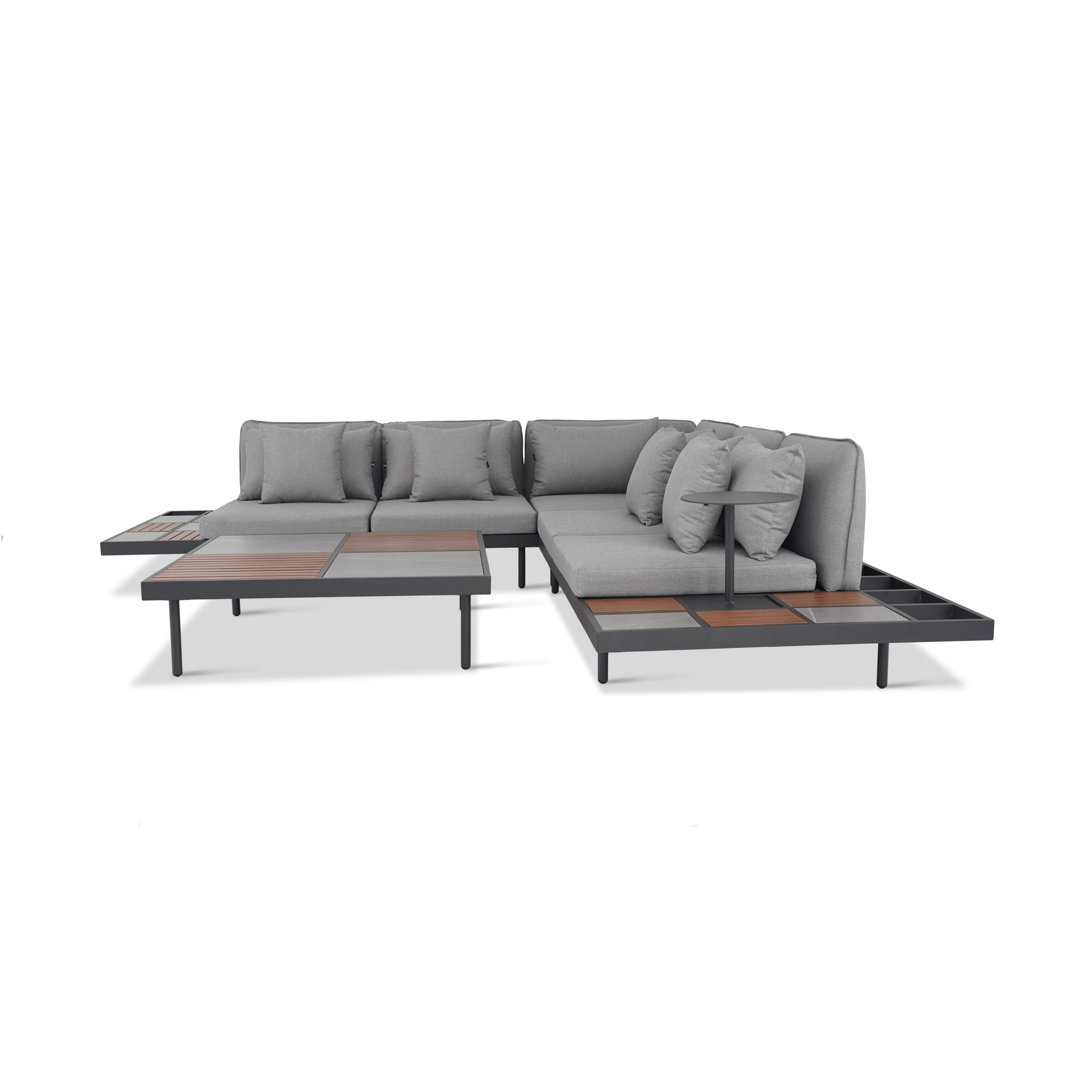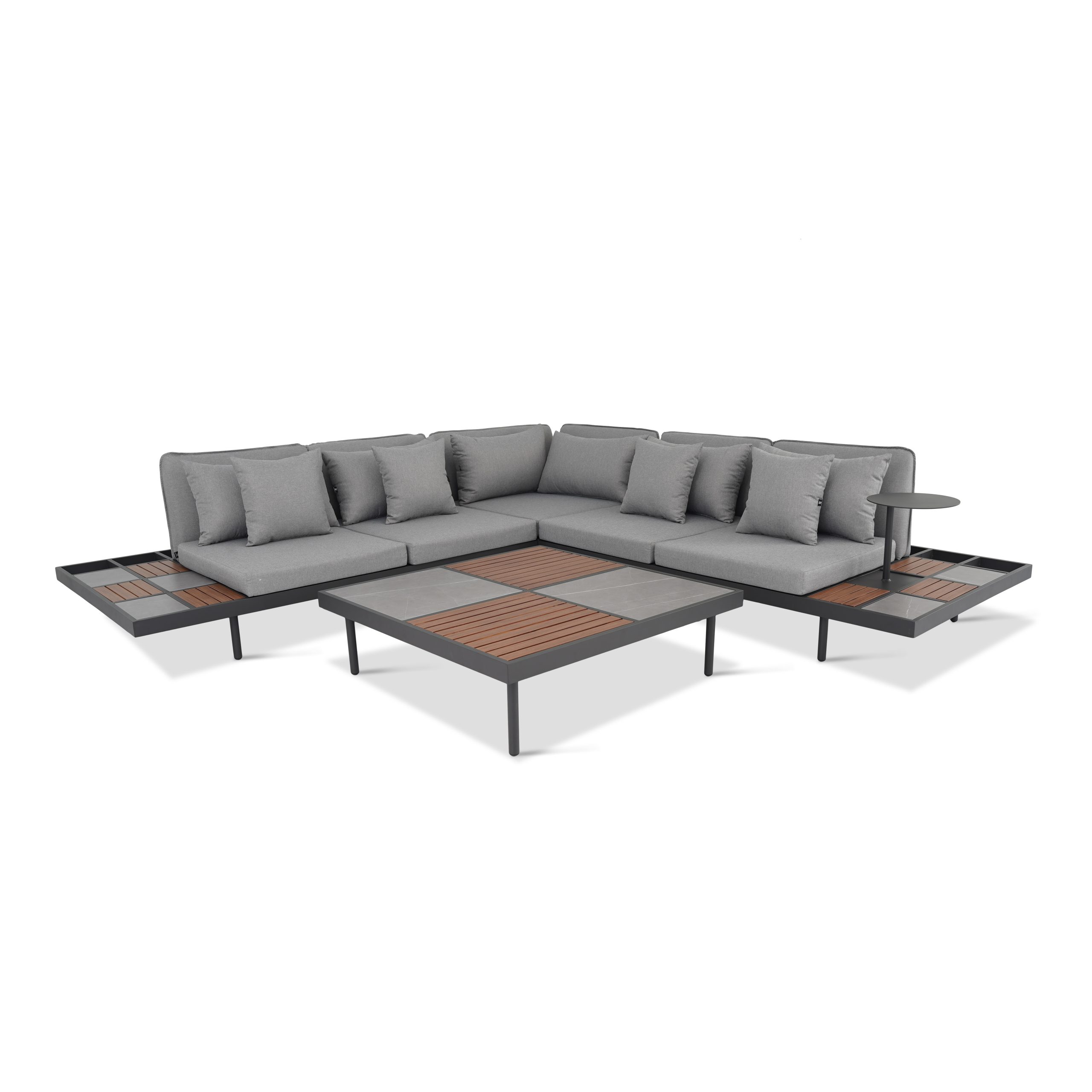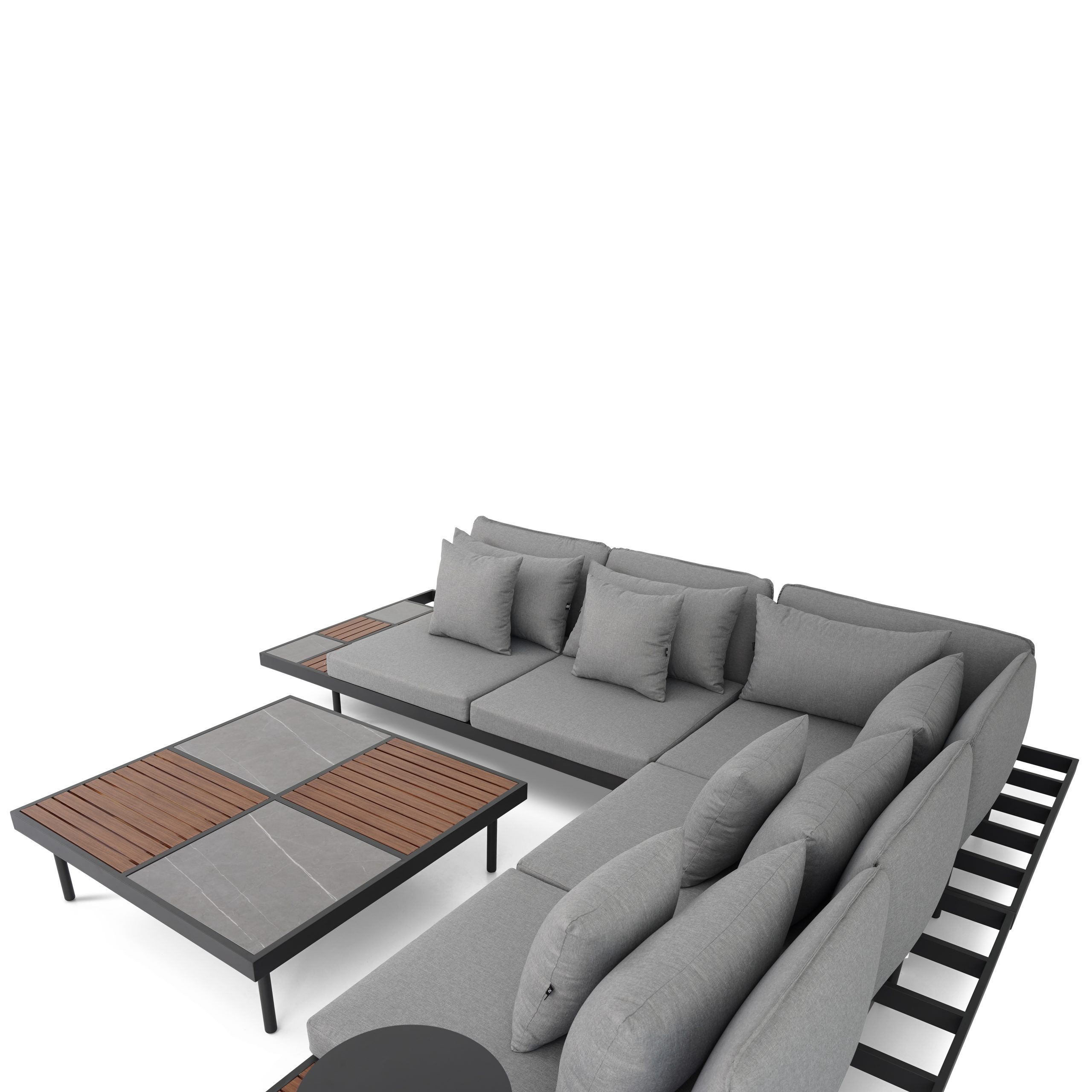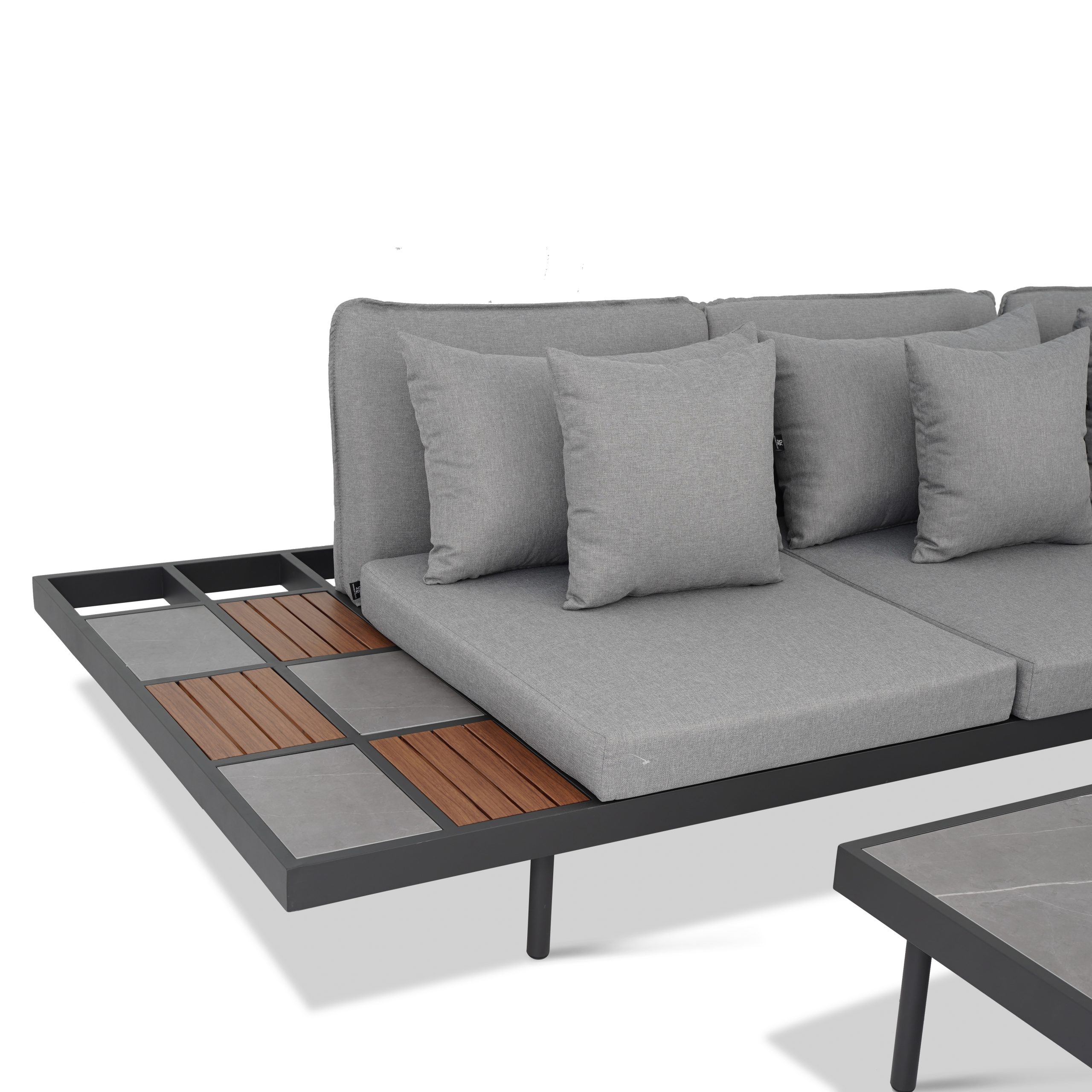 نوع الخامة: قماش مقاوم للماء / حجر مُلبَّد / ألياف خشبية من الألومنيوم لون القماش: رمادي/أسود طريقة العناية بالقماش: يُمسح بماء نظيف نوع القاعدة: إطار من الألومنيوم مطلي بمسحوق خارجي لون القاعدة: أسود