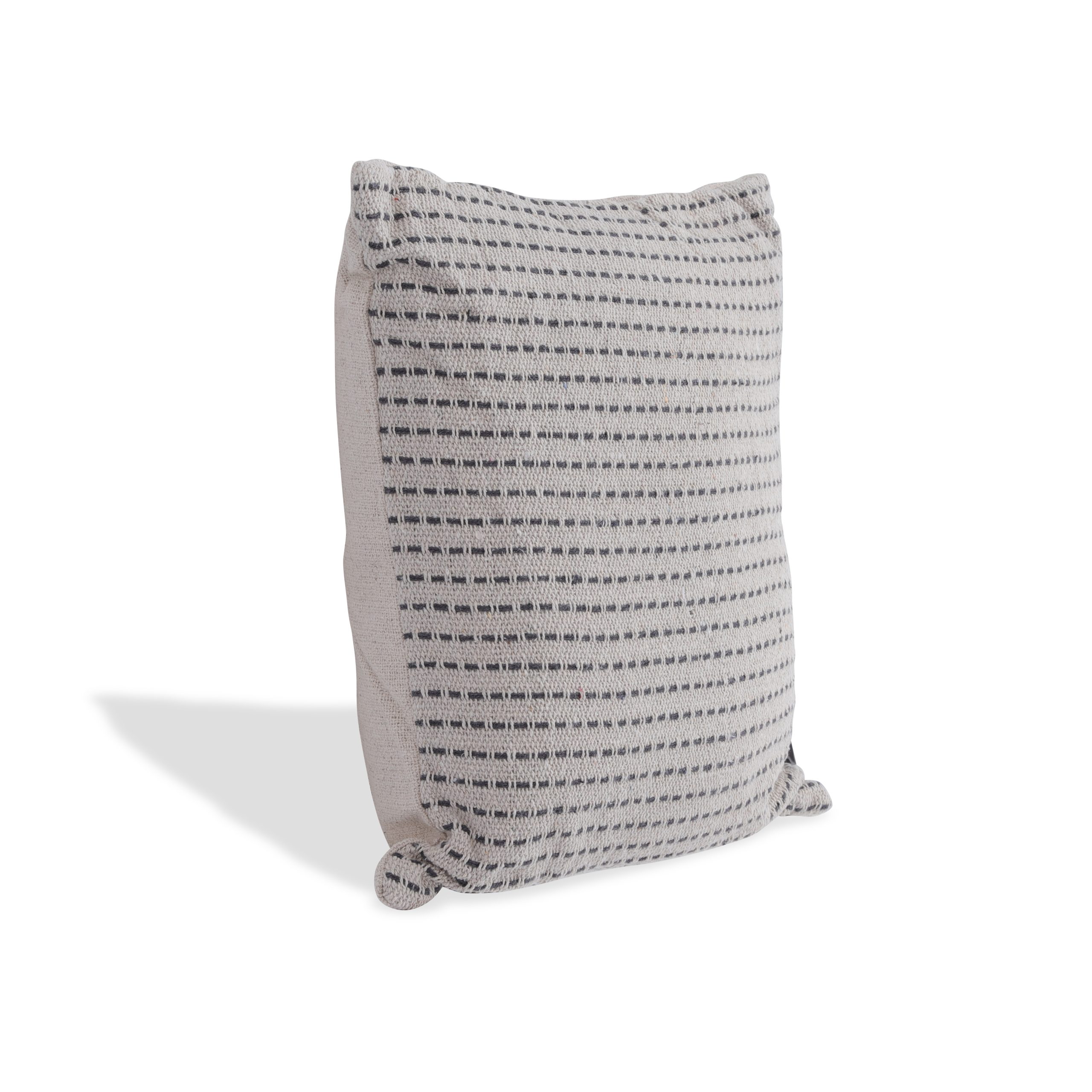 وسادة بيضاء مع خطوط منسوجة سوداء
