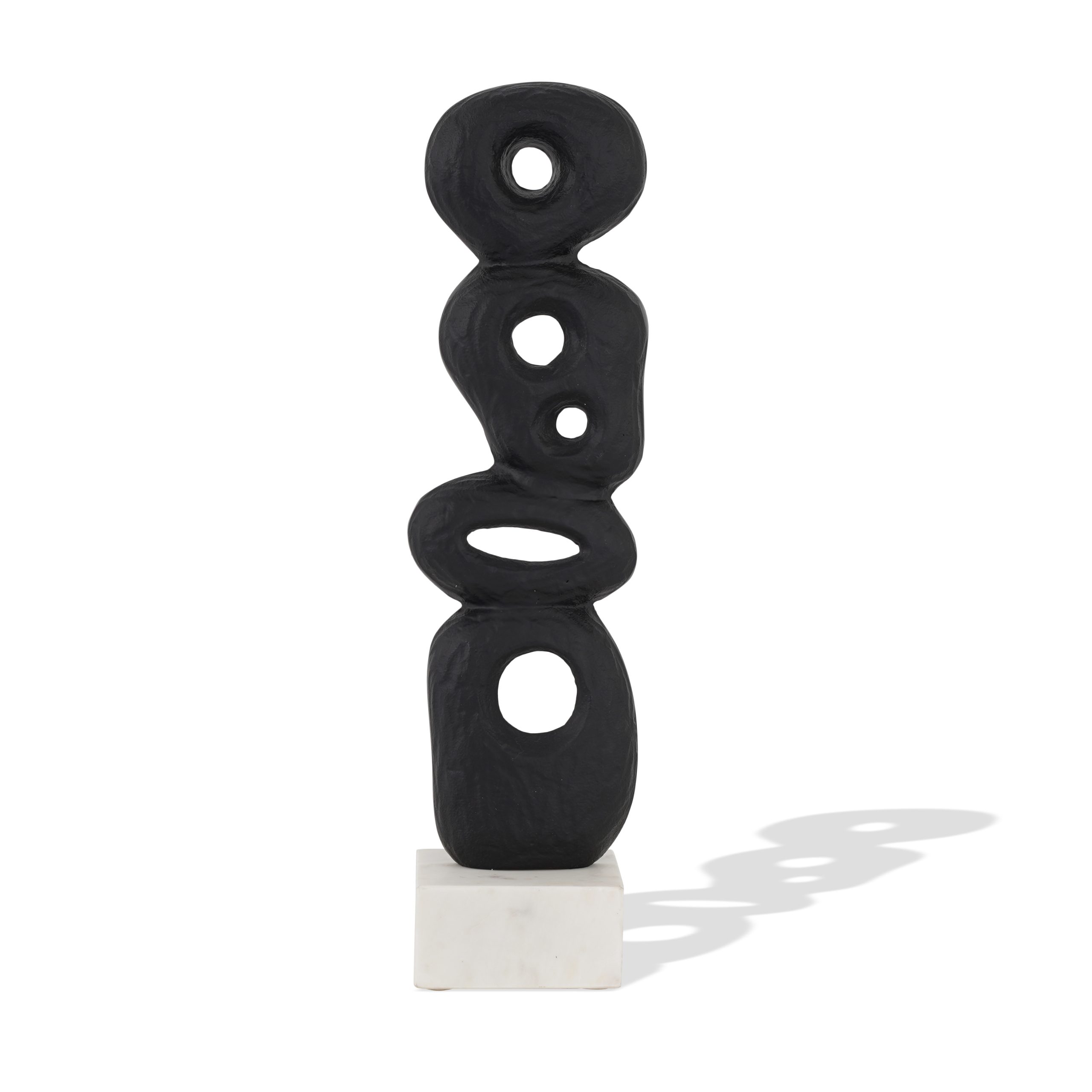 تمثال معدني مطلي بمسحوق أسود على قاعدة من الرخام الأبيض