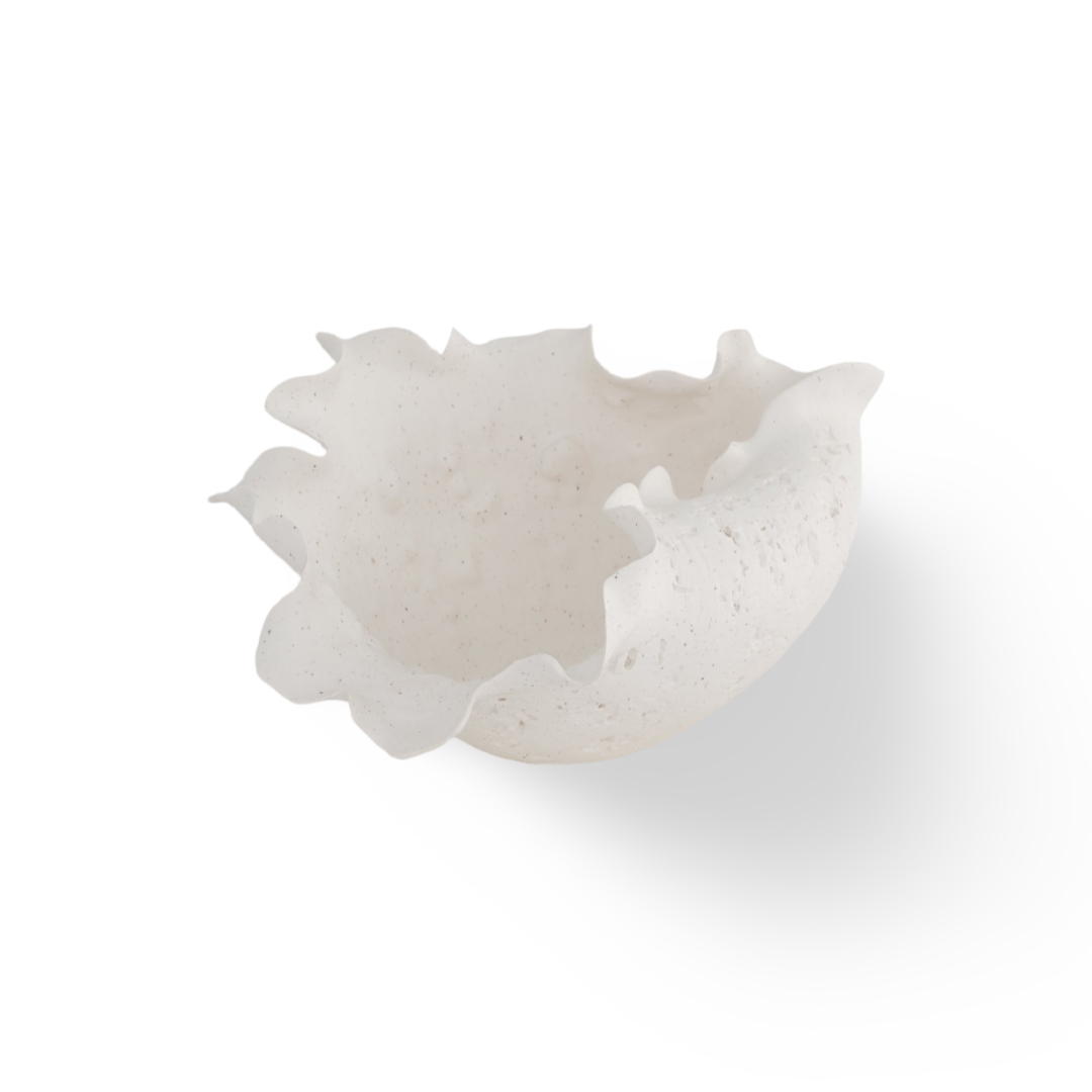 الشكل السائل يلتقي بالسيراميك الأبيض النقي في قطعة مركزية أنيقة من الأناقة الطبيعية.