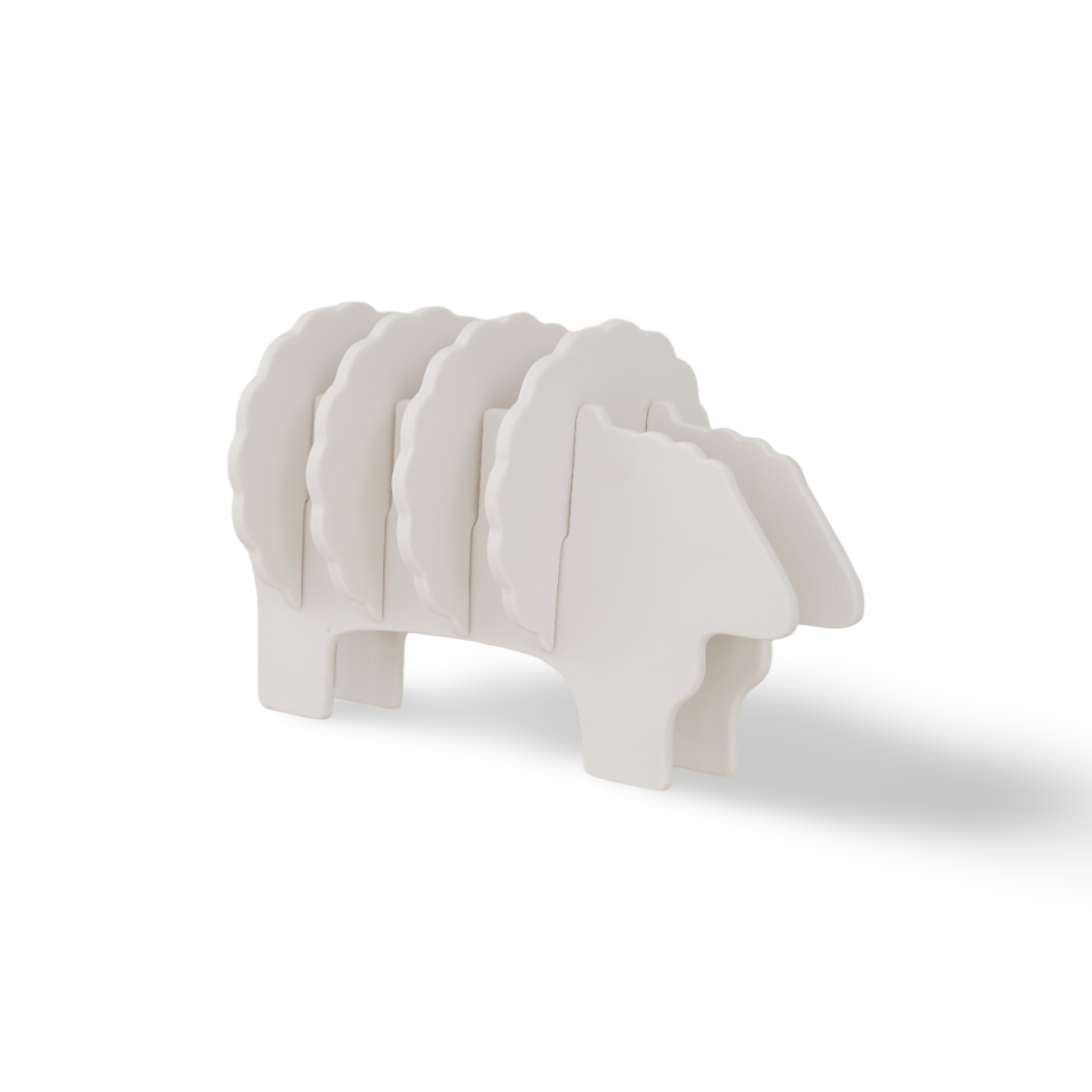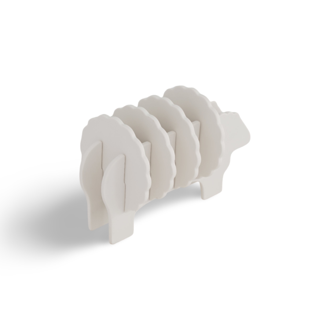 طقم قواعد أكواب من السيراميك باللون الأبيض