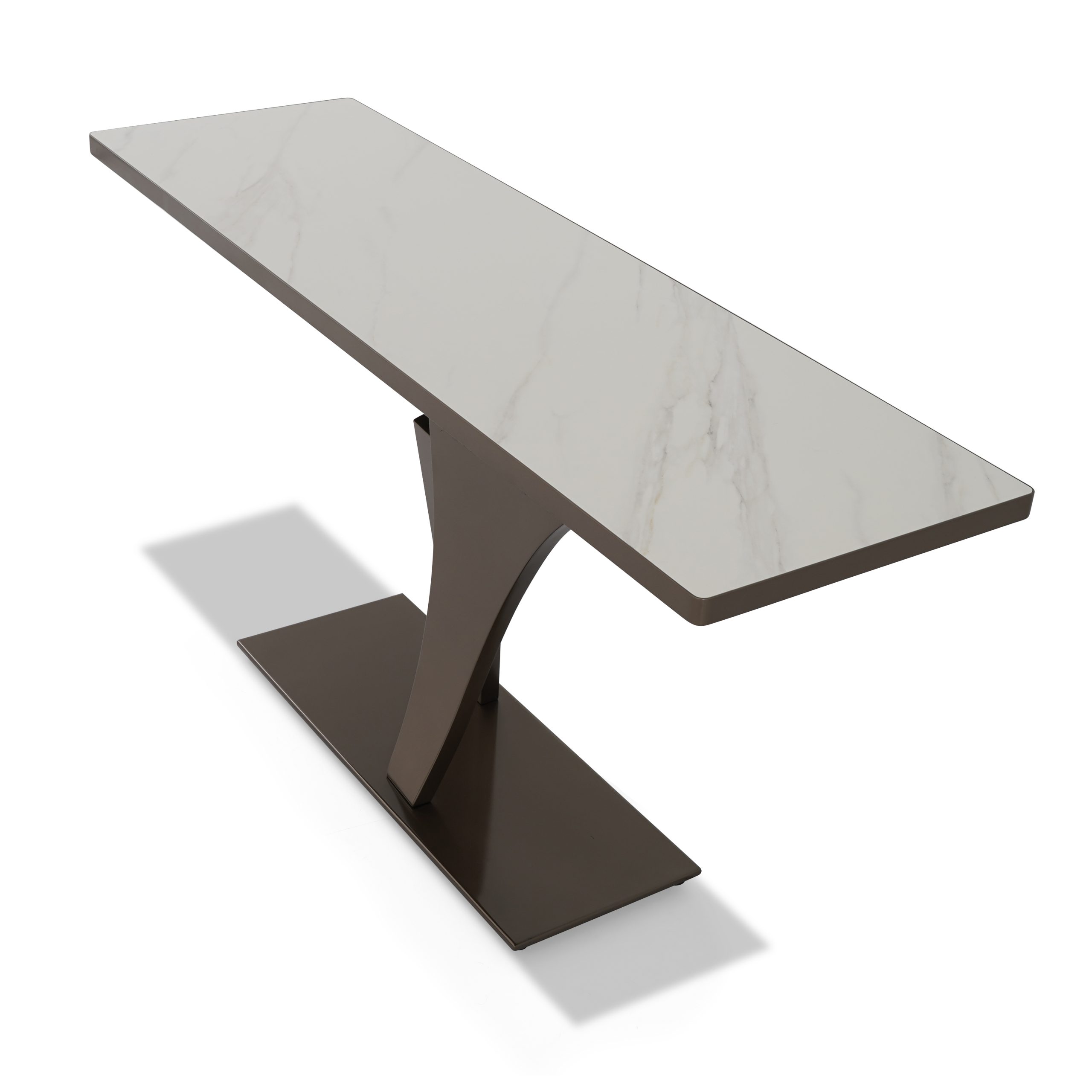 تجمع هذه الطاولة الخزفية بين الأناقة والعملية اليومية. بقاعدة معدنية مطلية باللون الأسود، تُضفي تباينًا مذهلاً يُعزز تصميمها العصري.