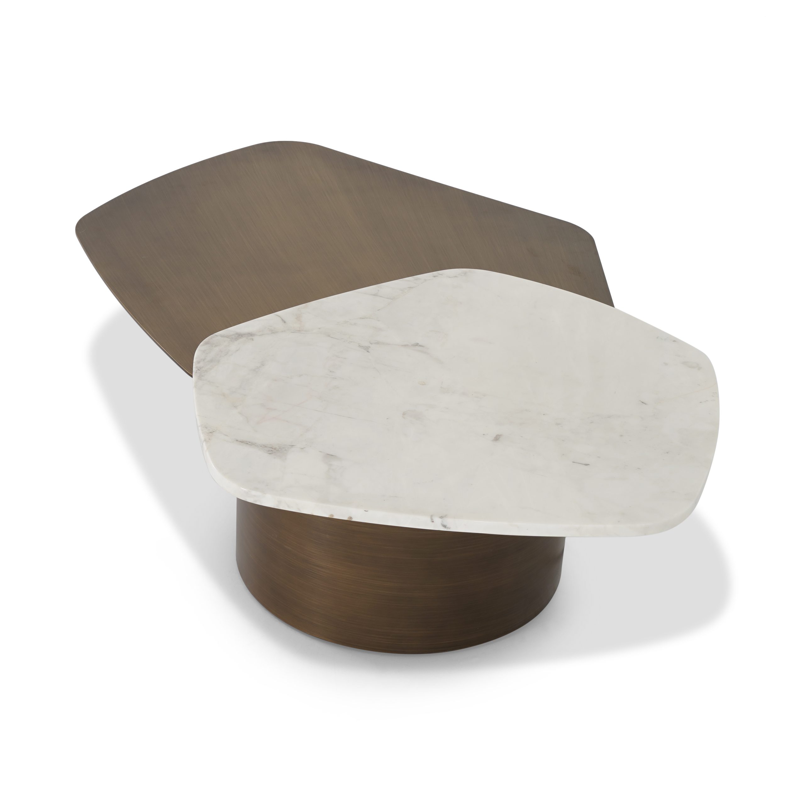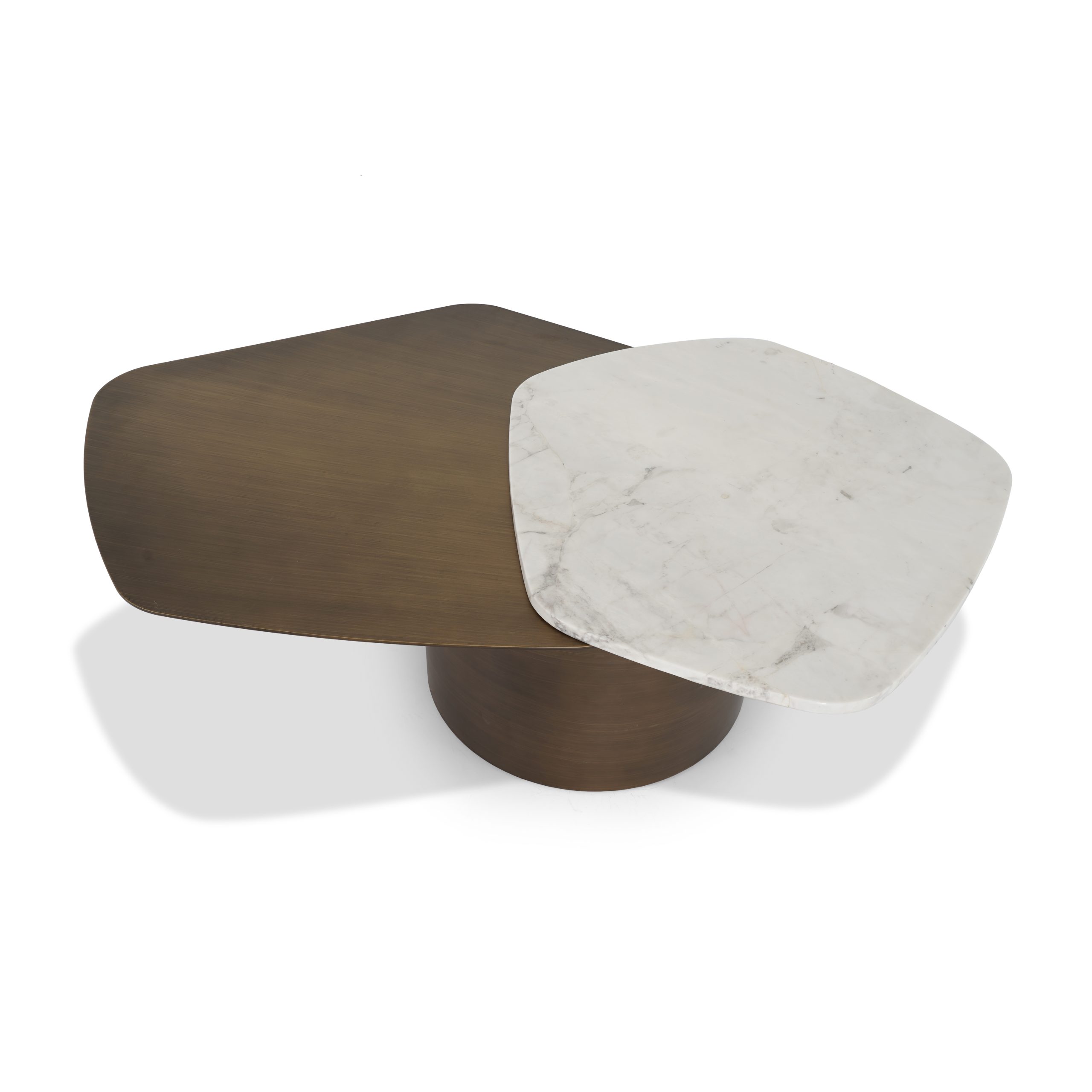 لمسة عصرية. الجزء العلوي من رخام فيكتوريا الأبيض، مع القاعدة النحاسية الأنيقة، يضفي الأناقة والدفء على أي غرفة.