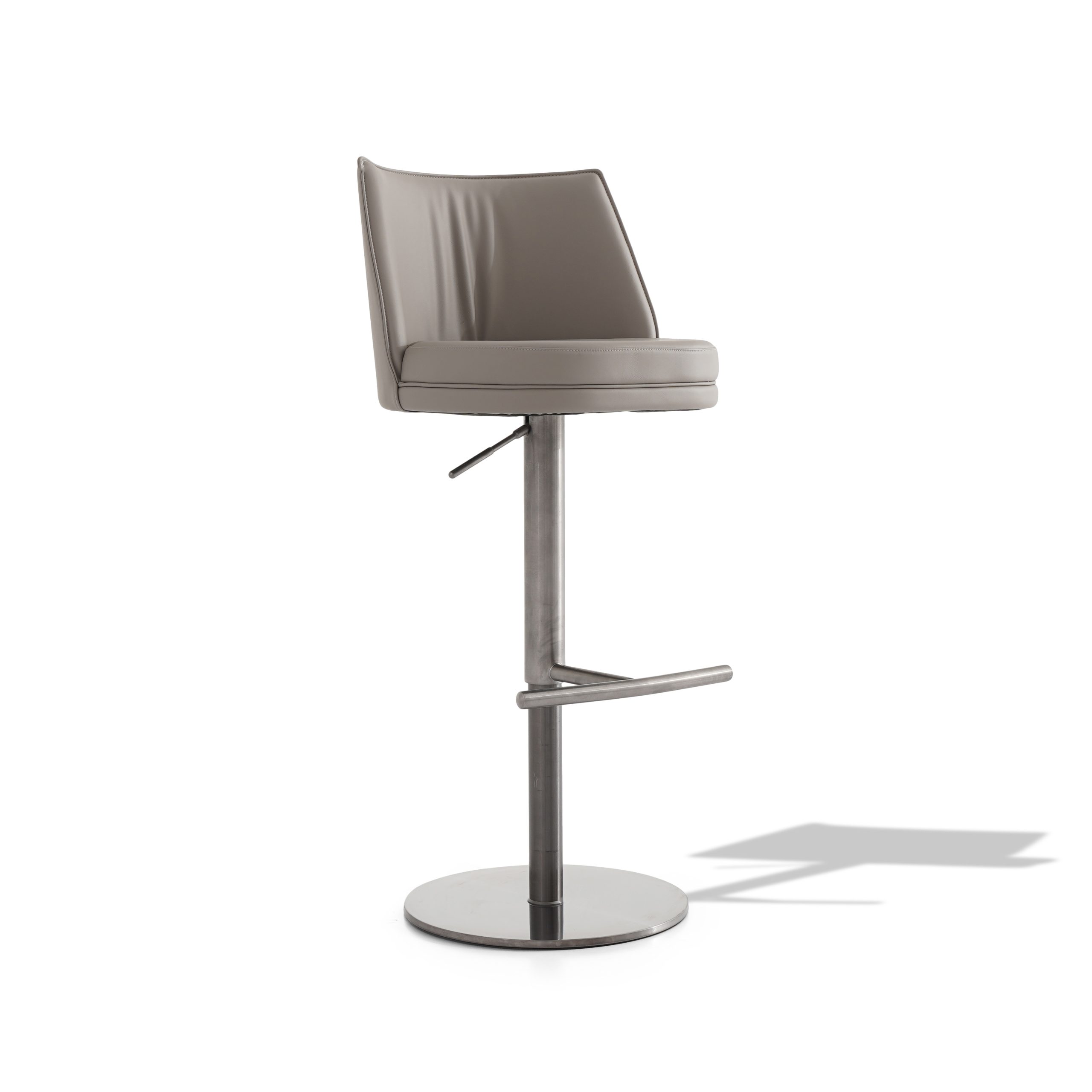 كرسي بار مريح وحديث مع مقعد جلدي مبطن وارتفاع قابل للتعديل.