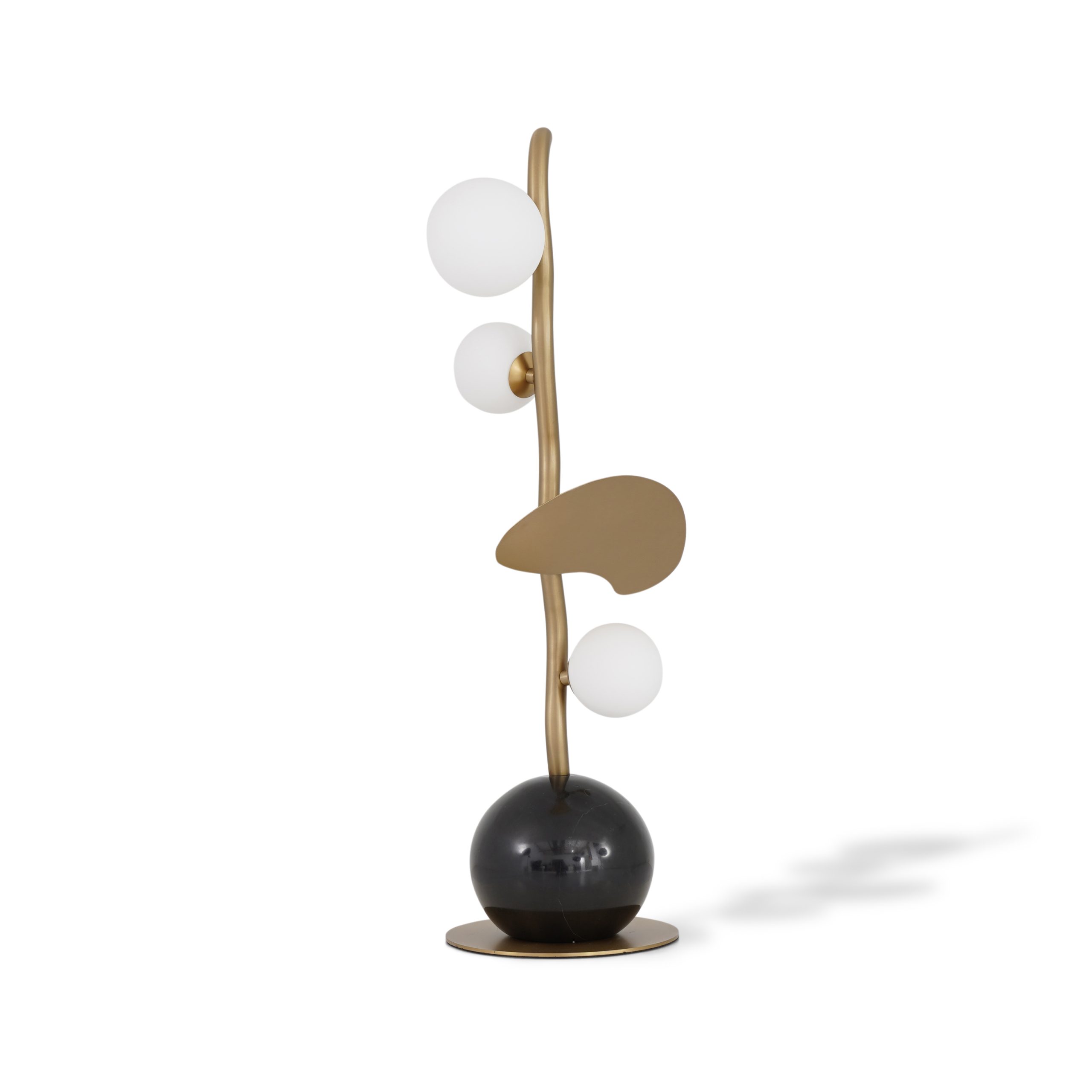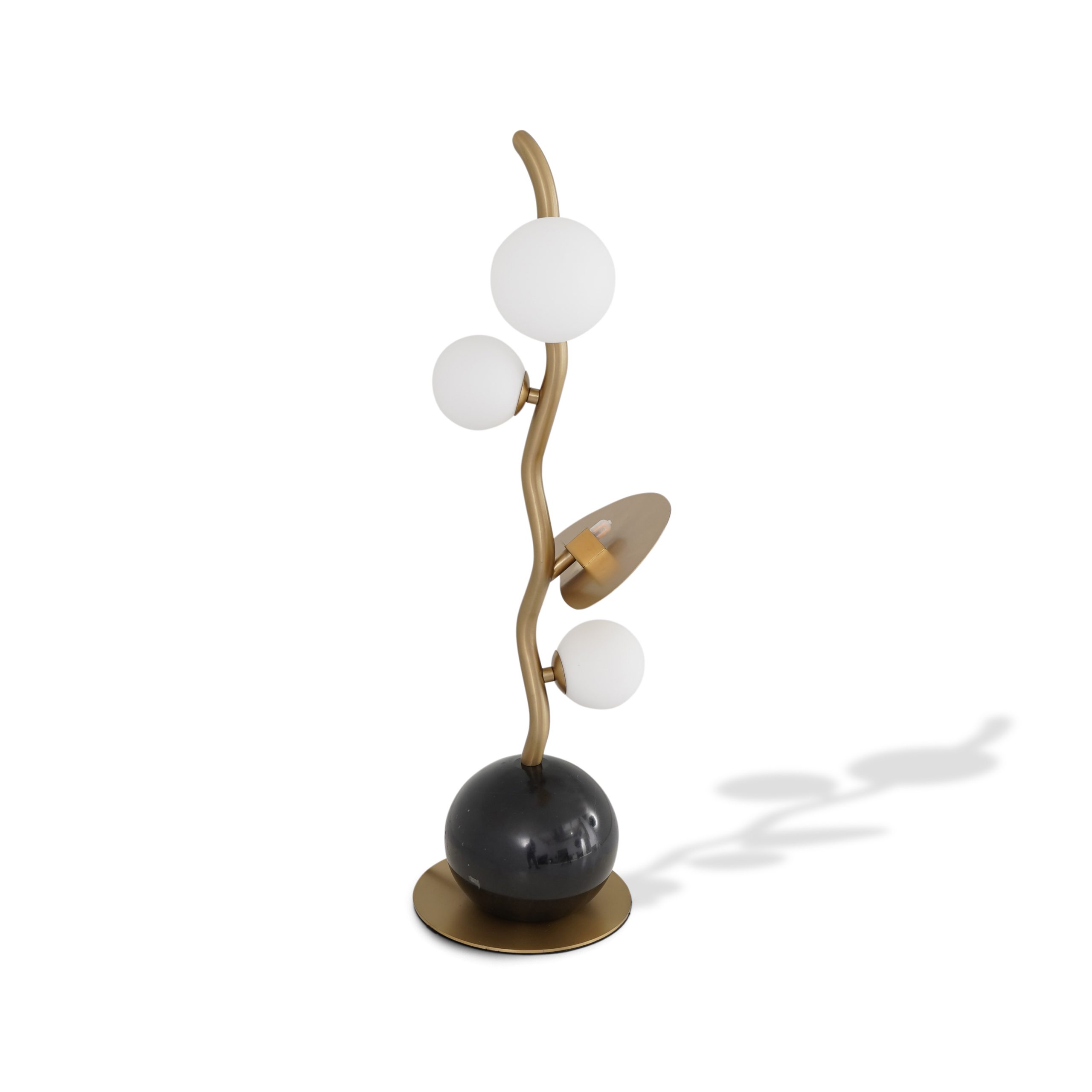 قاعدة معدنية ذهبية مصقولة ورخام أسود مع غطاء كرة زجاجية