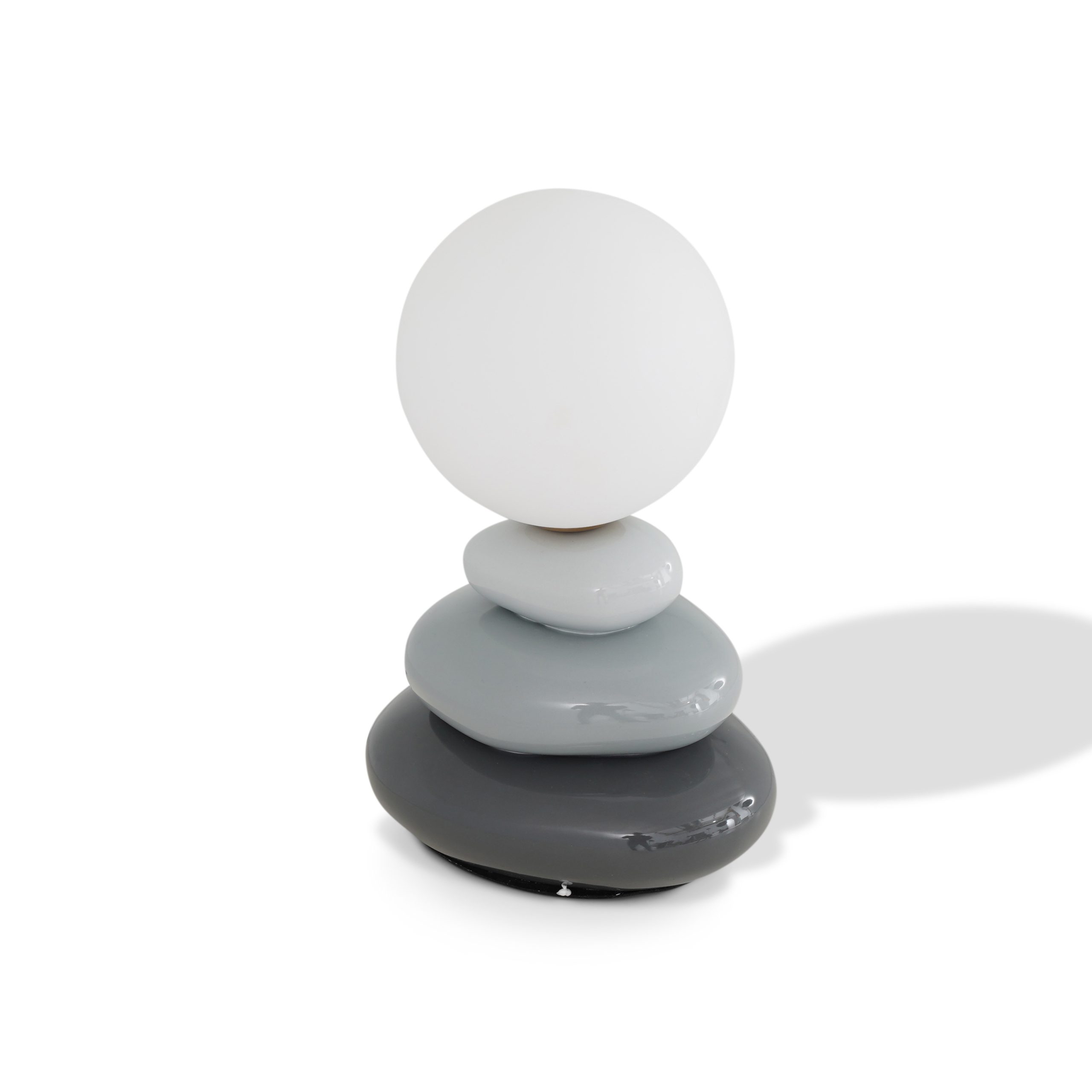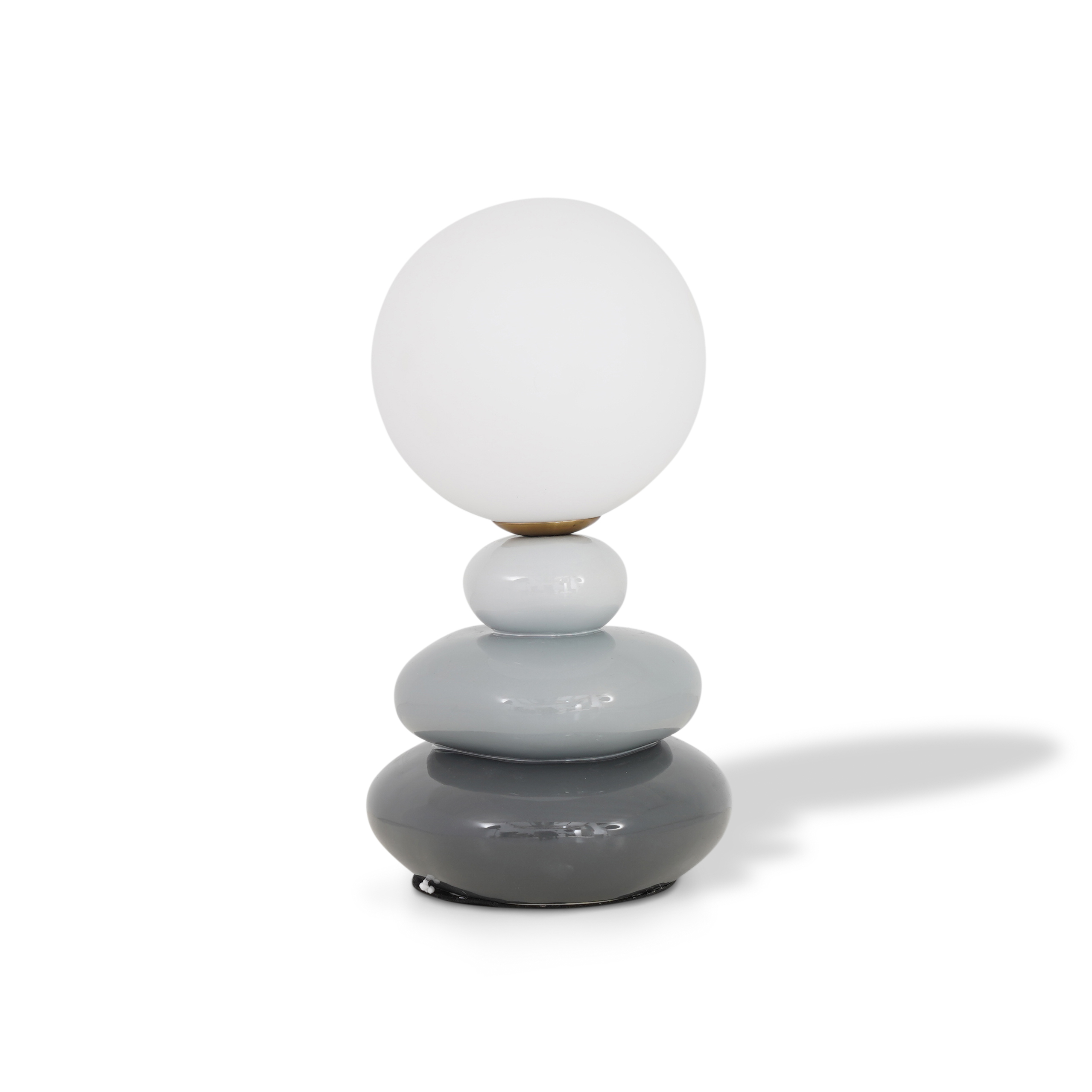 قاعدة رمادية على شكل حصى زجاجية مع غطاء كرة زجاجية