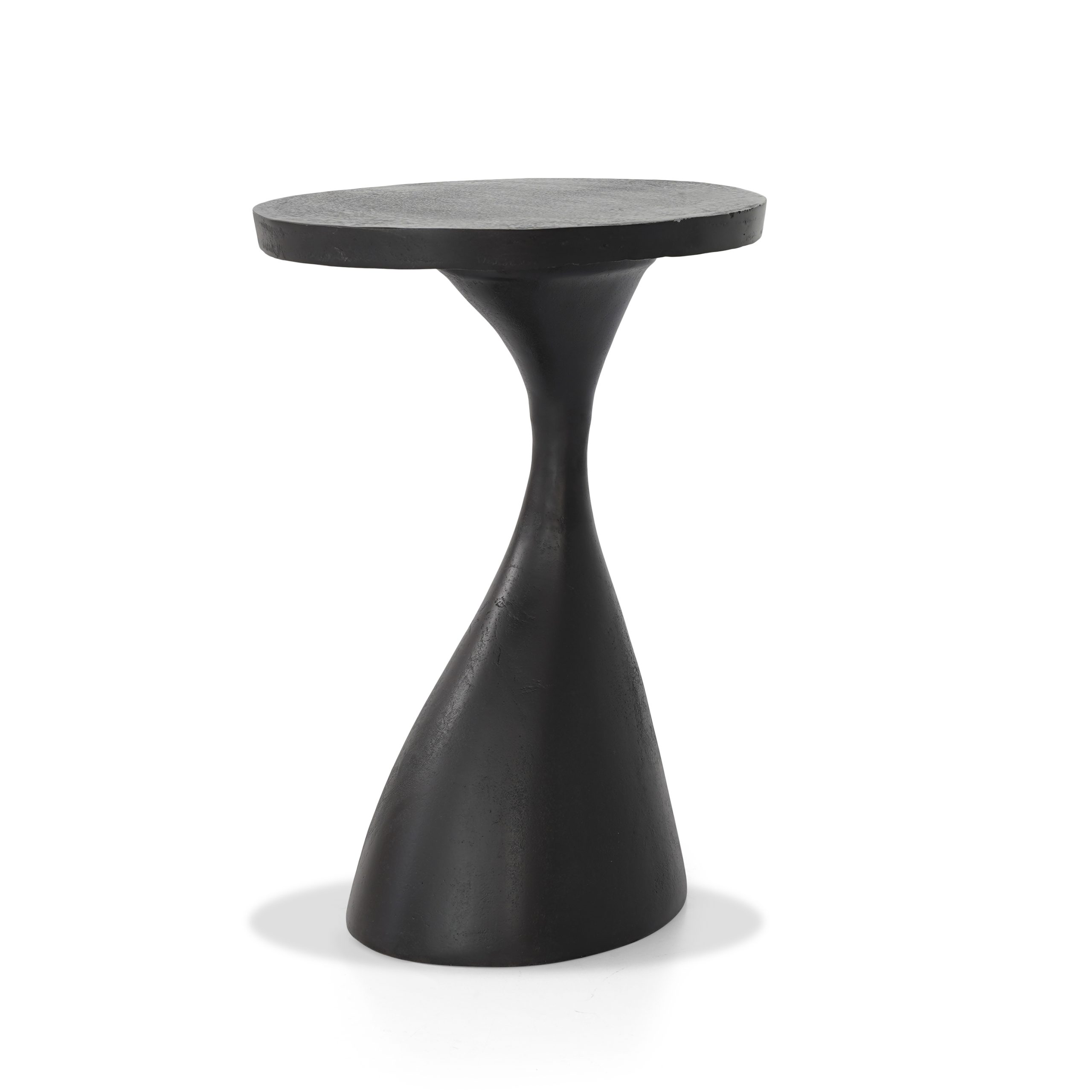 A sleek burnished black metal piece that brings modern sophistication and lasting strength to any space.