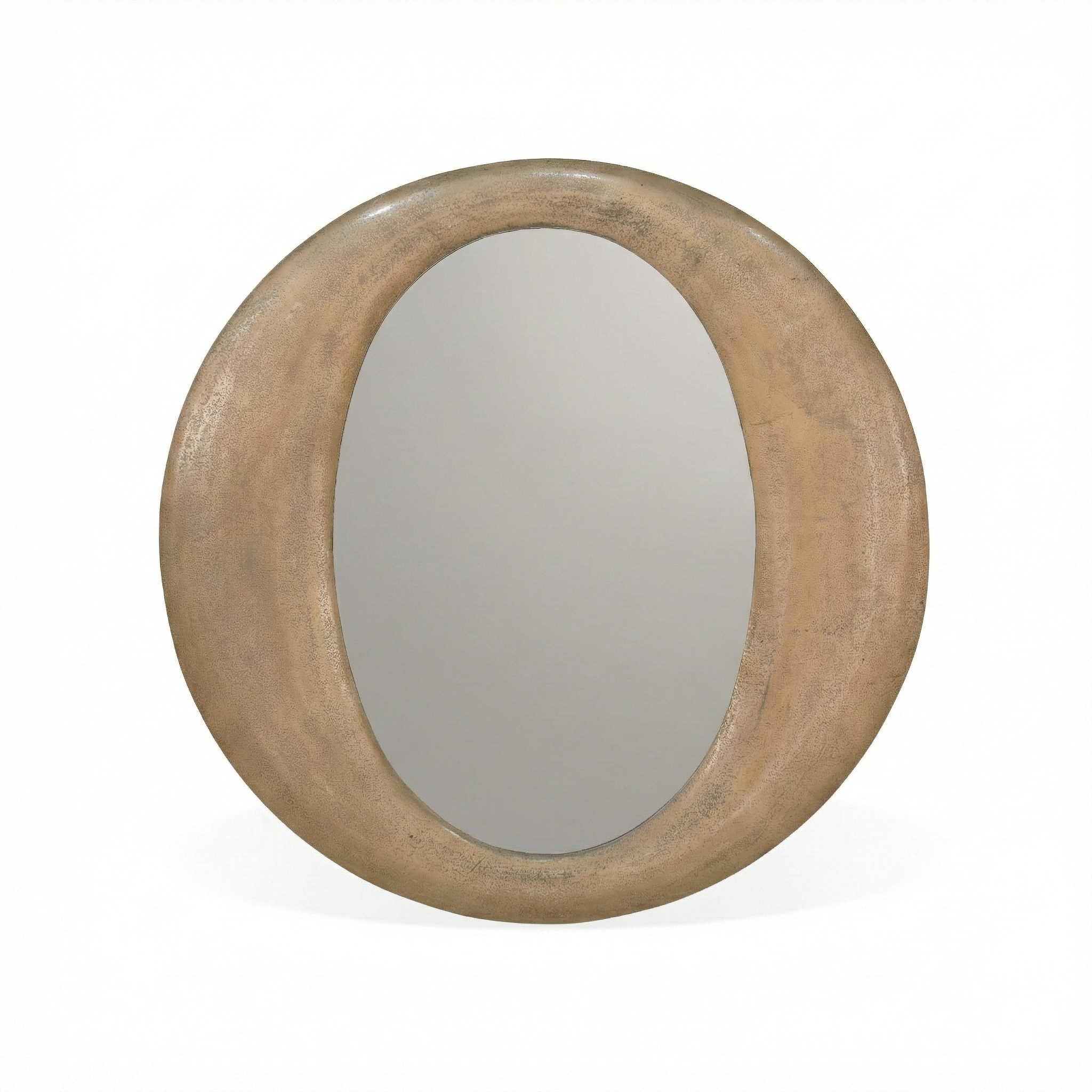 An antique-inspired sculptural mirror with an organic silhouette and timeless, refined presence.