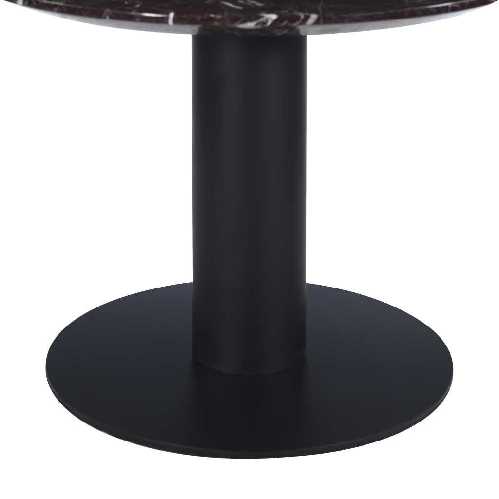 Coffee table in rosso levanto marble top & black powder coated metal base. To be wiped with clean water. Heat resistant ≤100℃