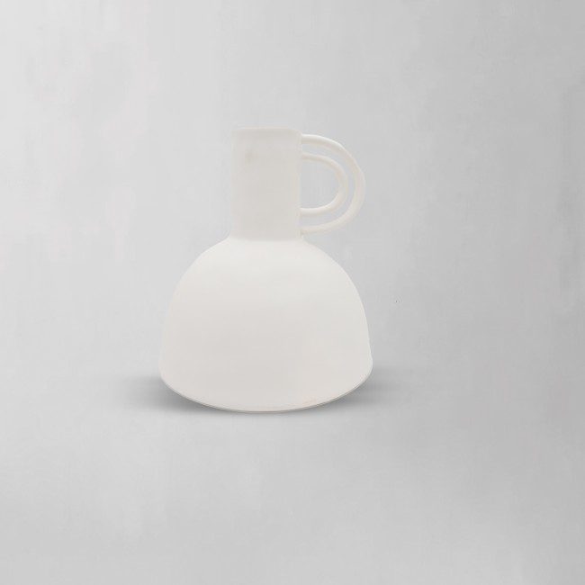 ceramic vase with a matt white finish, featuring a dome-shaped body and a double-loop handle that adds a sculptural, minimalist touch