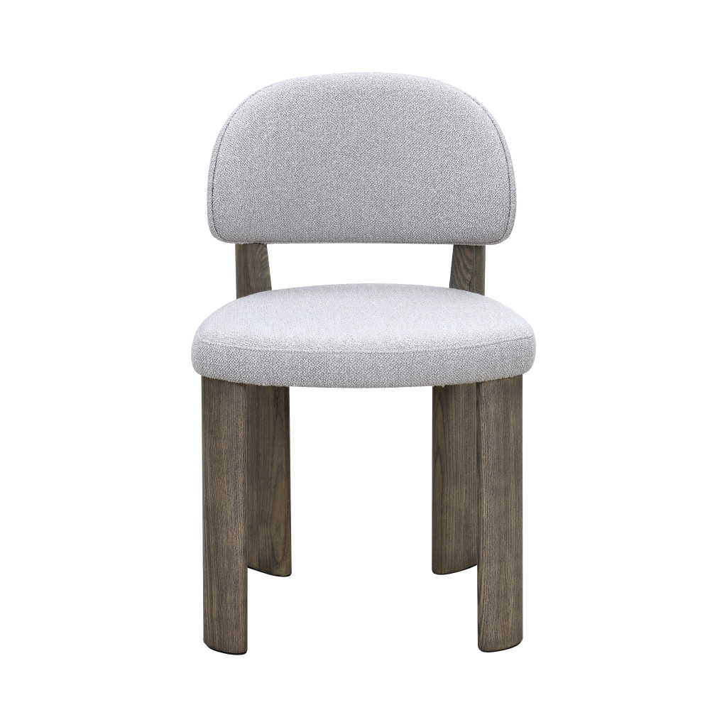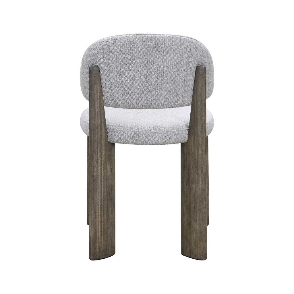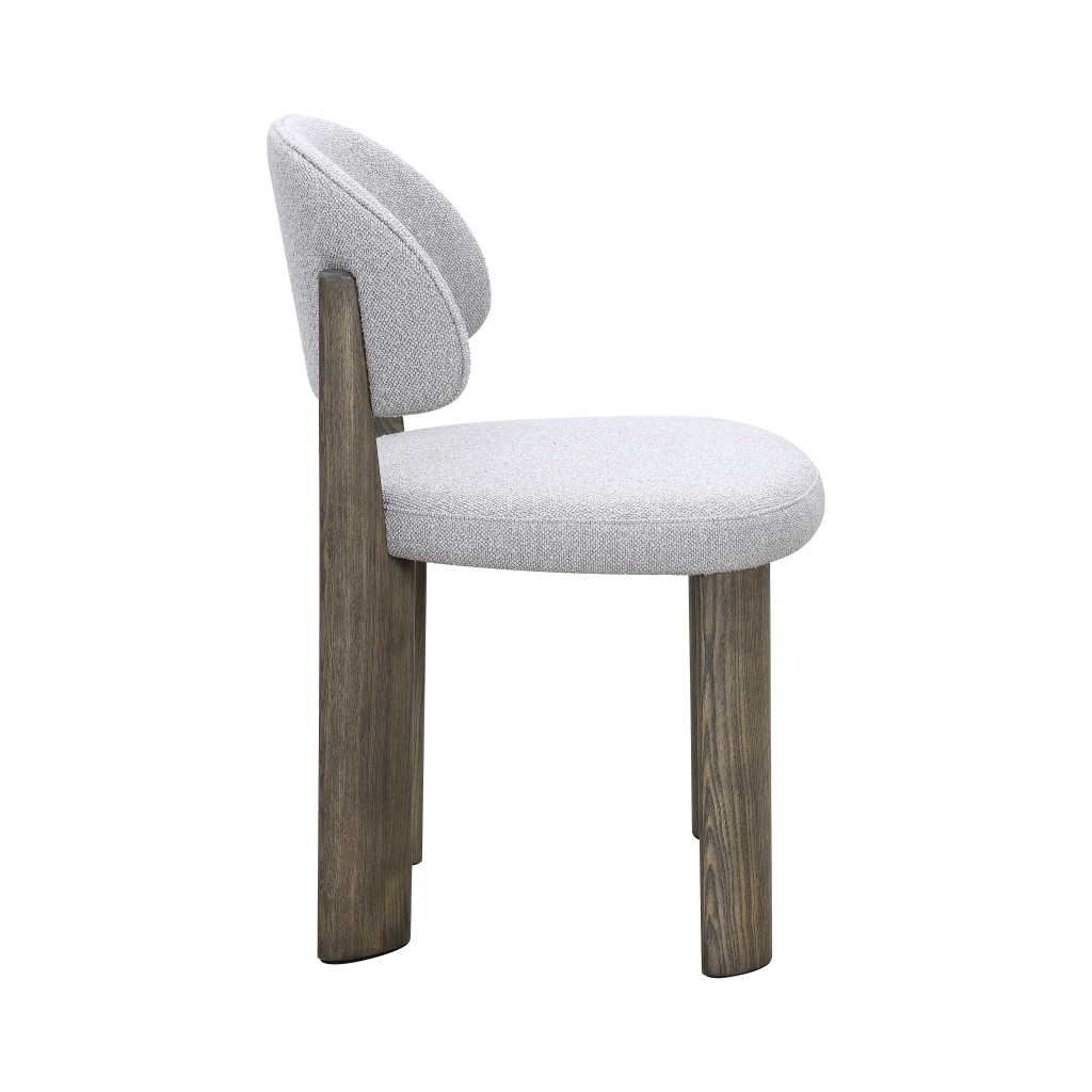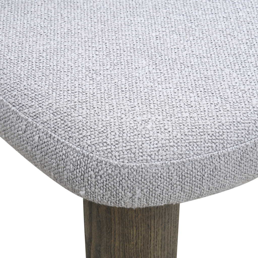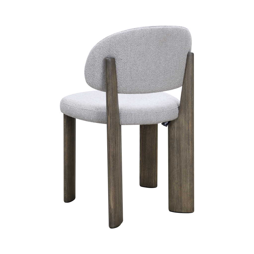 Dining chair in french oiled finish wood and a light grey linen wool effect seat. To be wiped with clean water