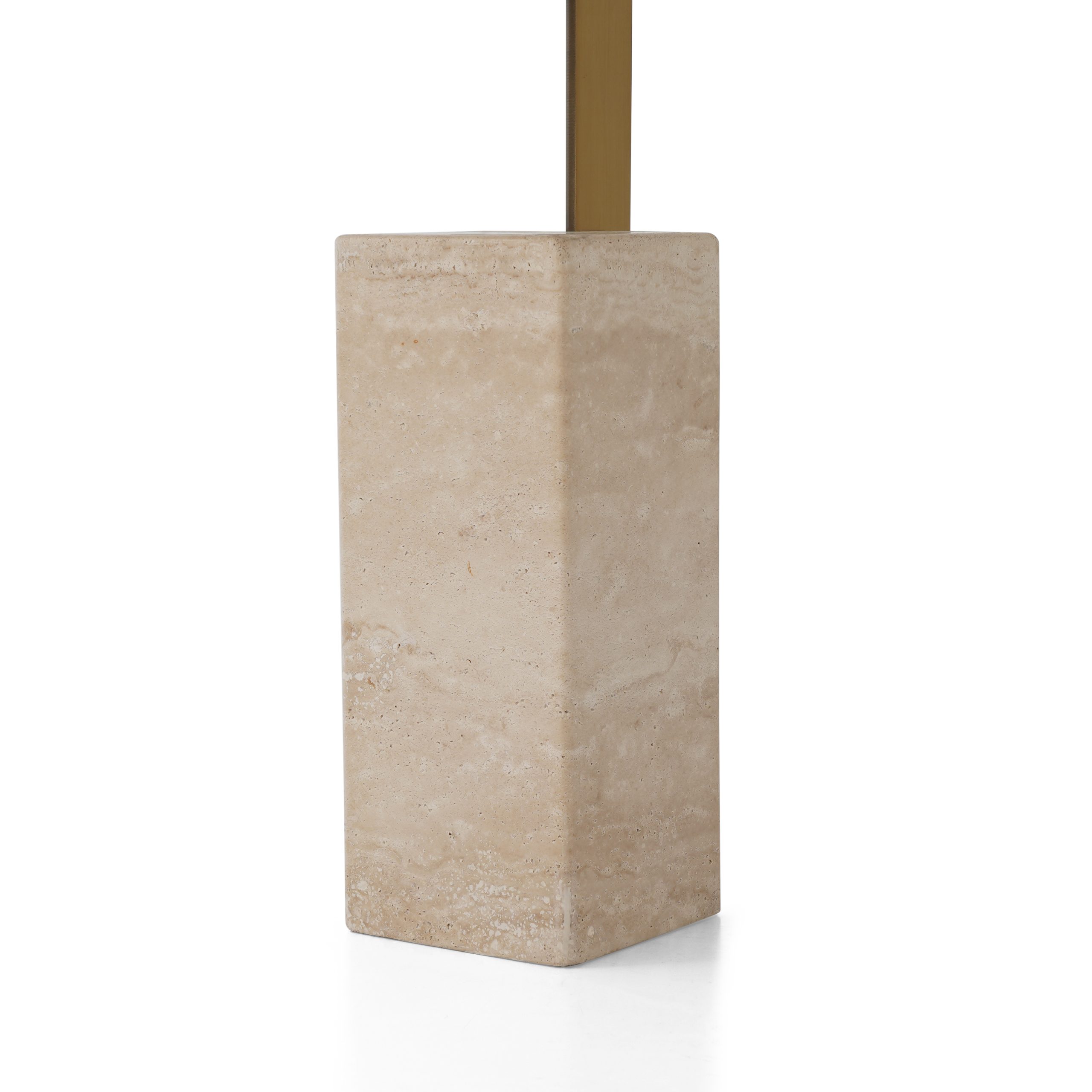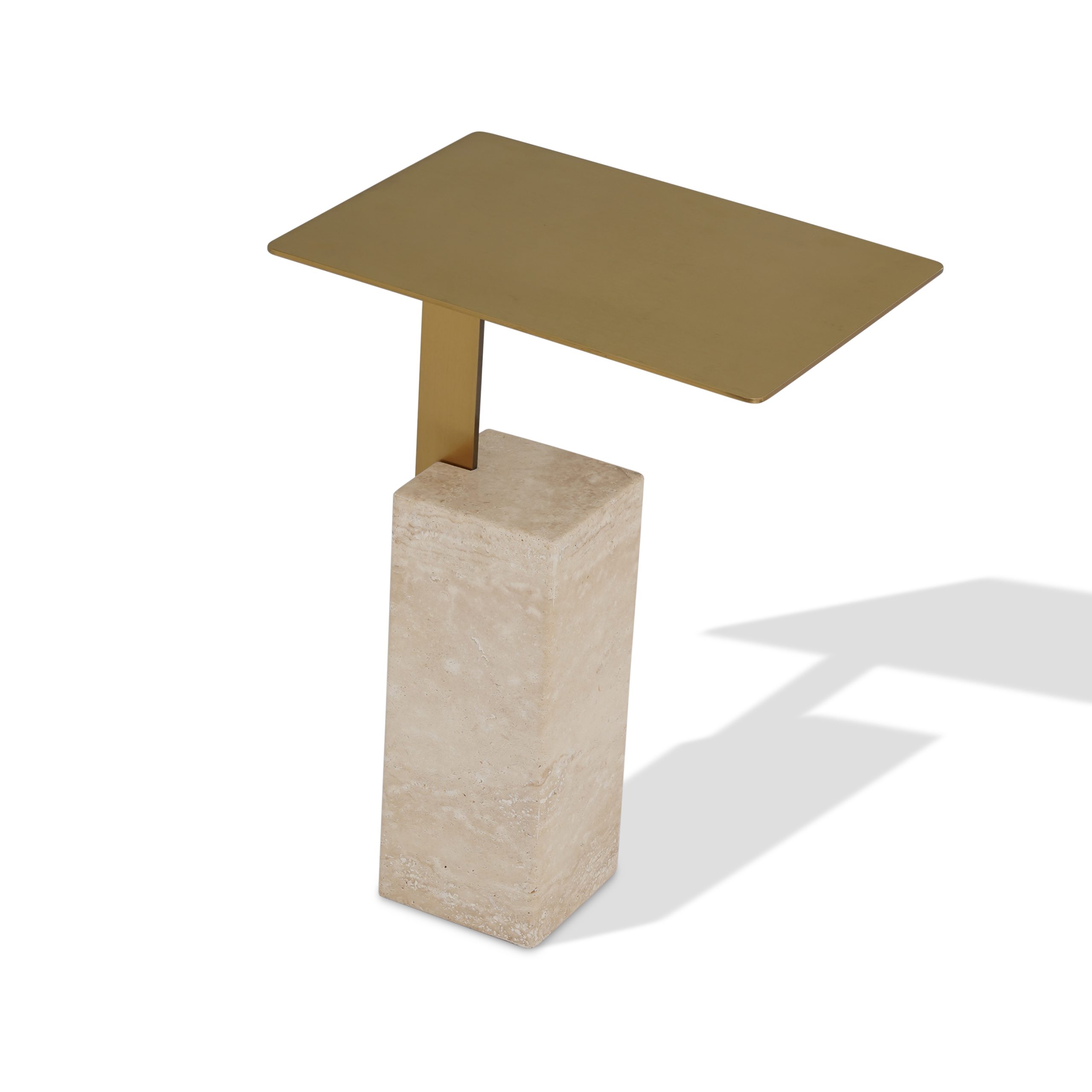Side table in brushed gold metal & beige travertine base. To be wiped with a soft cloth. Heat ressitant capacity ≤550℃