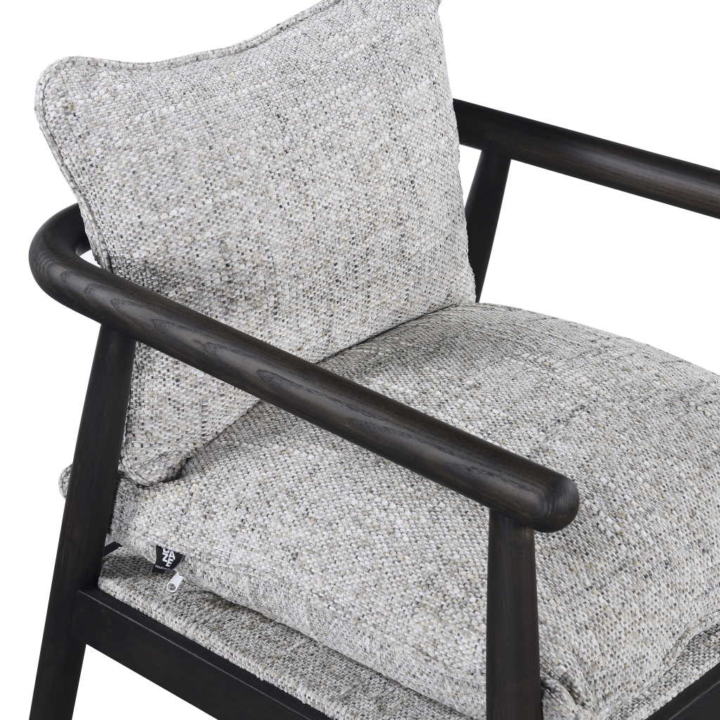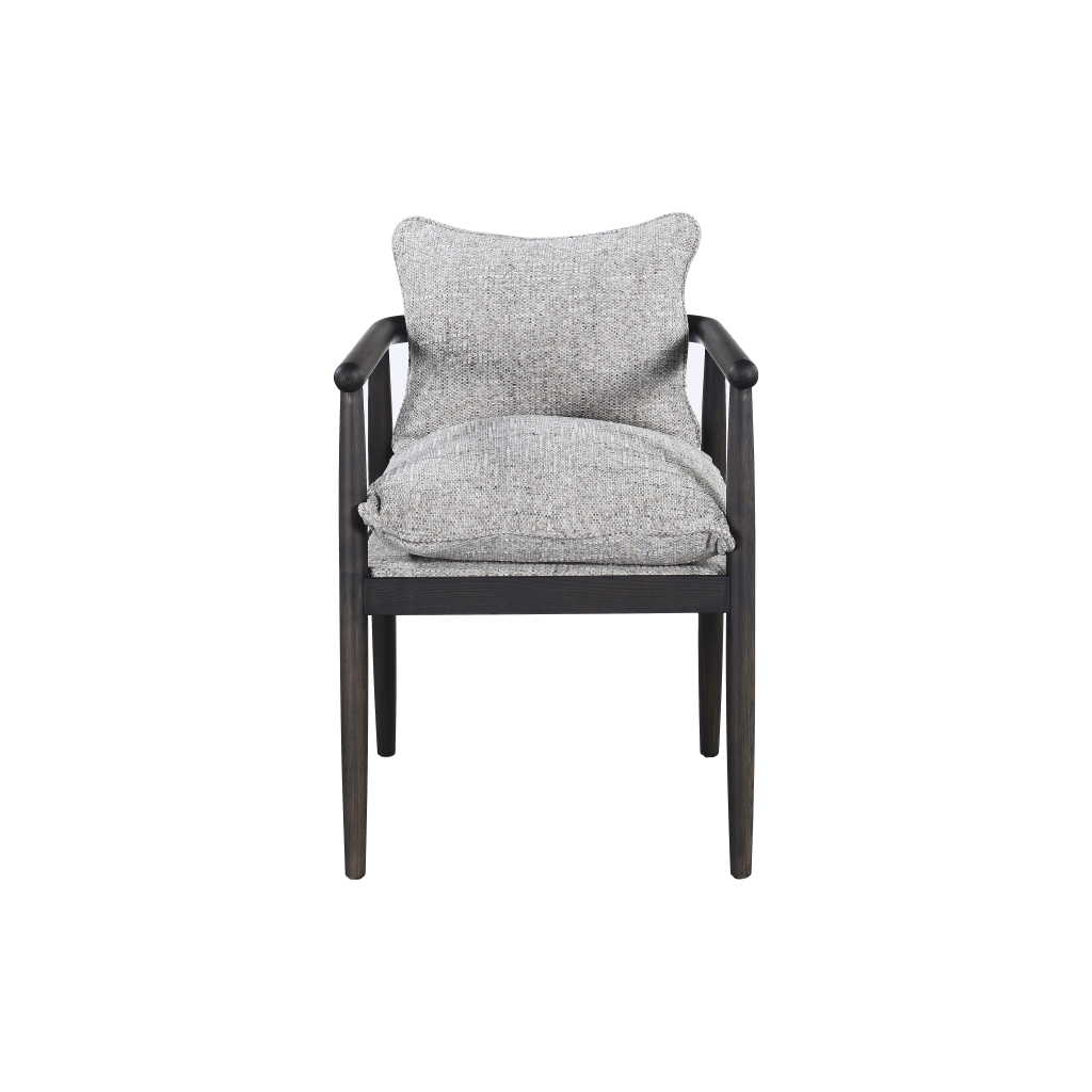 Dining chair in smoked ash wood & a grey linen tweed seat. To be wiped with clean water