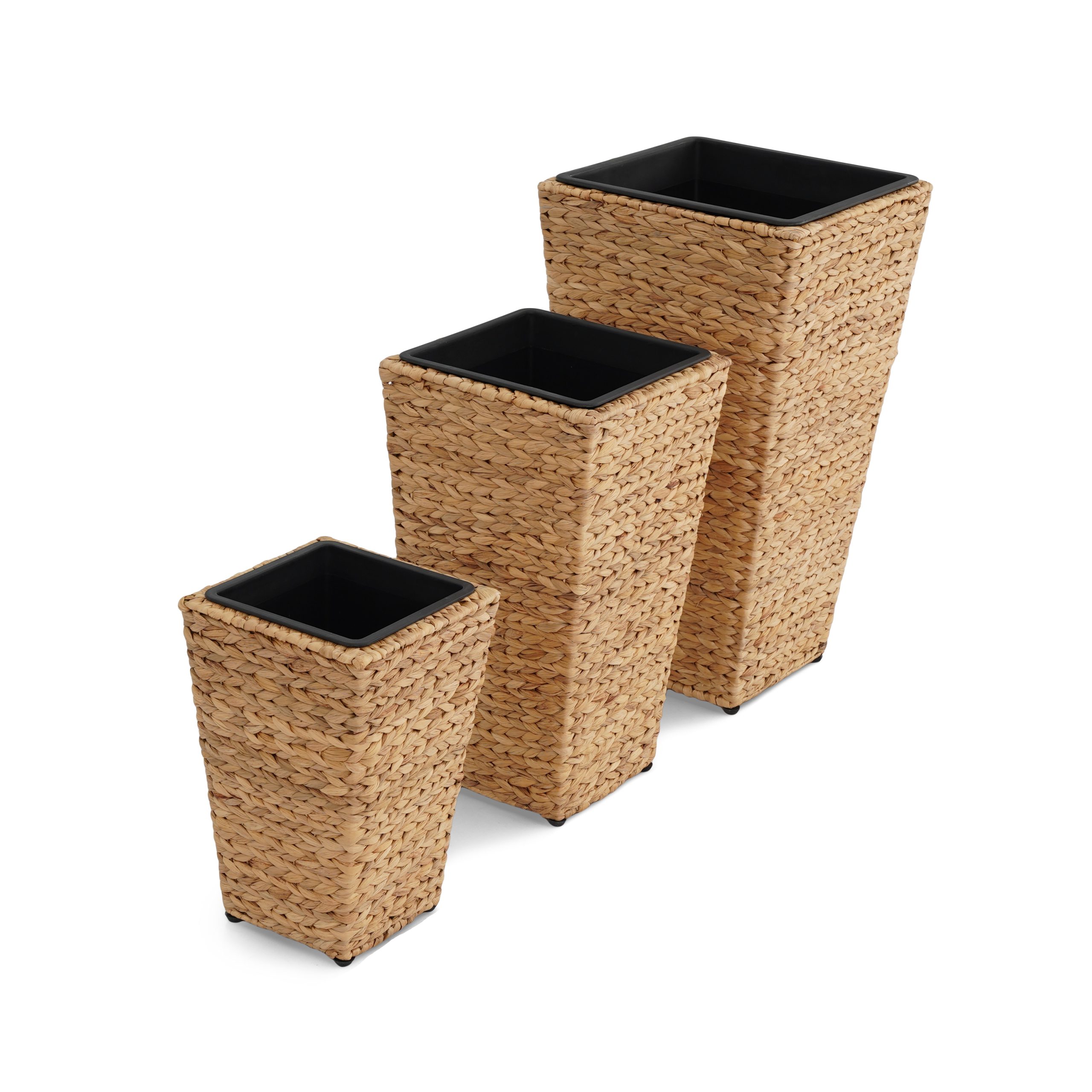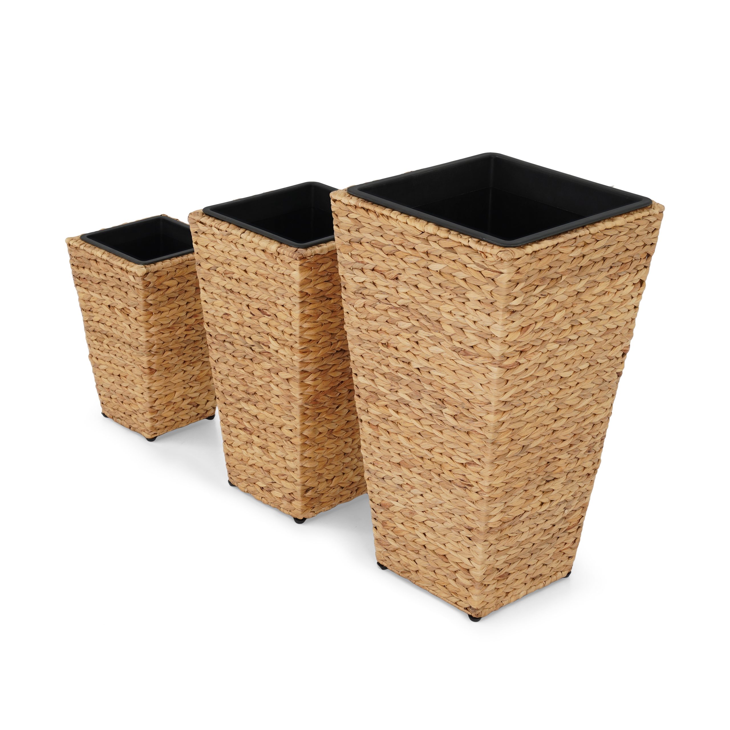 Set of 3 rattan planters with plastic lining.