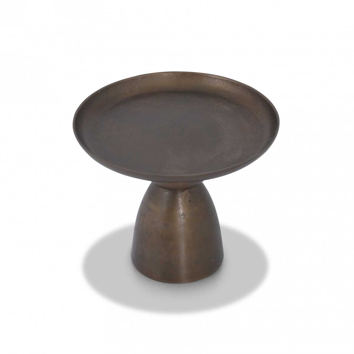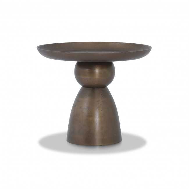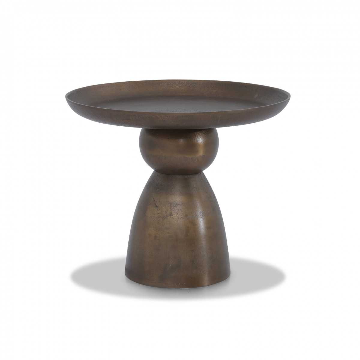 طاولة جانبية ذات سطح دائري وقاعدة منحنية.