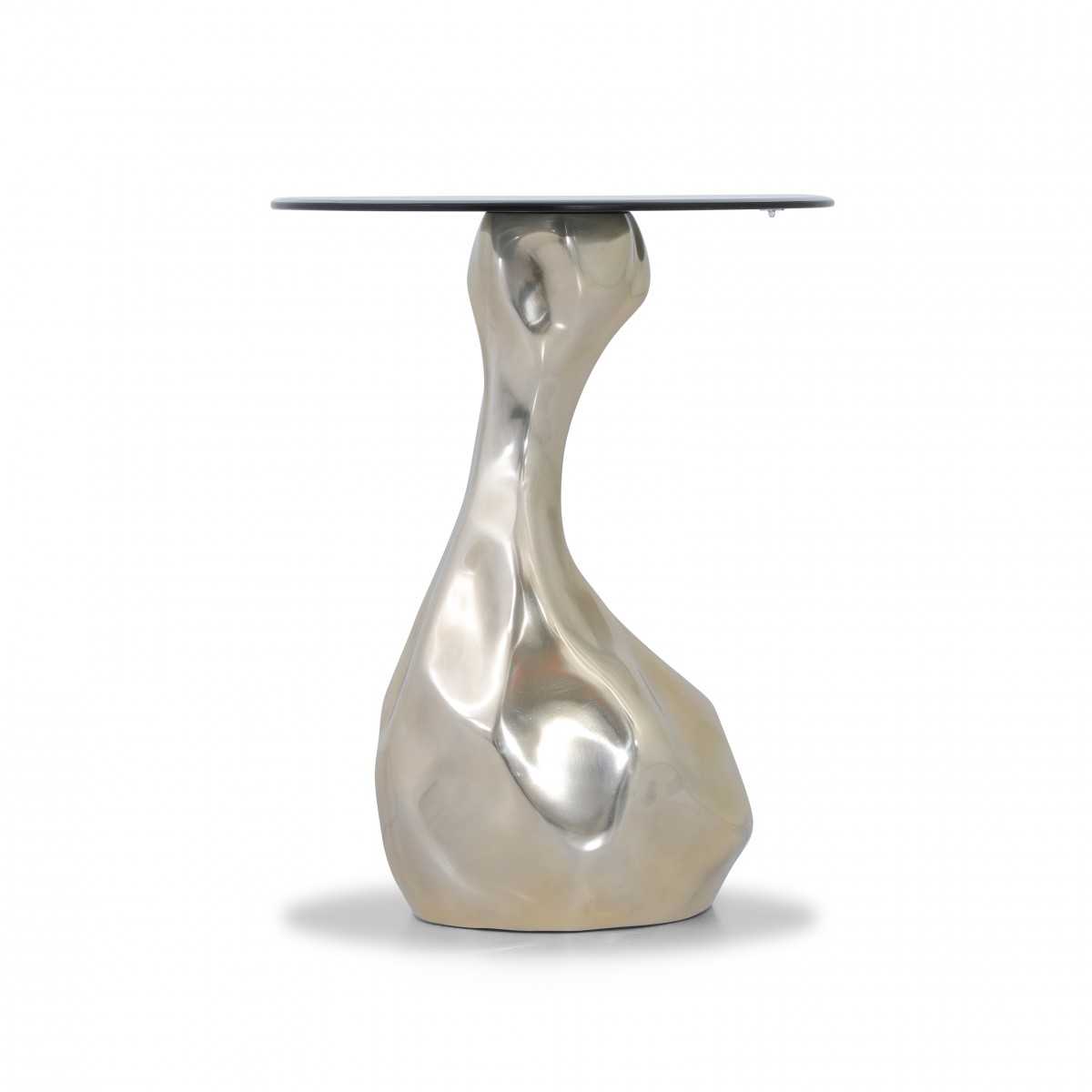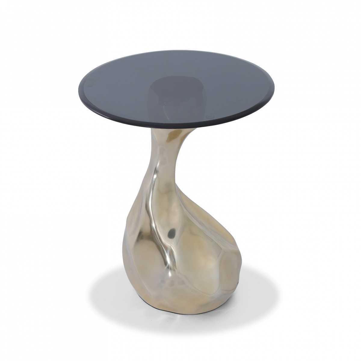 طاولة جانبية بقاعدة ذهبية اللون وسطح مستدير أنيق.