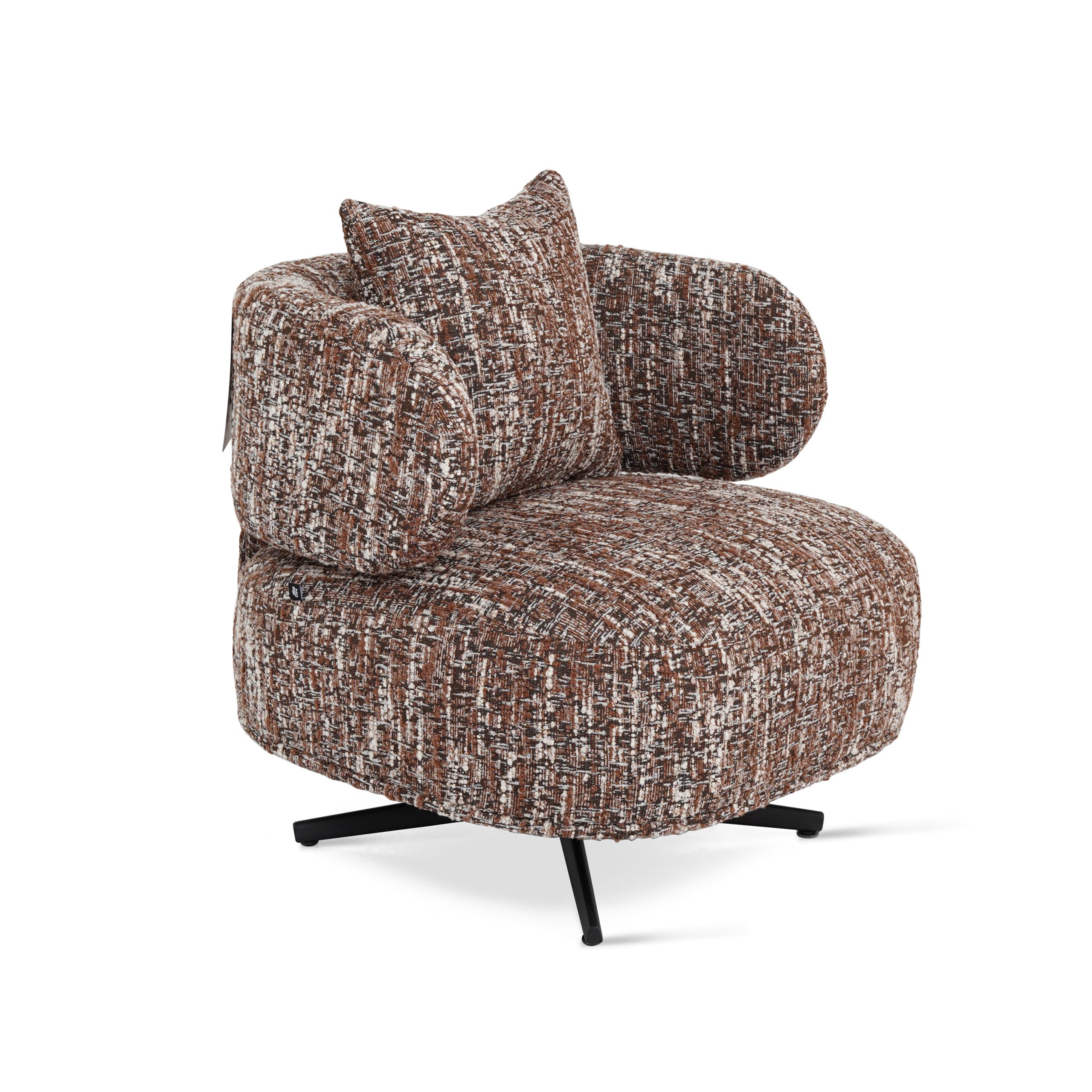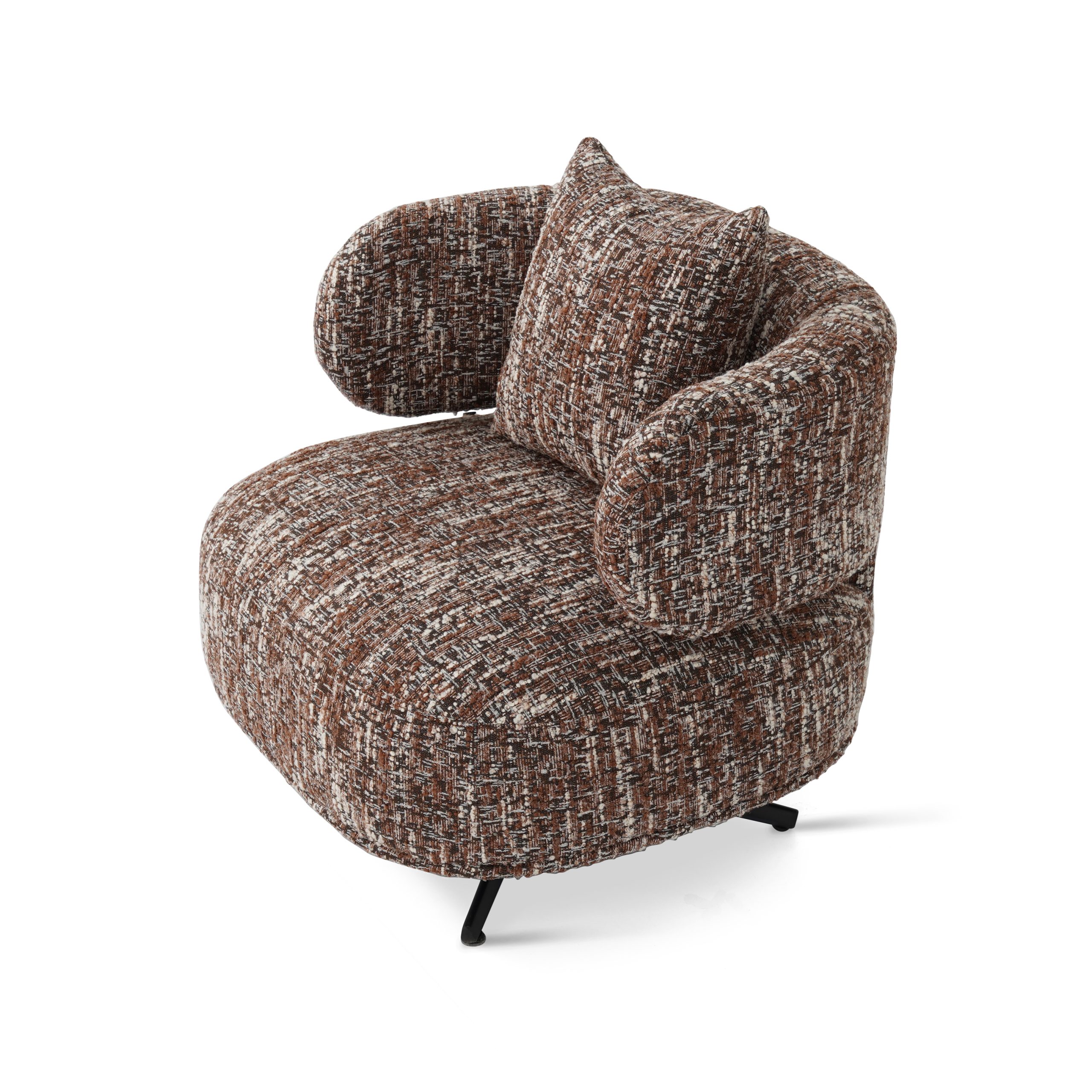 Brique and brown linen tweed effect armchair, blending textured warmth with contemporary style.