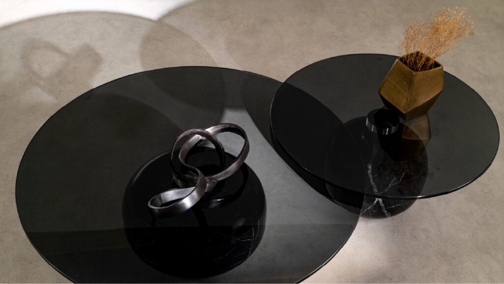• With leather and fabrics: When used as tabletops or accents, smoked glass lets upholstery textures peek through, which enhances the tactile appeal of the space.