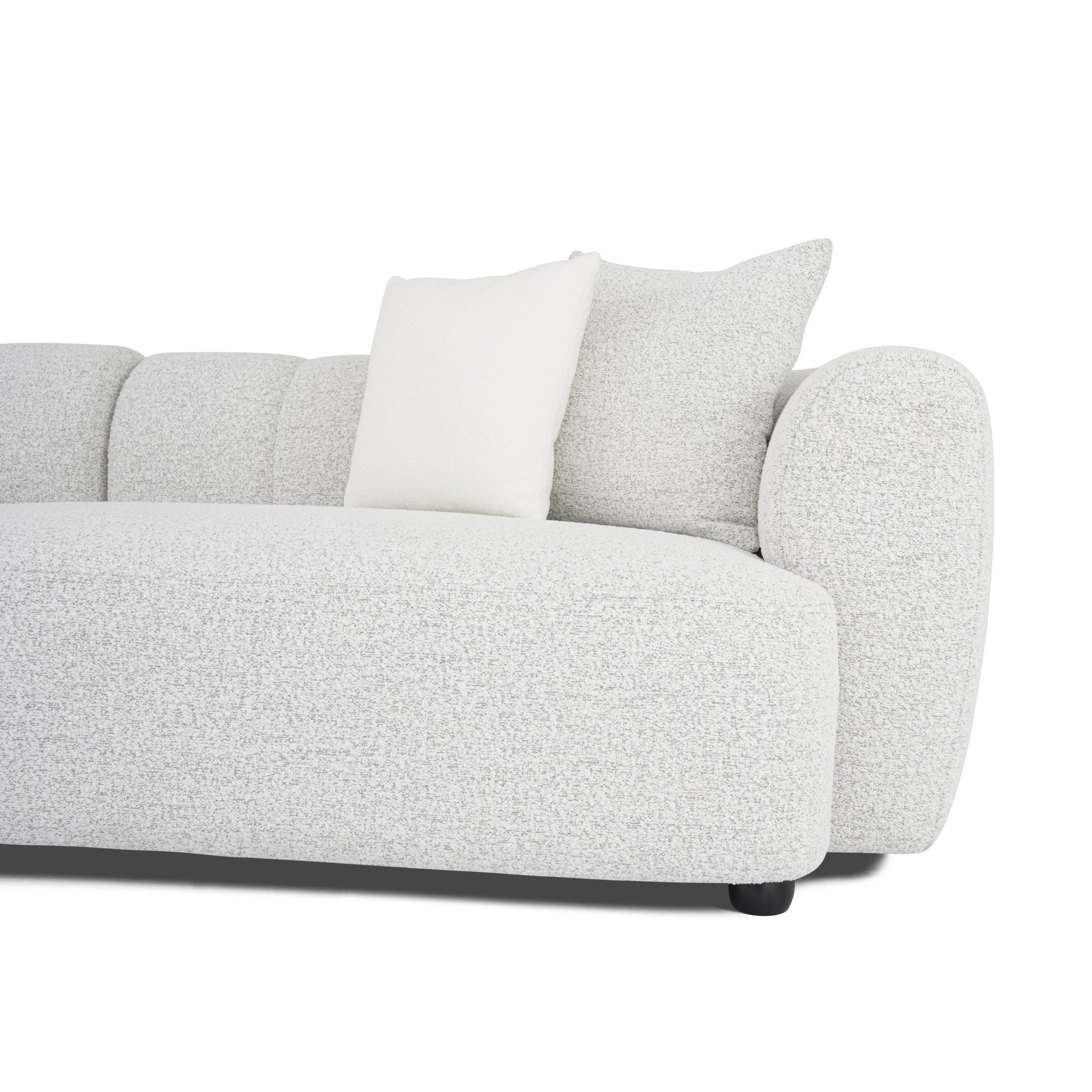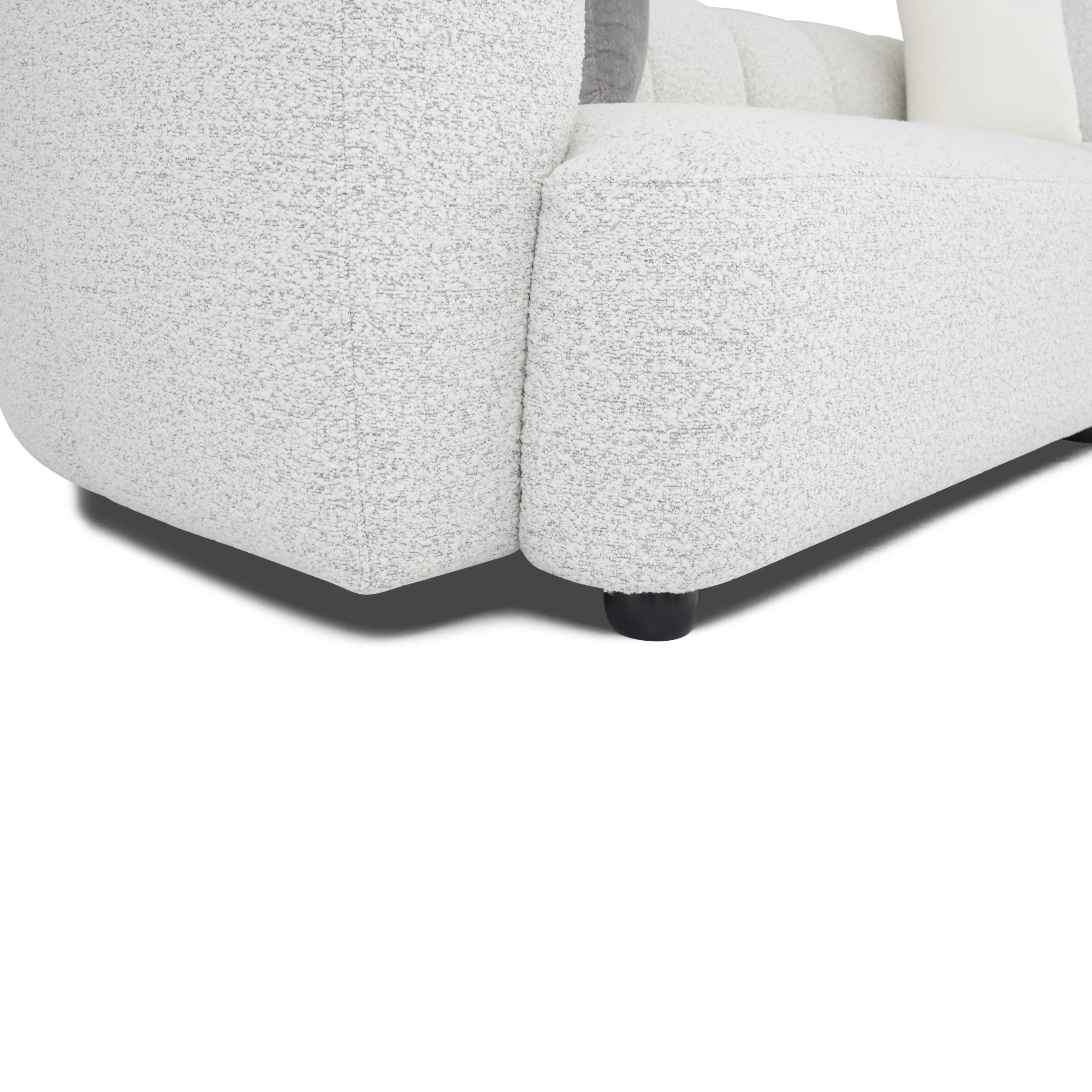 Soft light grey linen tweed with a bold black wooden base for a stylish, contemporary look.