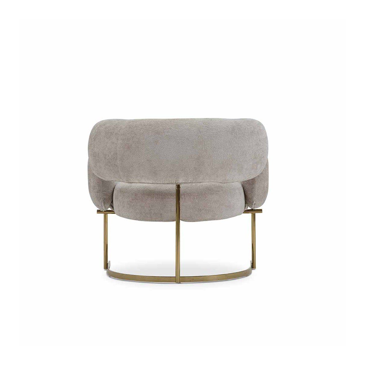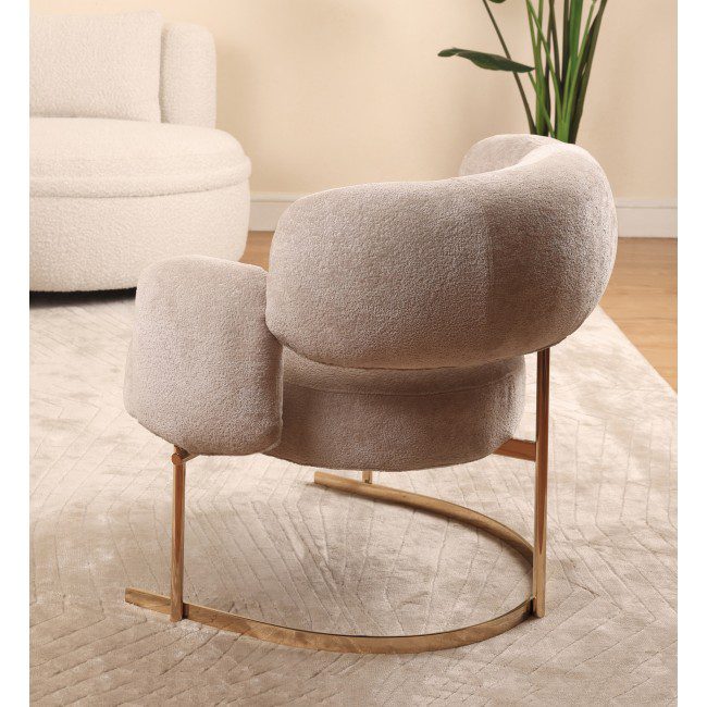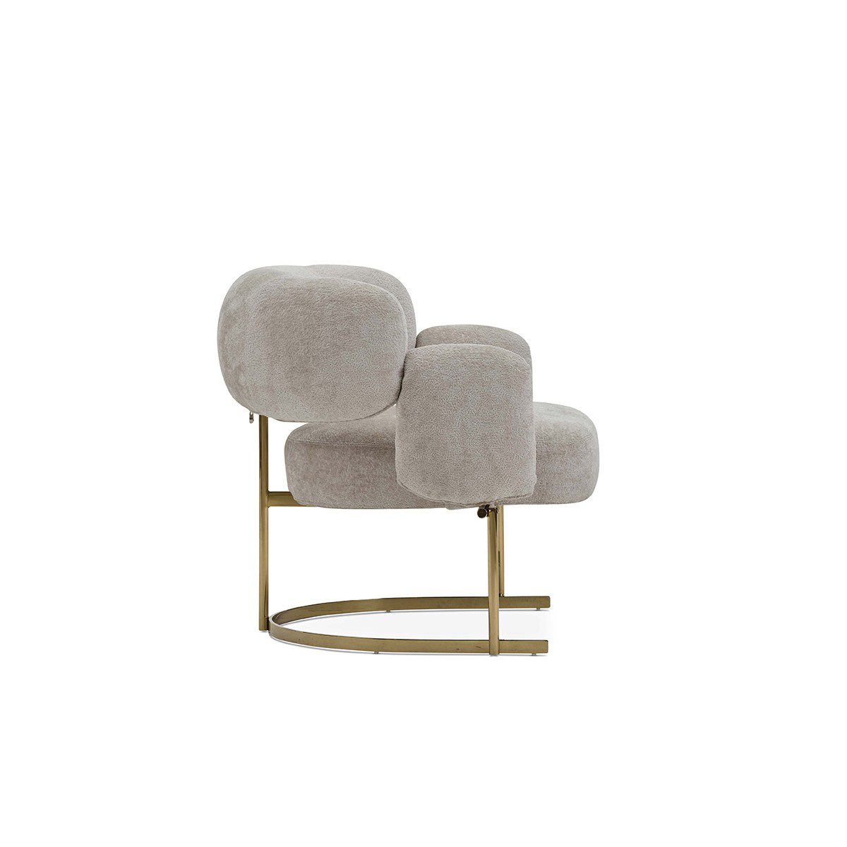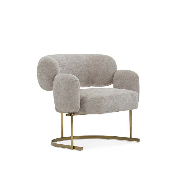 This chic piece features off-white bouclé velvet effect fabric with a brushed gold metal base.
