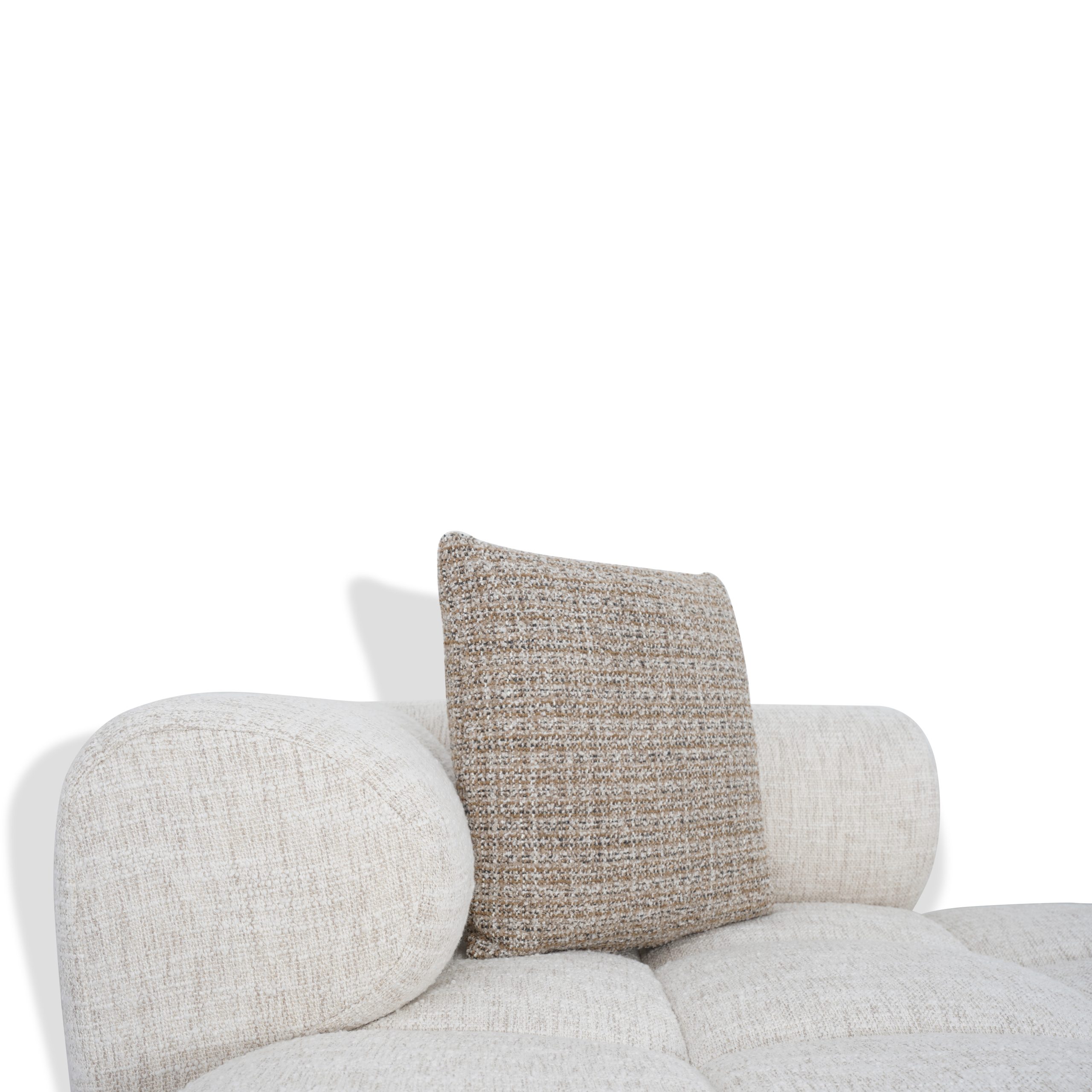 Type of material: Boucle Colour name of the fabric: off white/taupe Care instruction of the fabric: Wipe with clean water Type of base: hidden Color name of the base: black