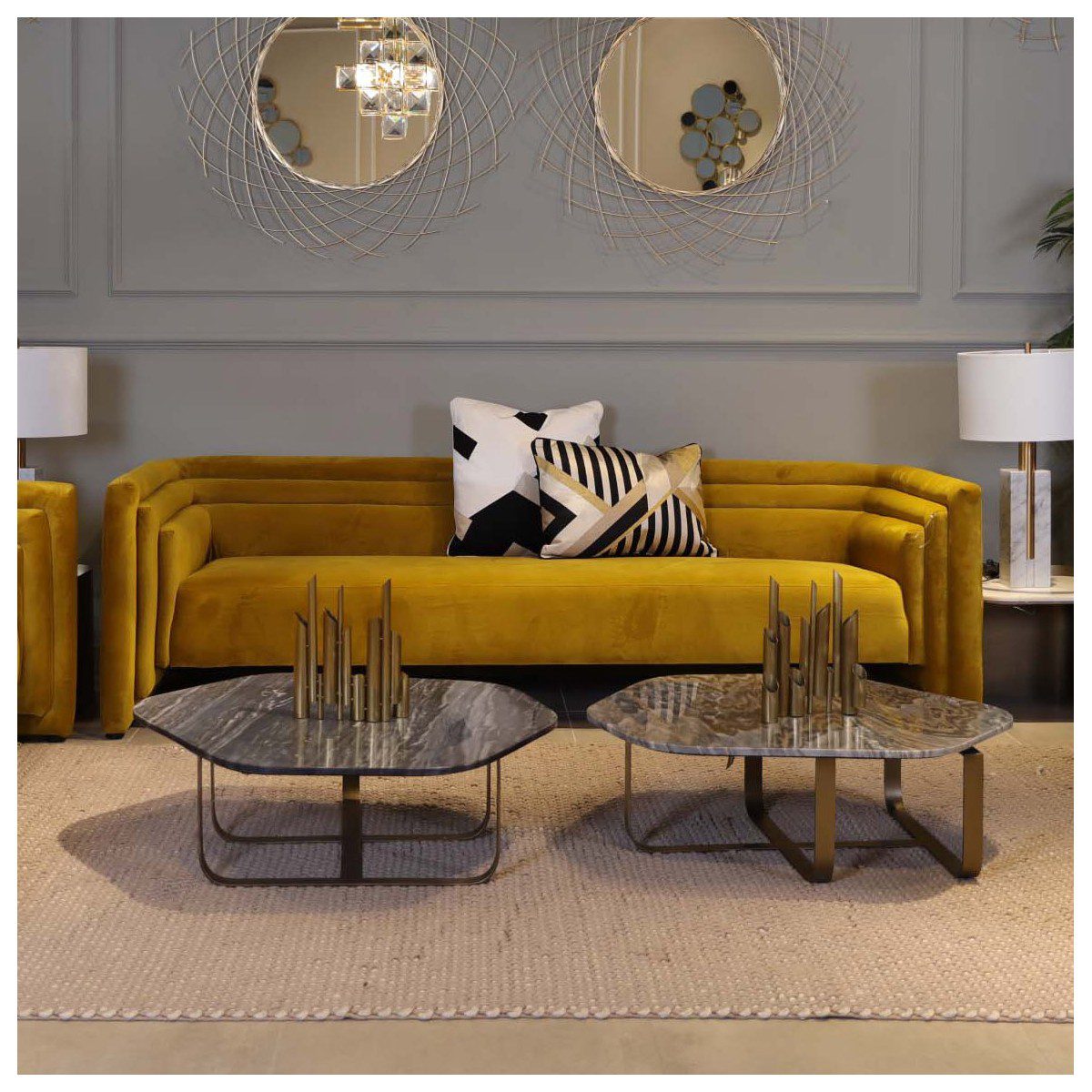 Premium materials and a striking modern profile distinguish this accent table.
