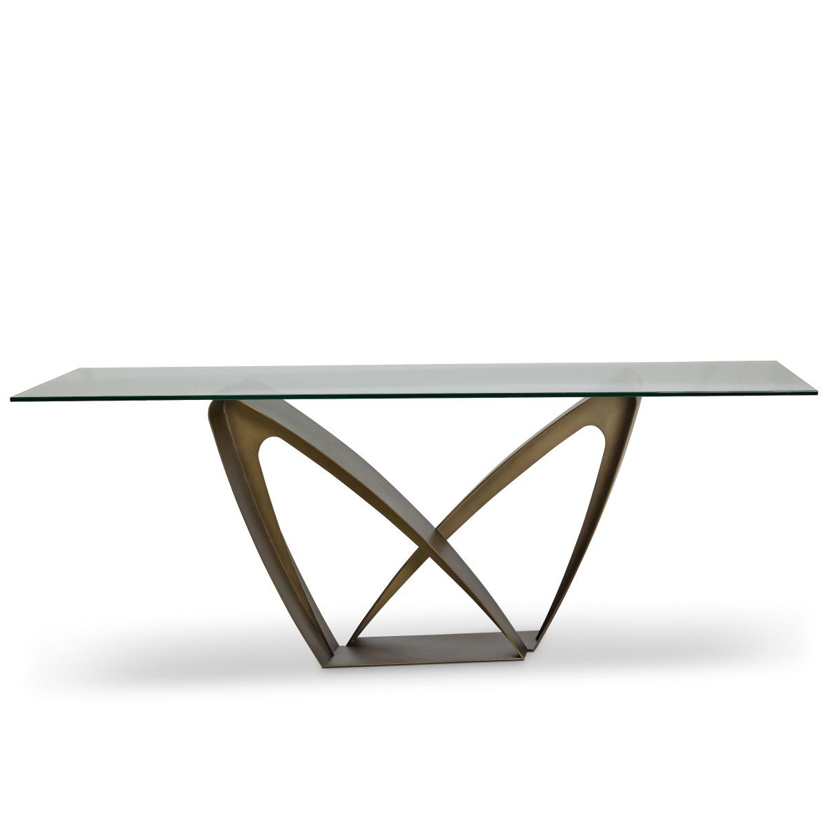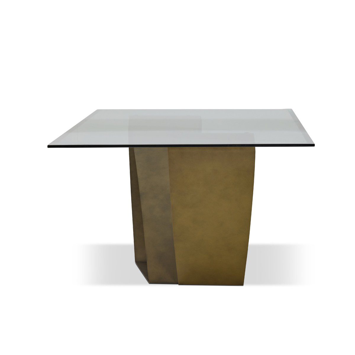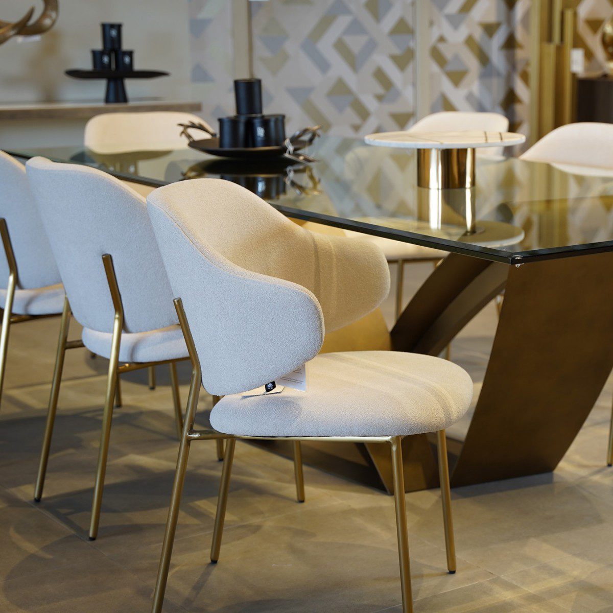 This table’s clear glass top offers a surface that exudes contemporary charm, perfect for creating an open and inviting atmosphere. Below, the metal base steals the spotlight with its brushed gold finish and special effect.