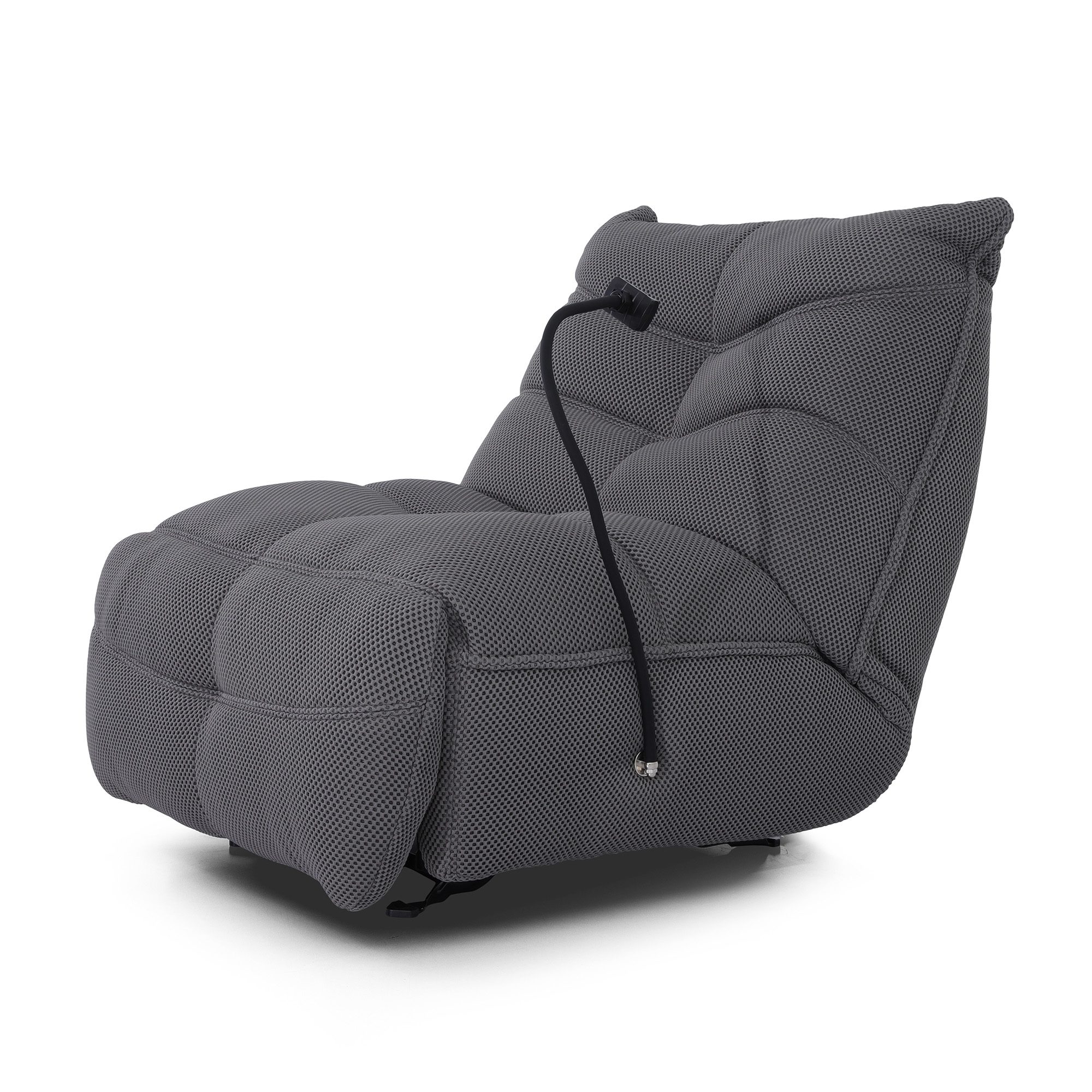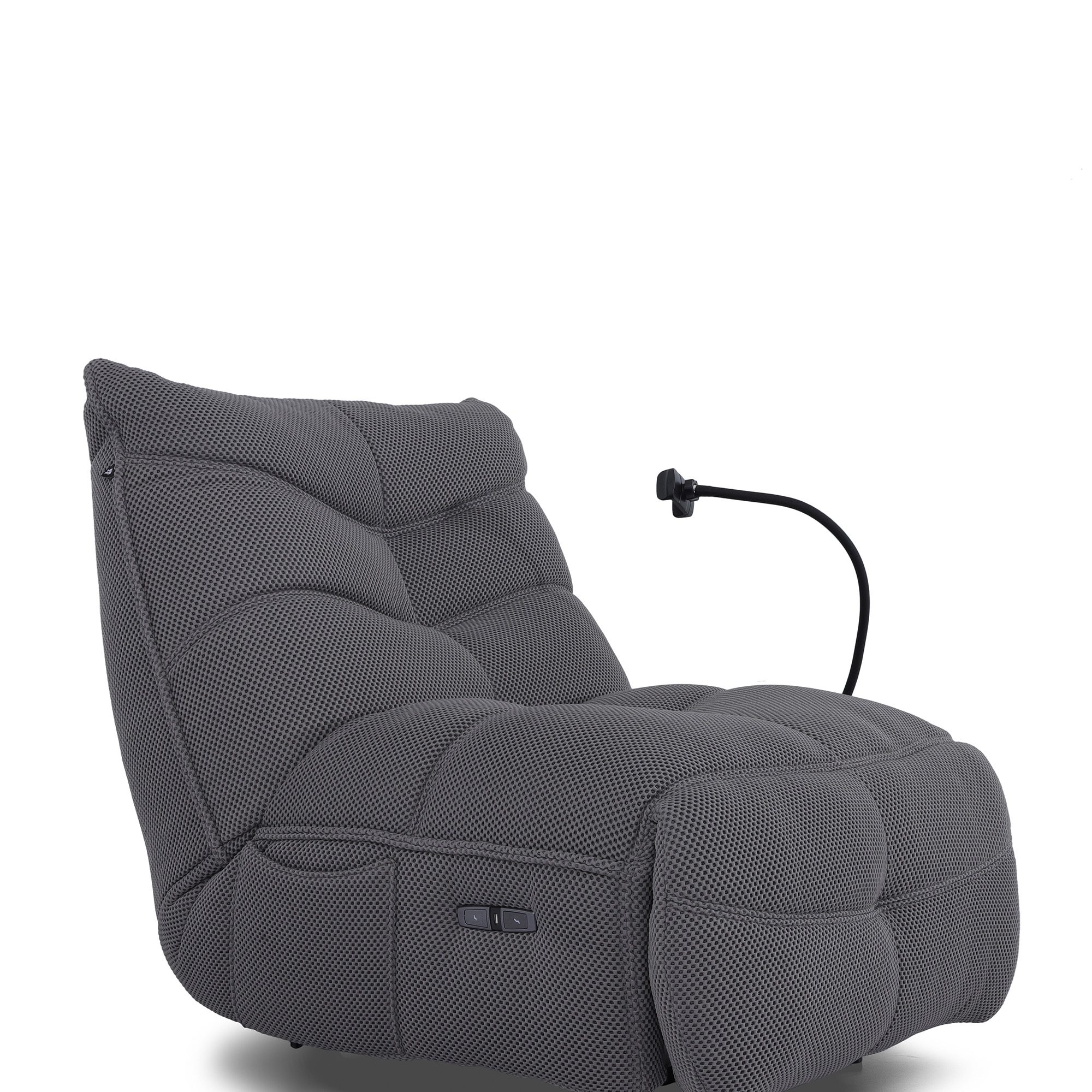Luxurious recliner with adjustable headrest and footrest.
