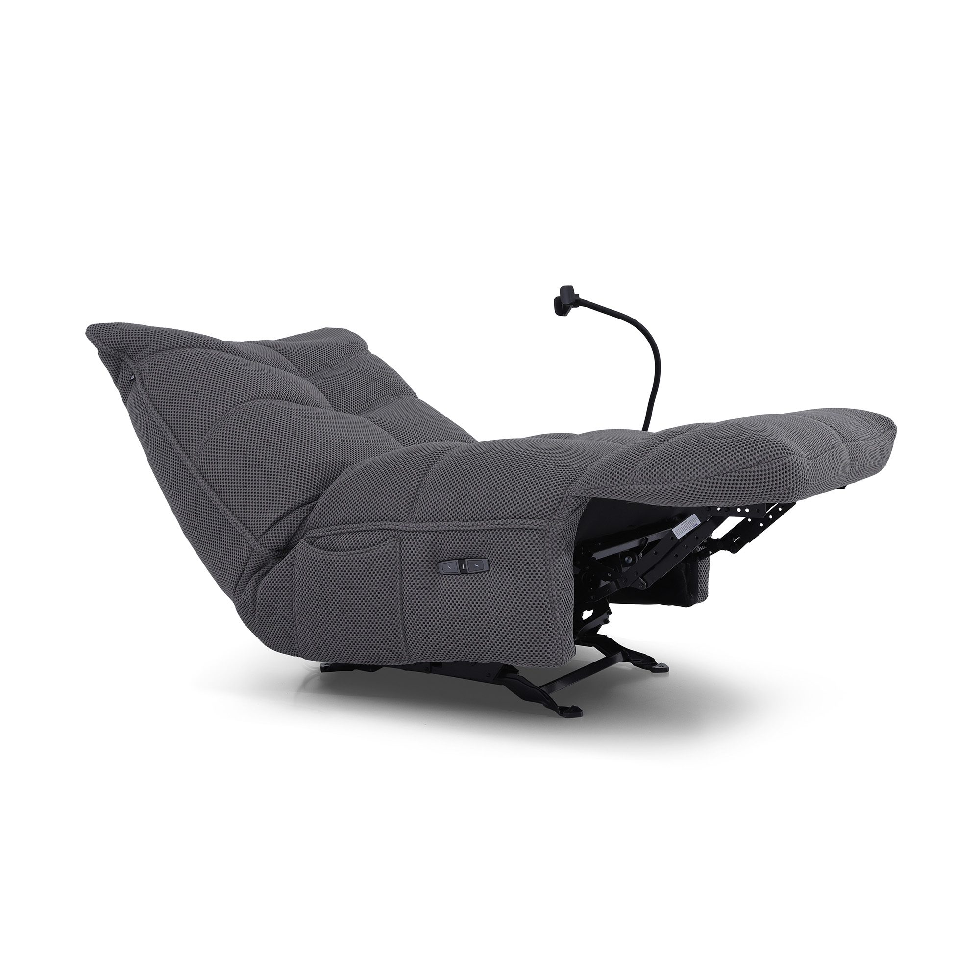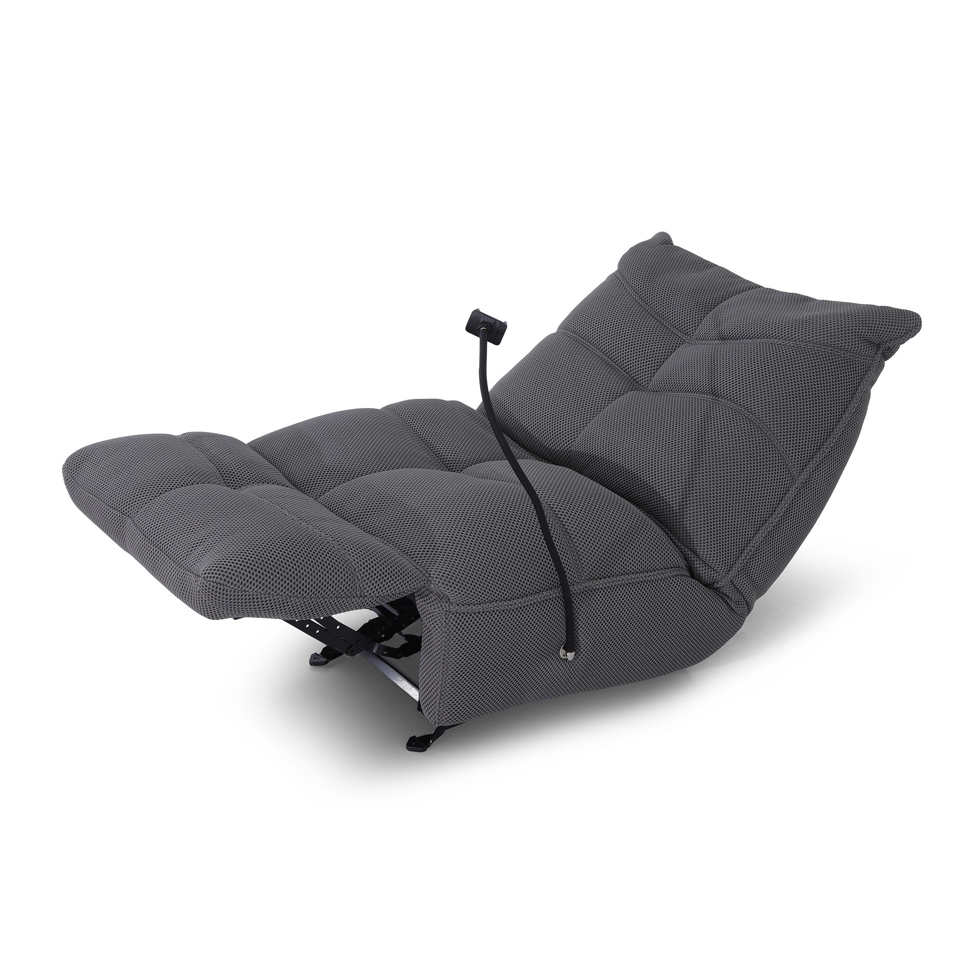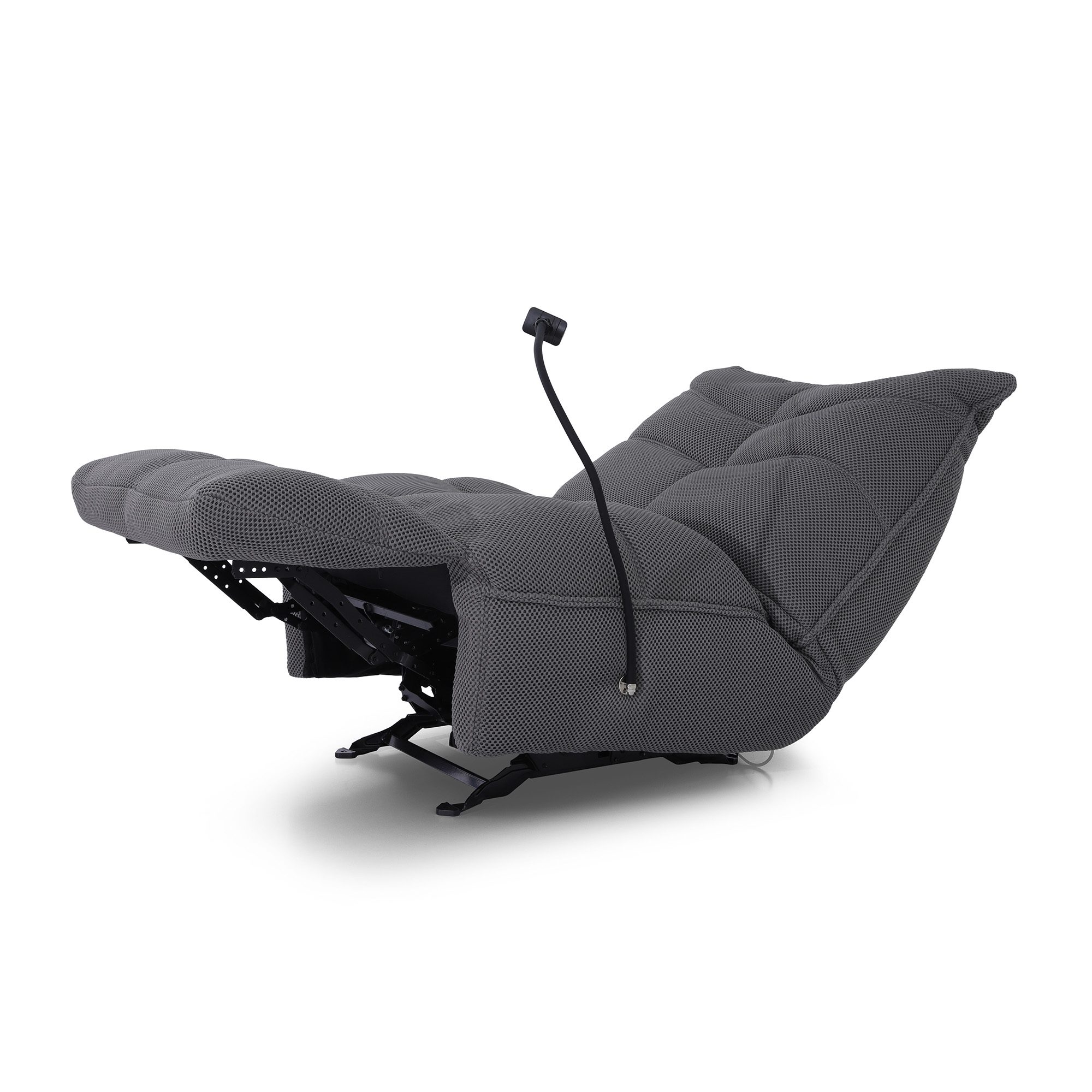 Type of material: 3D mesh on Linen fabric Color name of the fabric: Grey Care instruction of the fabric: Dry clean only Type of base: Metal Color name of the base: Black