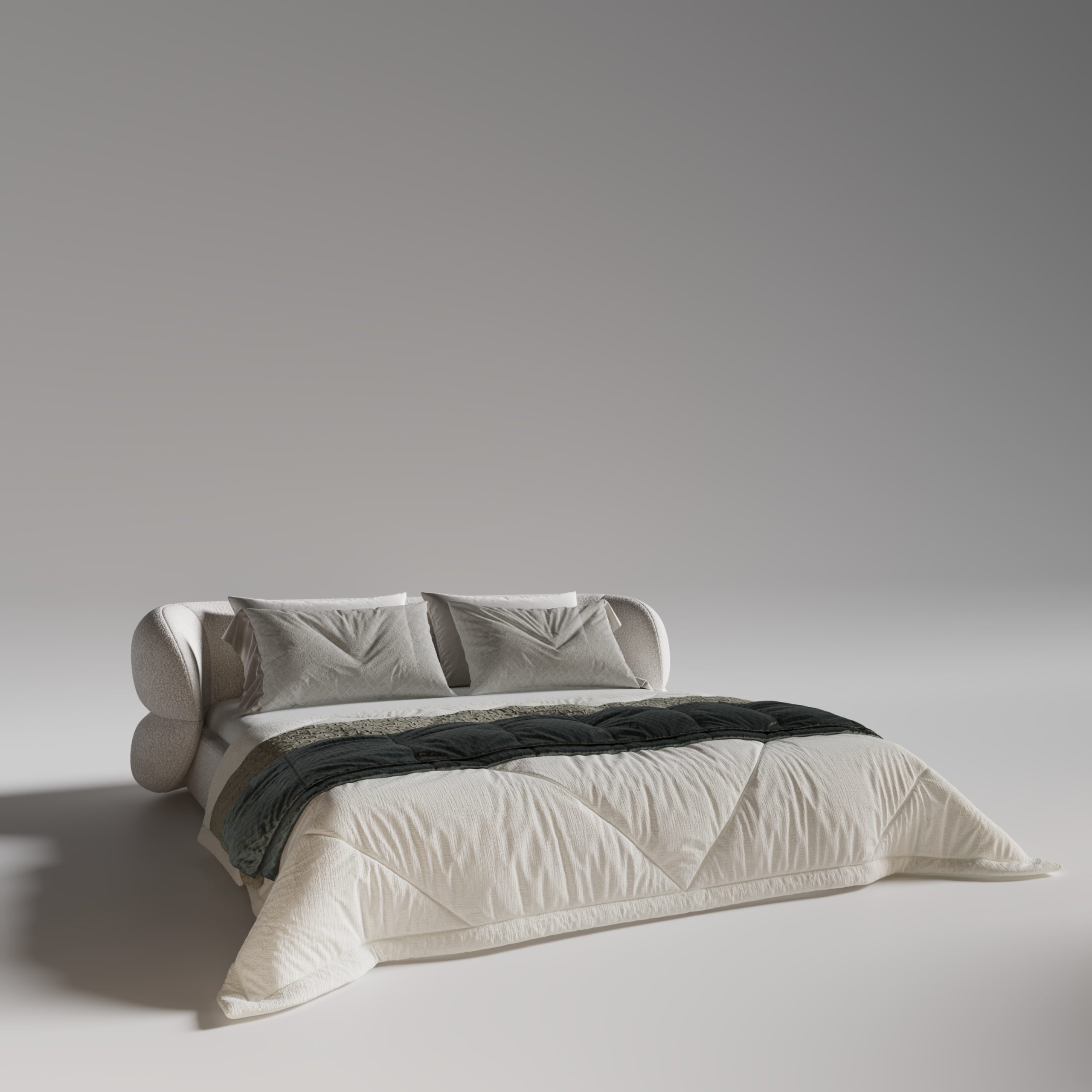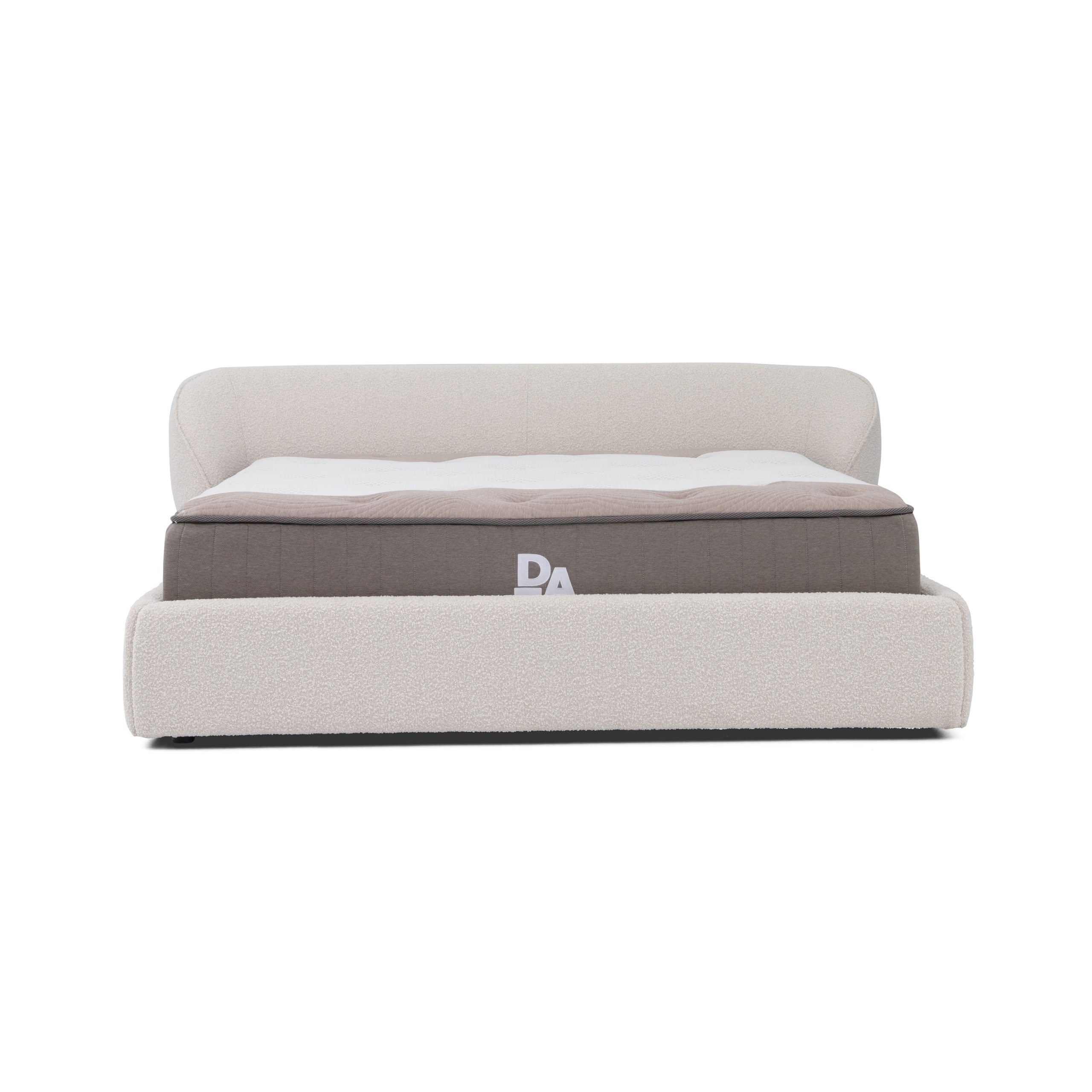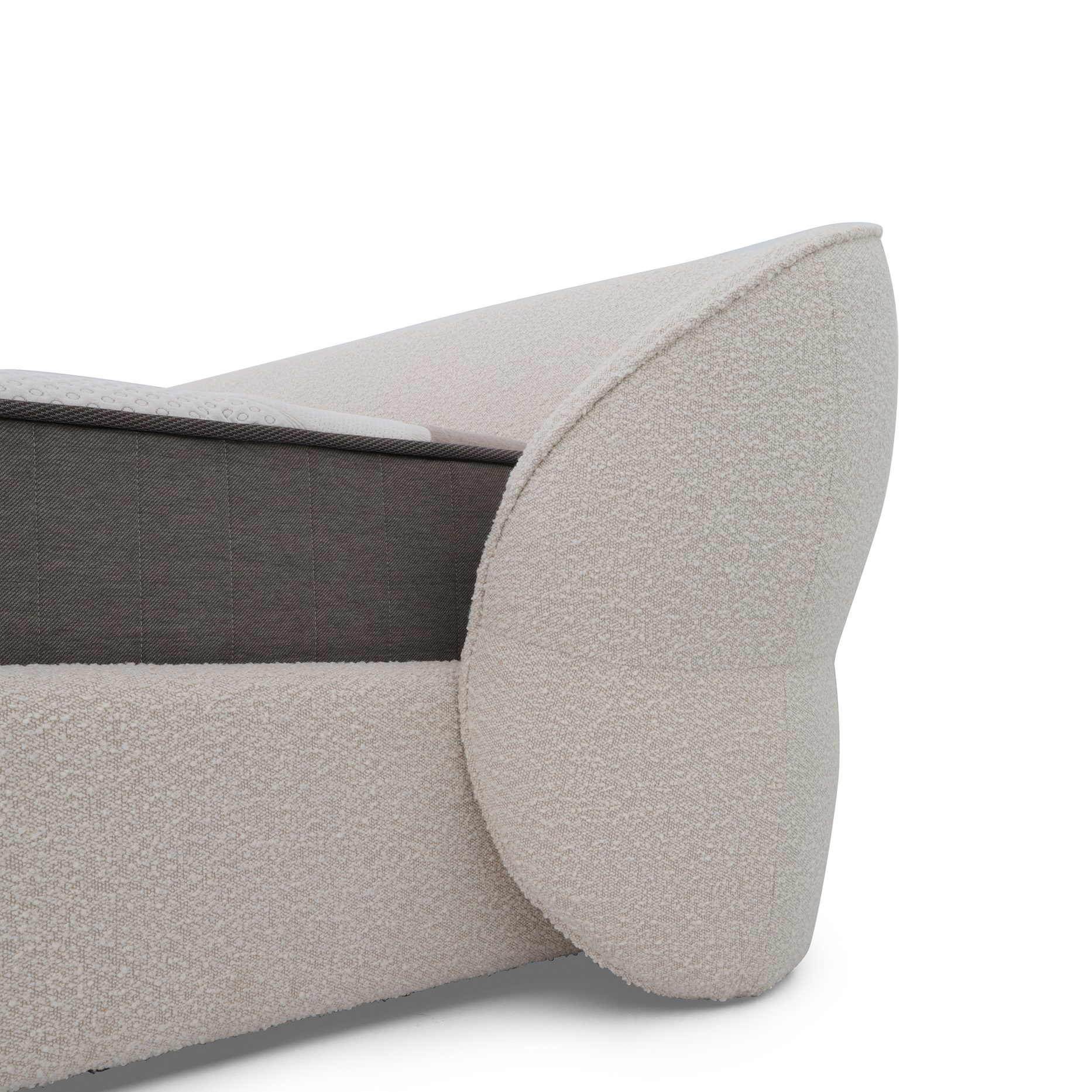Wrapped in exquisite Bouclé fabric, this bed boasts a rich texture and a soothing off-white hue that infuses your bedroom with a sense of calm sophistication.