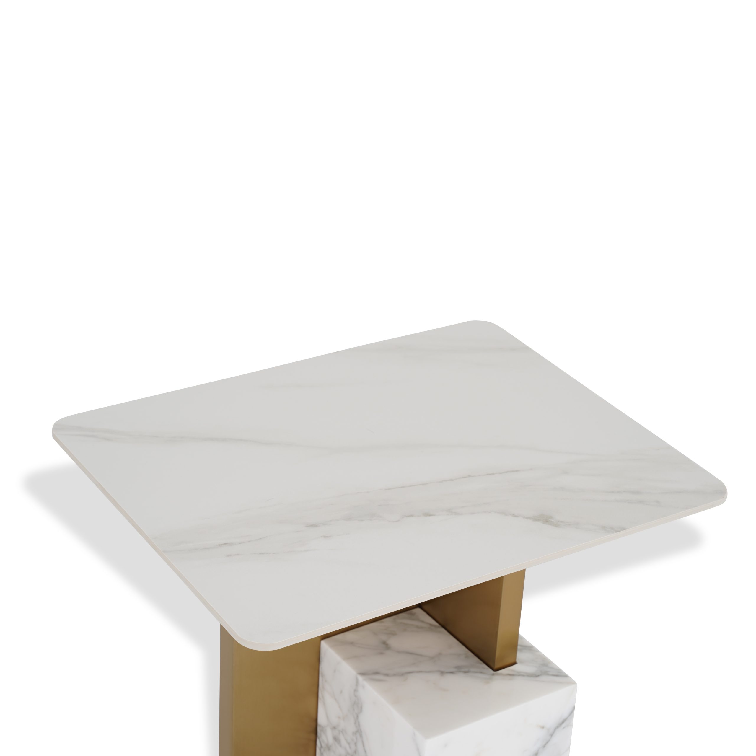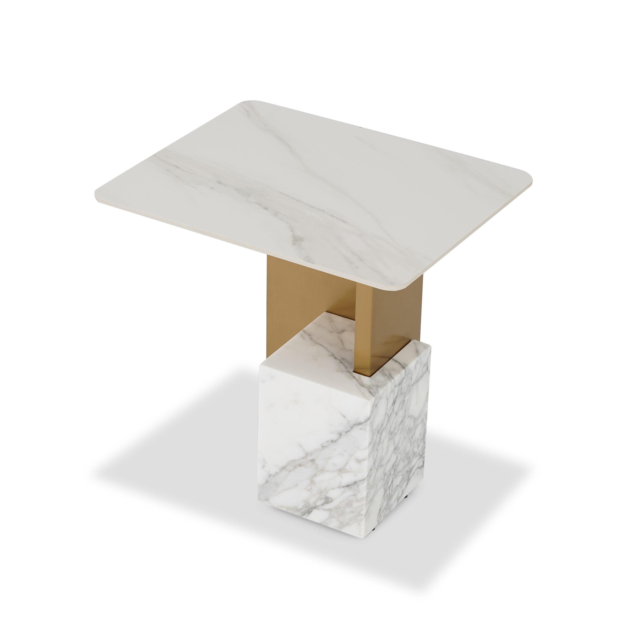 Simple in form, rich in material. This table blends ceramic and metal for a look that feels both modern and long-lasting.