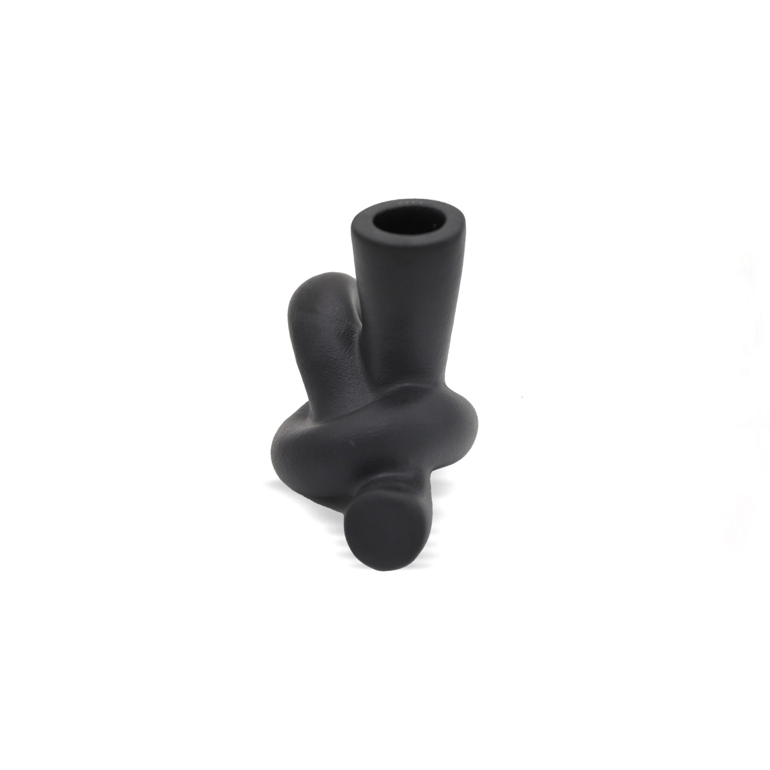 A sleek black ceramic sculpture with an abstract twisted loop, embodying modern minimalist sophistication.