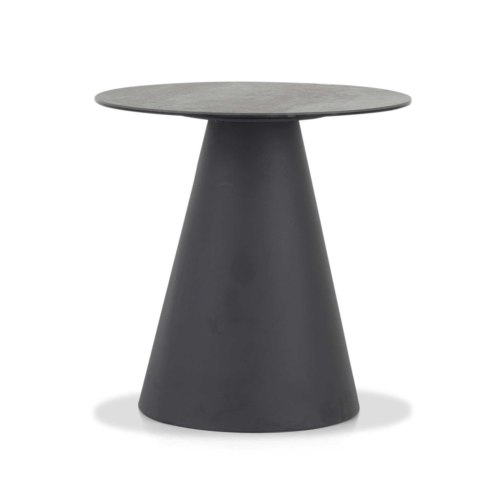 Sleek grey sintered stone top with a sturdy black metal base—heat resistant and easy to maintain.