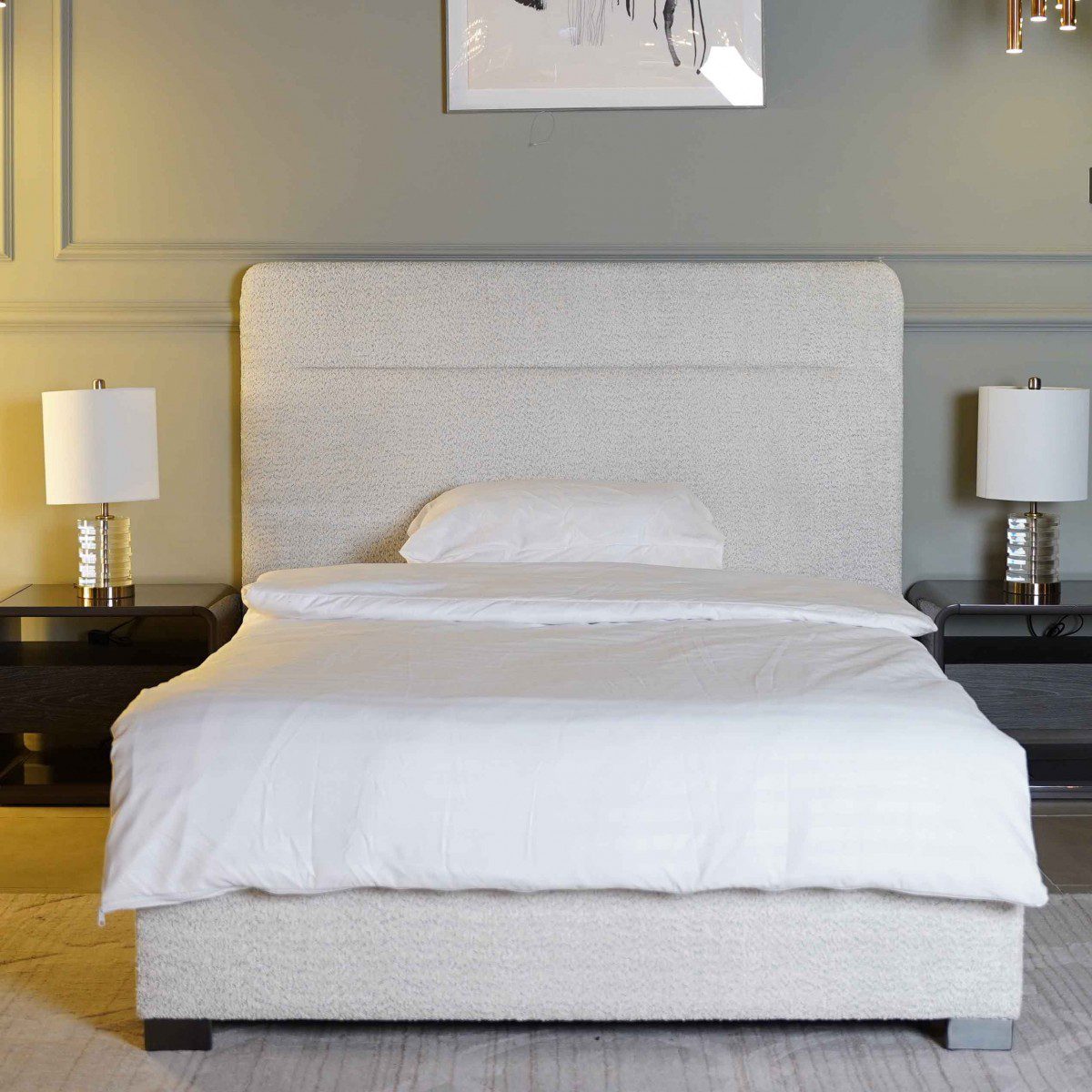 Wrapped in a meticulously crafted linen fabric, this bed features a sophisticated tweed effect that adds a layer of rich texture to its sleek design. The light grey hue of the material offers a tranquil, modern aesthetic that seamlessly blends with any color scheme.