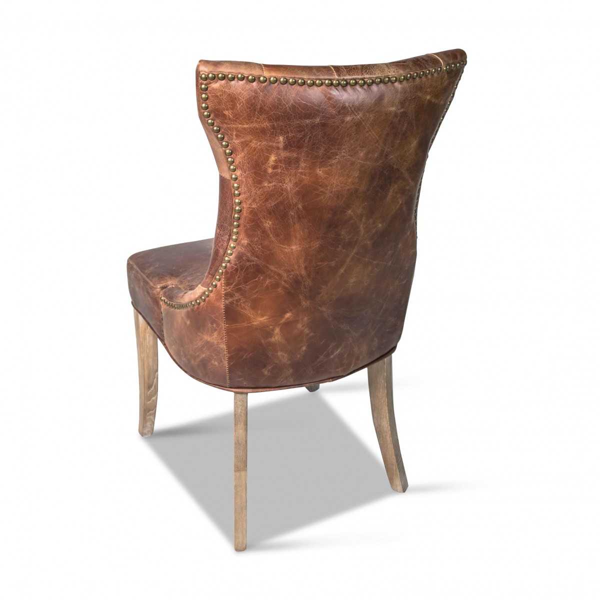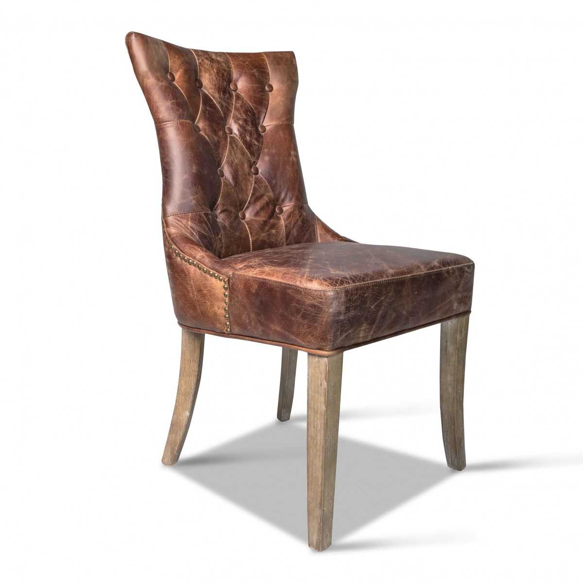 It feels like you are invited over a royal banquet from the medieval era! These vintage like dining chairs come in an elegant burnt brown leather, a diamond tufted backrest, light toned wooden legs.
