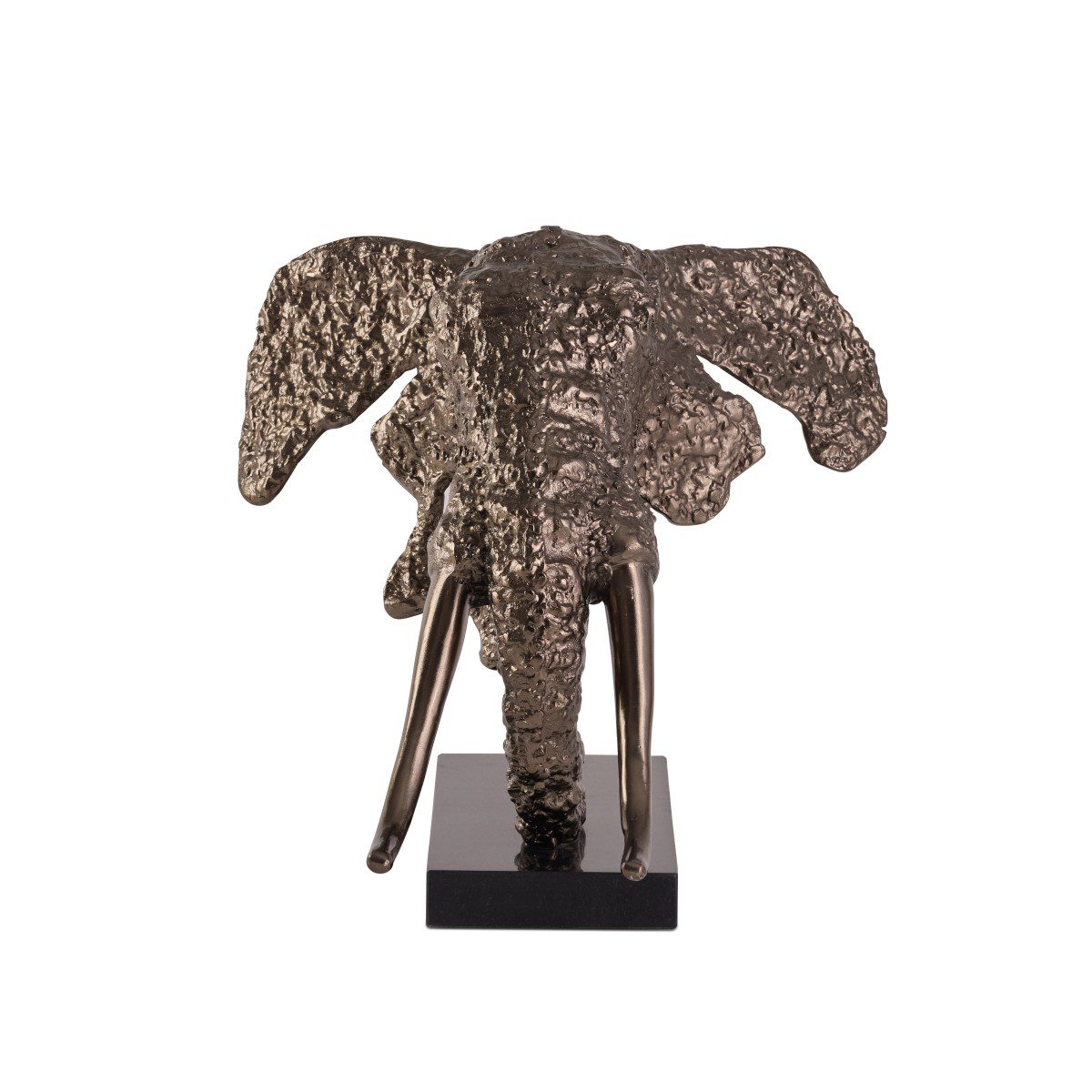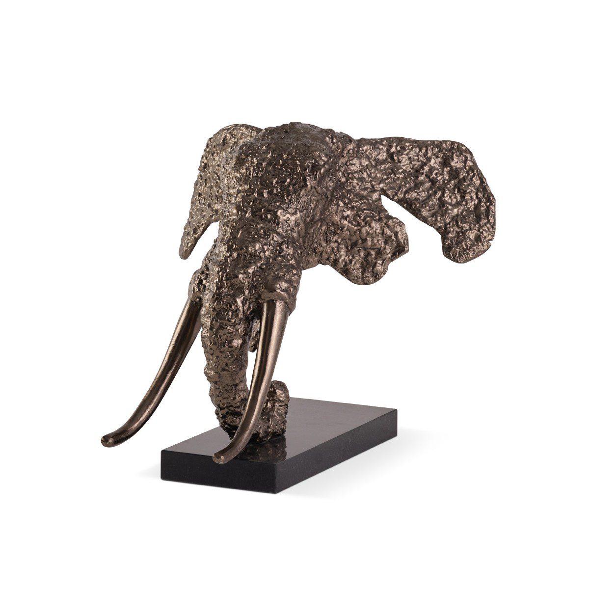 Elephant Head Sculpture rustic silver aluminum and black marble base.