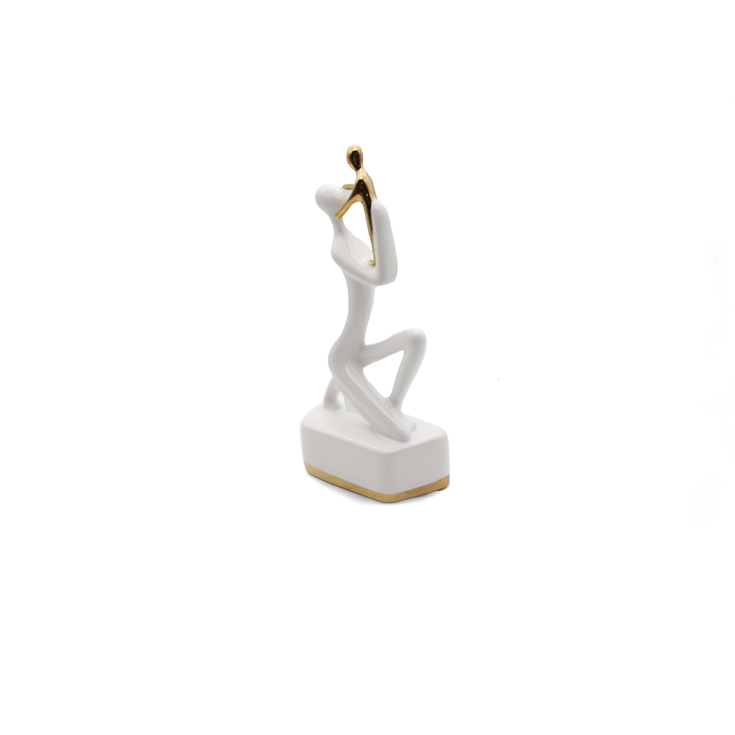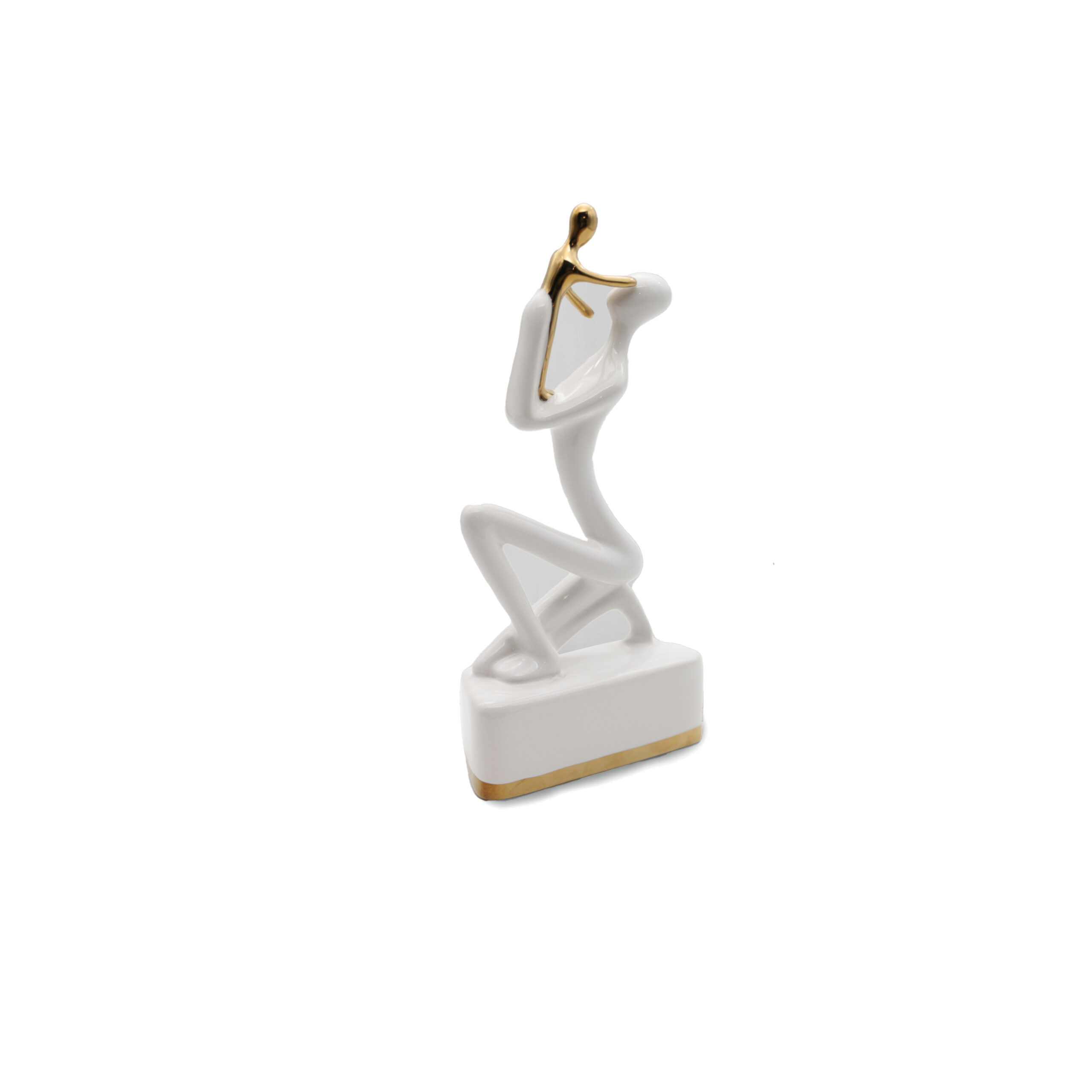 A graceful portrayal of motherhood, crafted in glossy white and gold for timeless elegance.