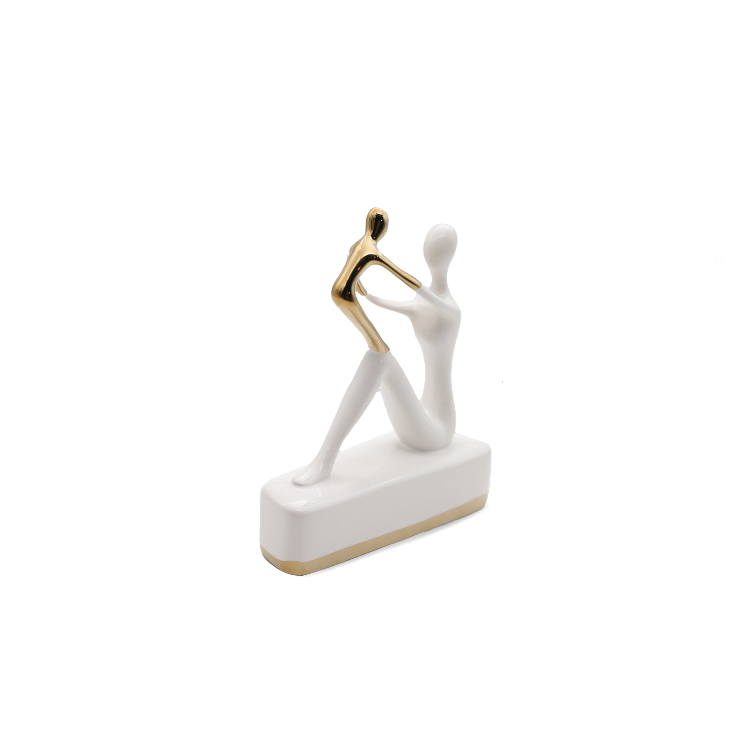 An elegant depiction of maternal love, finished in glossy white and gold for a touch of refined grace.