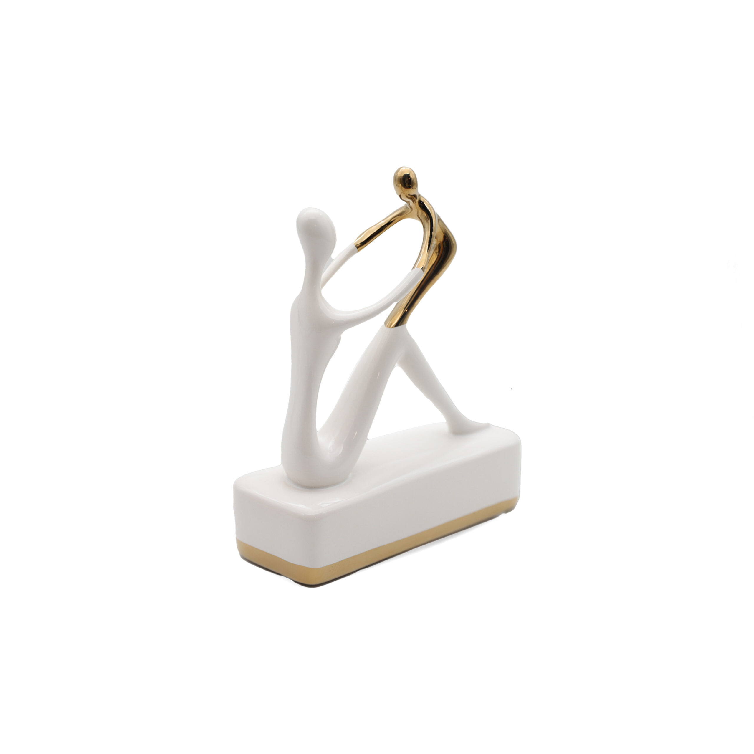 Figurine 2 of a woman and baby in white and gold colors, with glossy finish ceramic