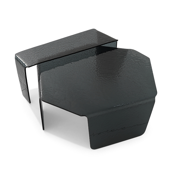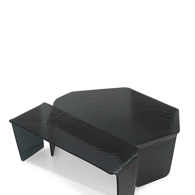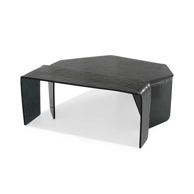 Crafted entirely from crackled glass, both the top and base reflect light beautifully, creating a sleek, high-end look with a touch of edgy sophistication.