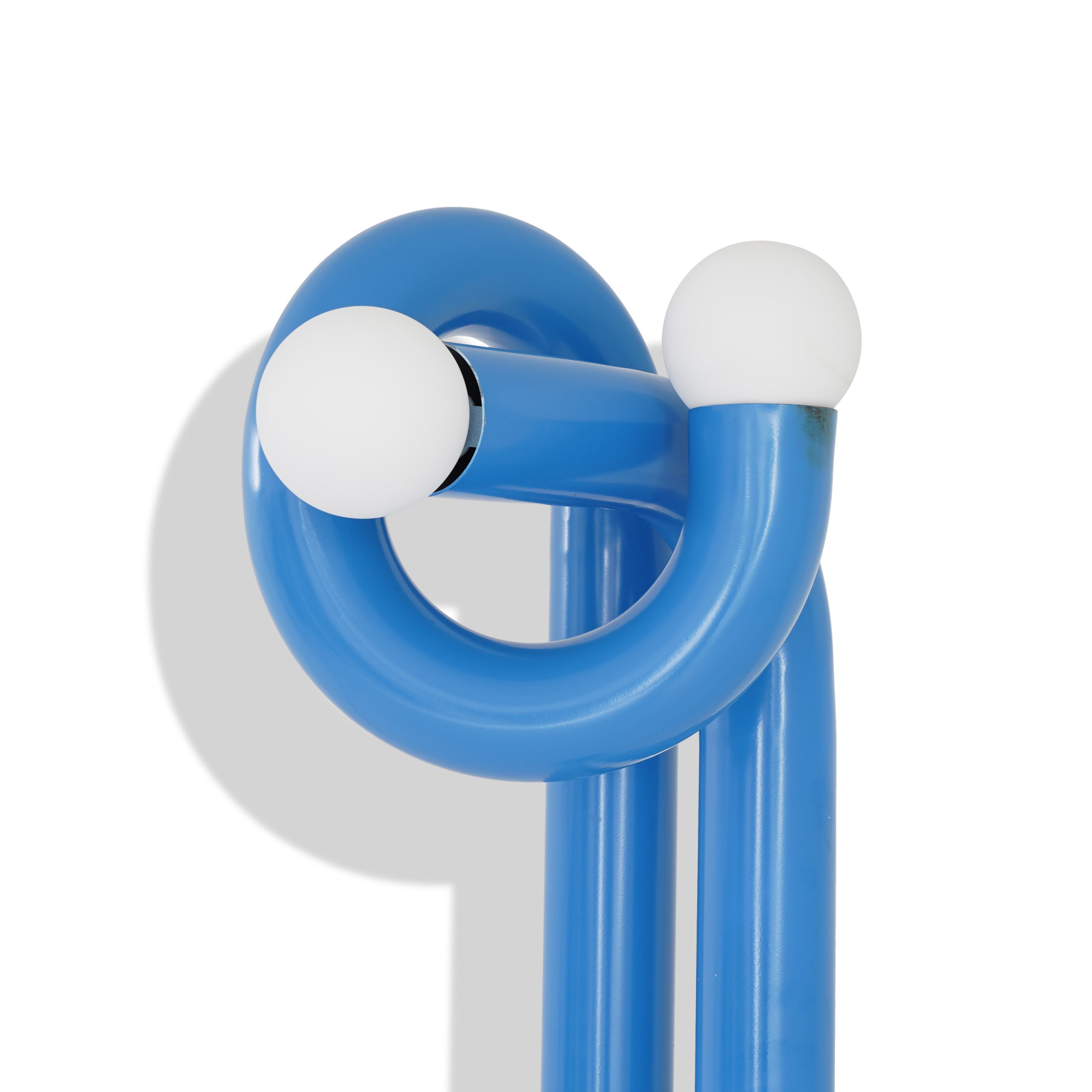 Brushed semi shiny blue metal base with glass shade
