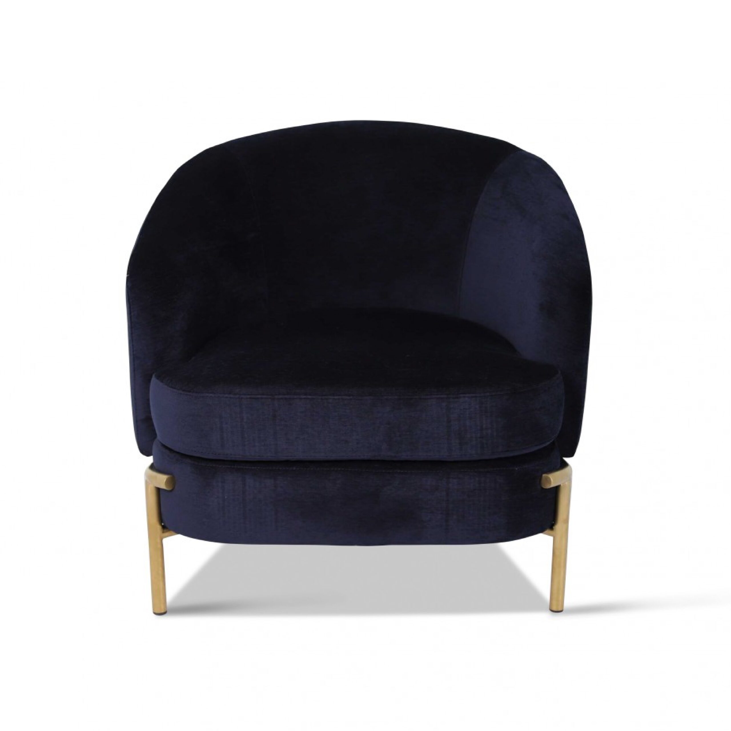 Step into a realm of refined elegance where opulent comfort meets timeless style in a rich, dark blue hue.