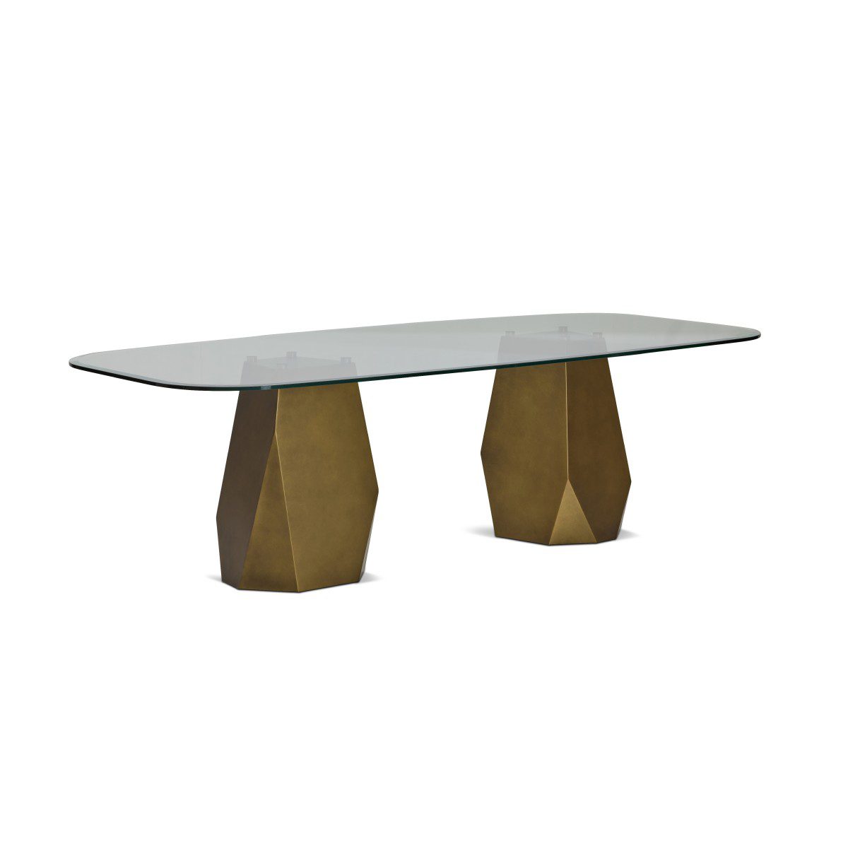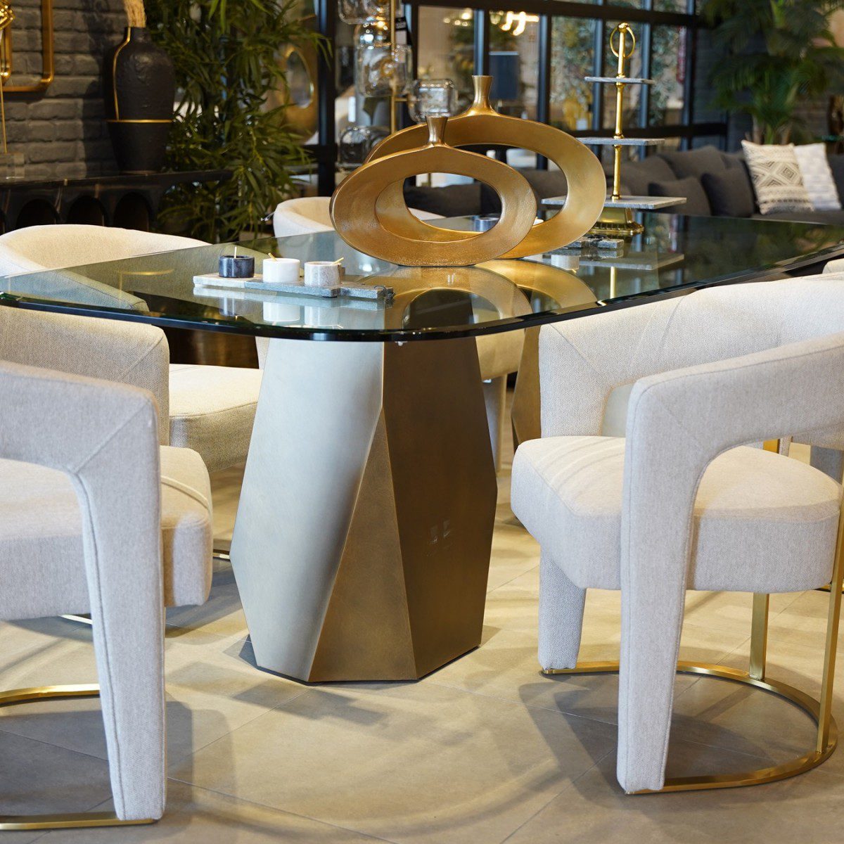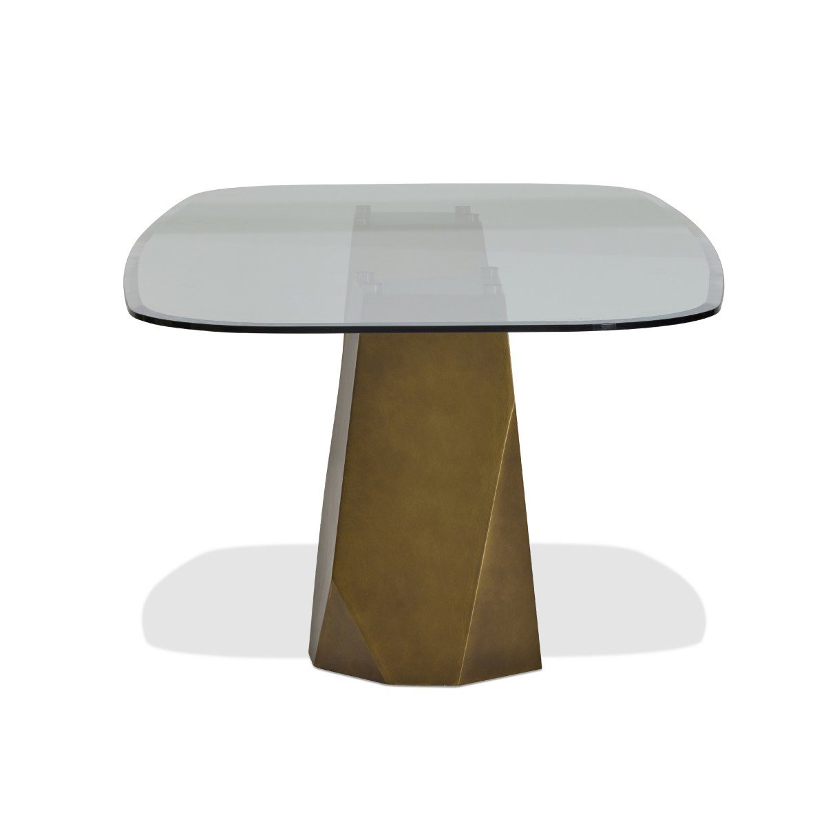 Add an elegant touch to your dining area with this table, featuring a clear tempered glass top. The brushed gold stainless steel base brings a warm contrast that enhances the overall design.