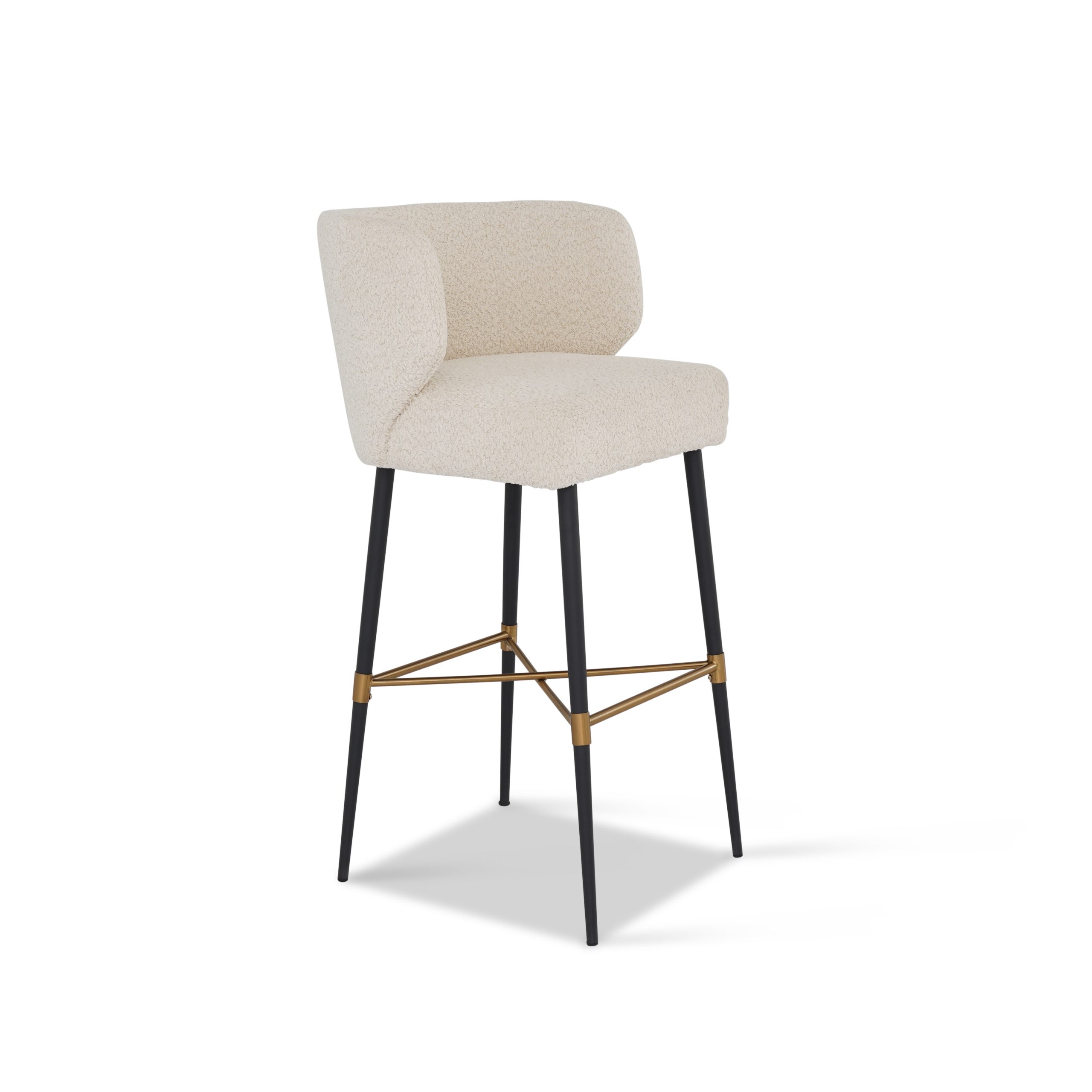 Type of material: boucle Color name of the material: Off-white Care instruction: Wipe with clean water Type of base: metal Color name of the base:black /brushed brass