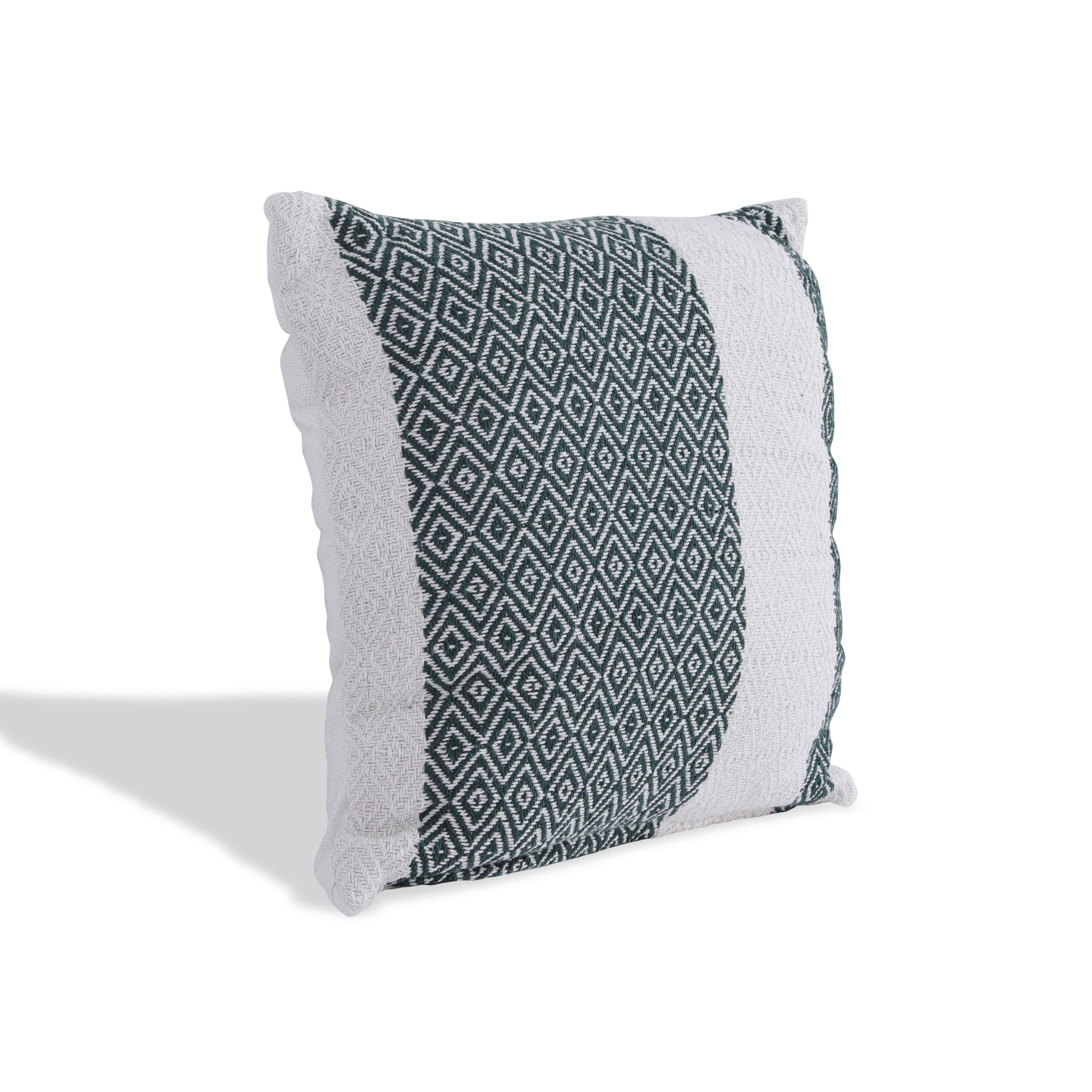 Off-white and green cushion