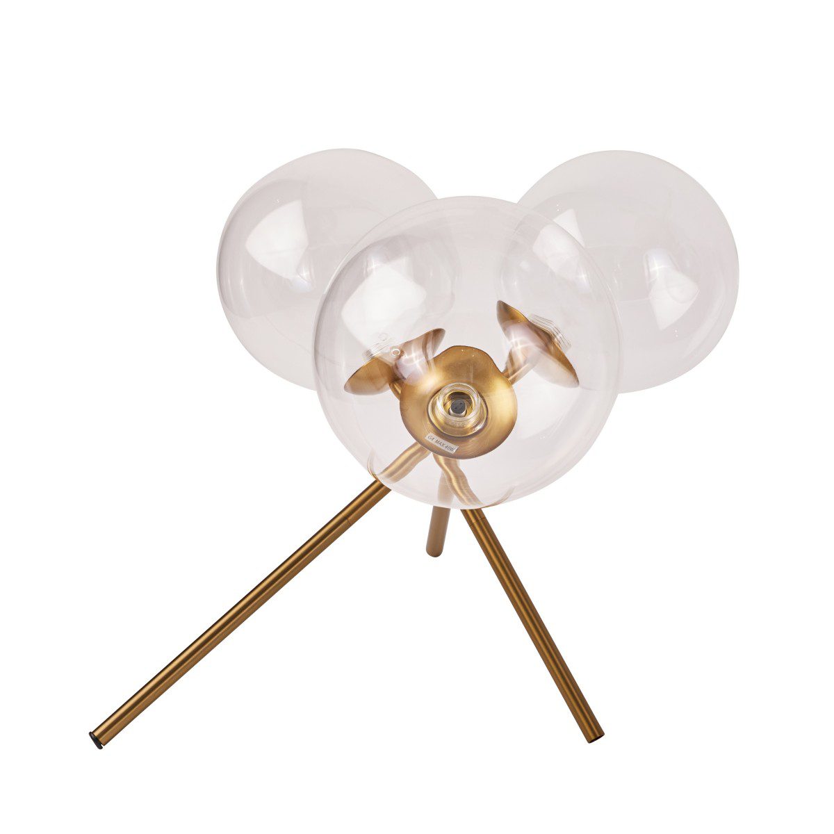 With its brushed brass base and transparent glass globe shades, this lamp adds a chic and luminous touch wherever you place it.