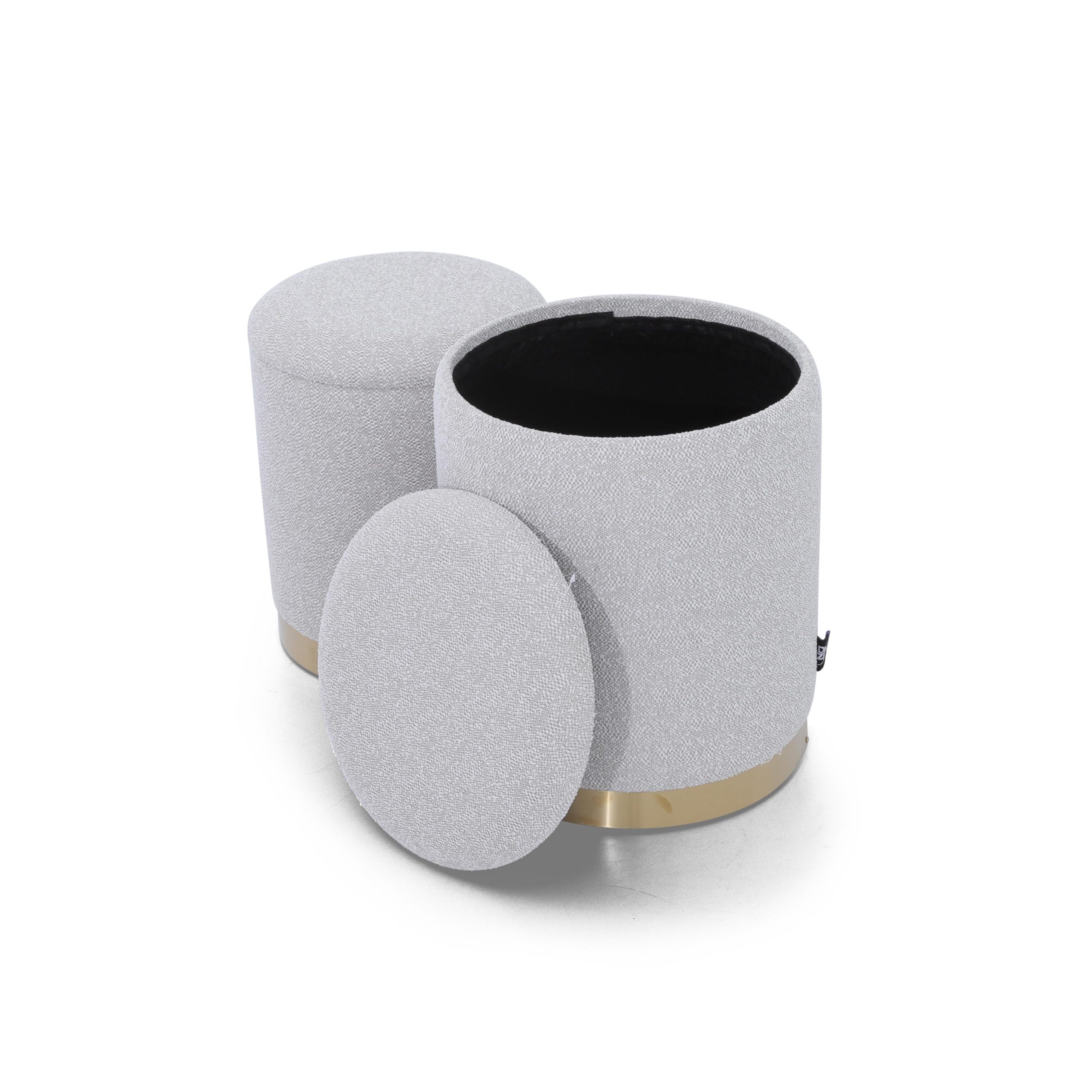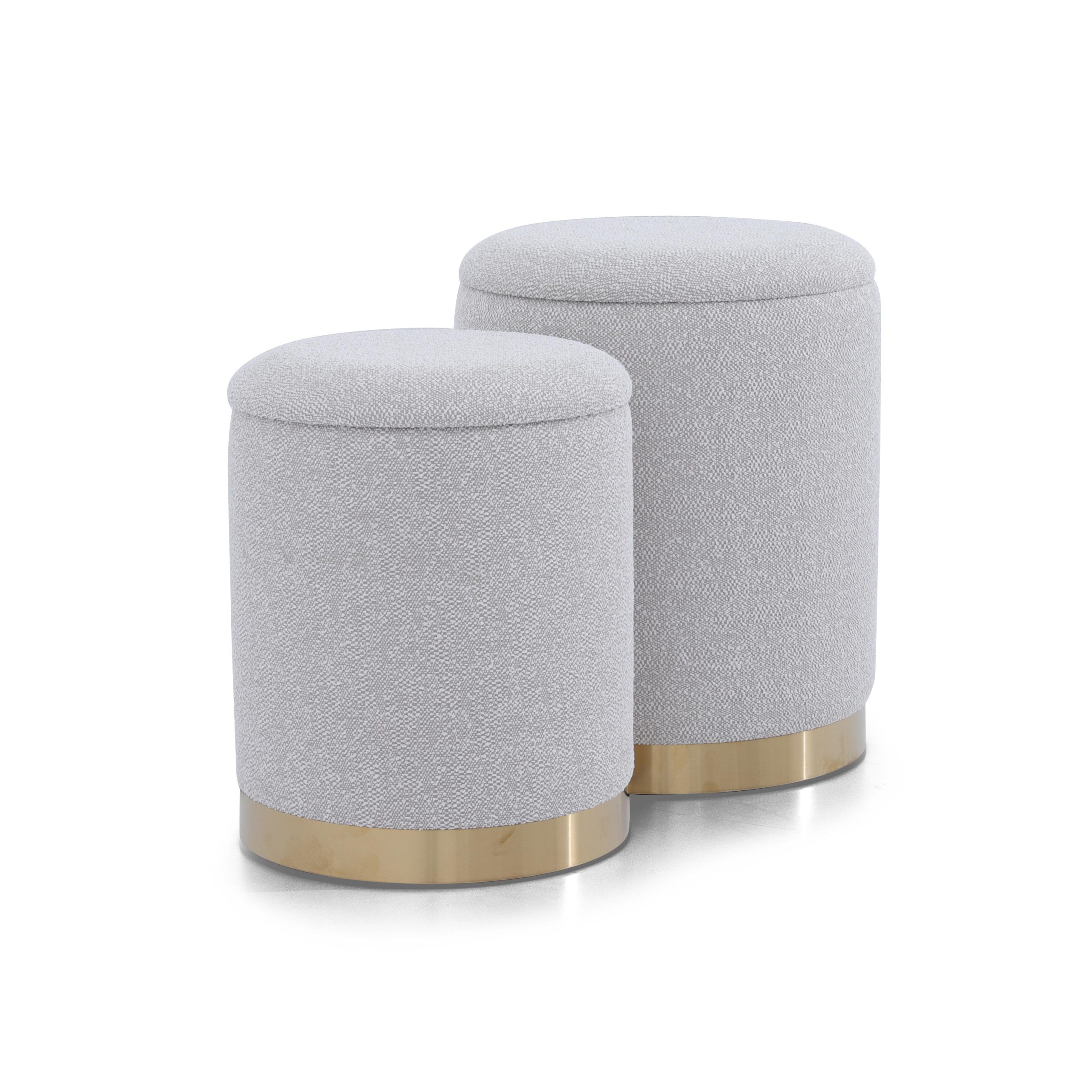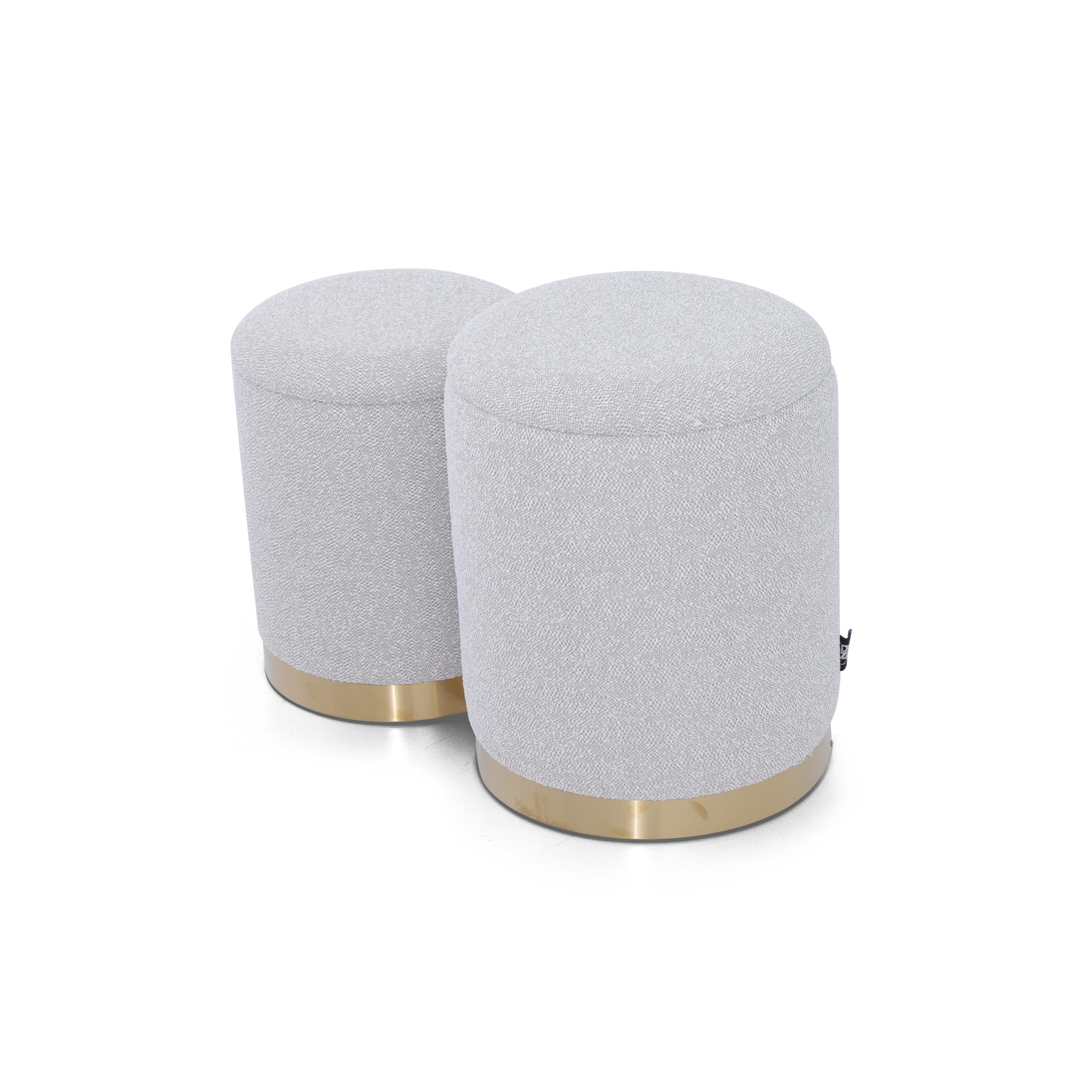 This pouf is supported by a sleek metal base, finished in a stunning brushed gold. This luxurious combination of greige fabric and gold accents makes the pouf a standout piece, perfect for adding a touch of refined style to your living room, bedroom, or office.