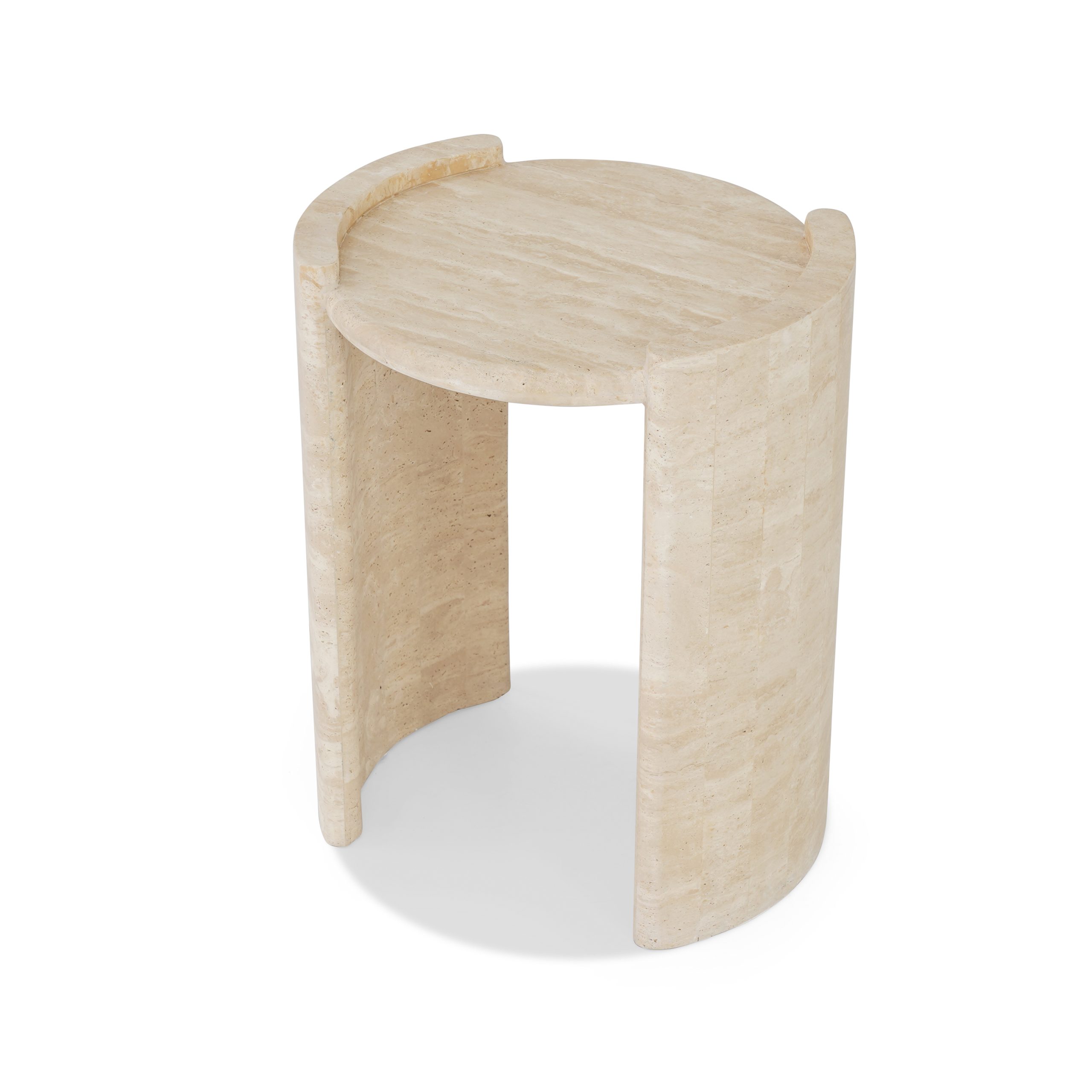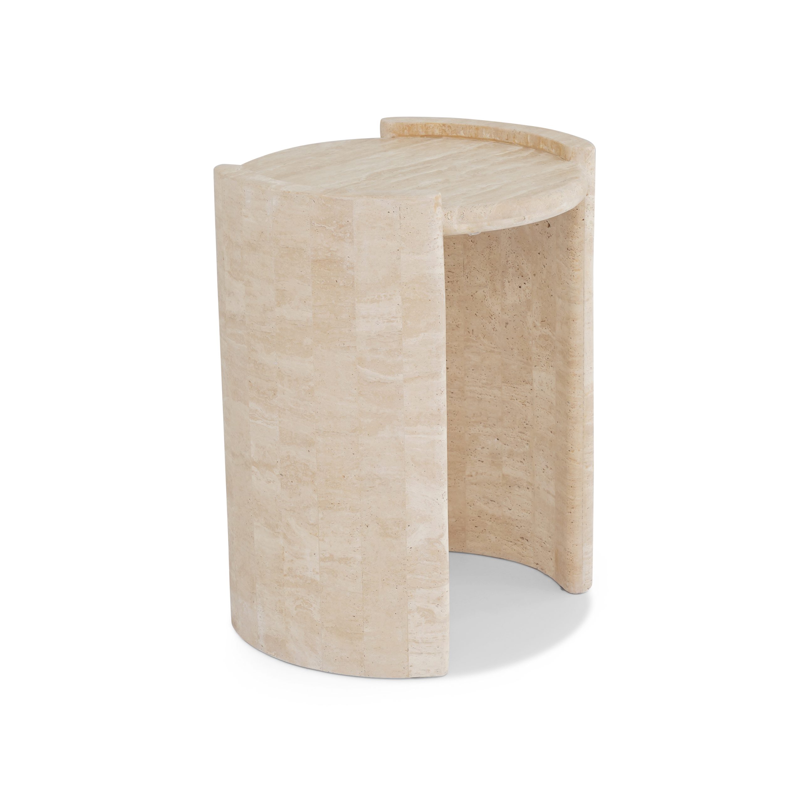 Featuring a seamless beige travertine top and base, this side table brings a soft, earthy vibe to your space.